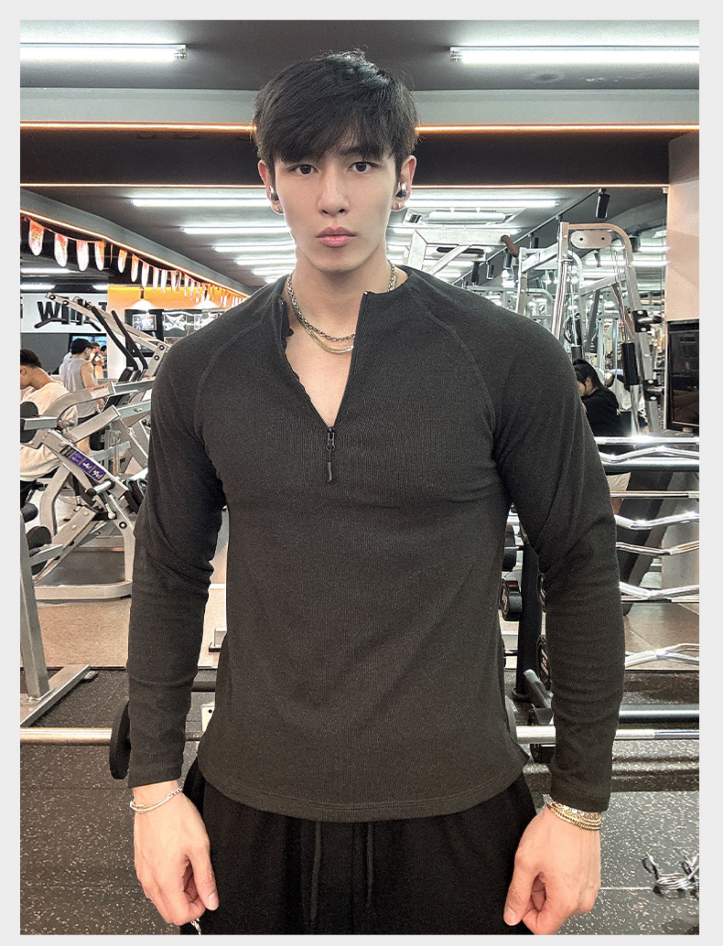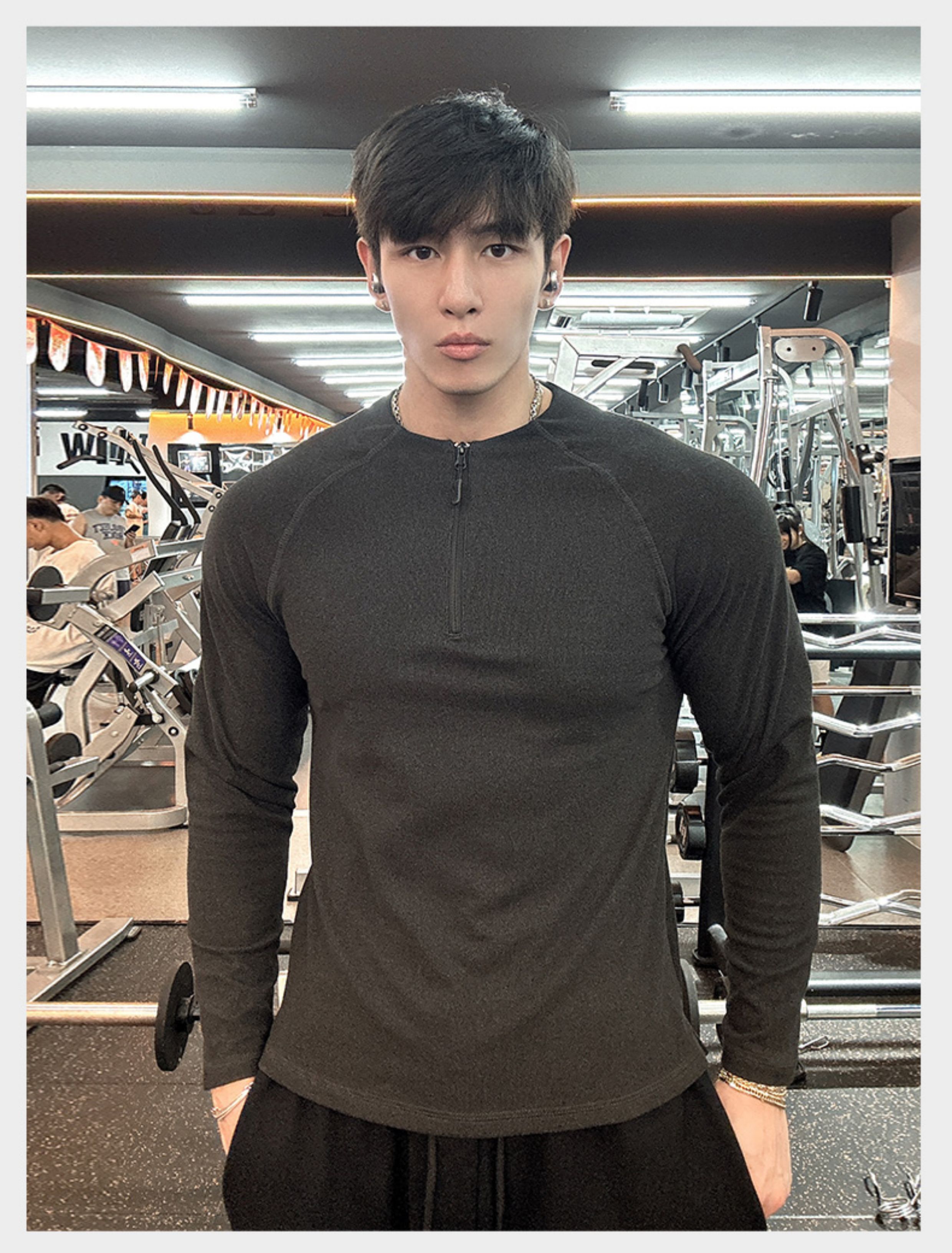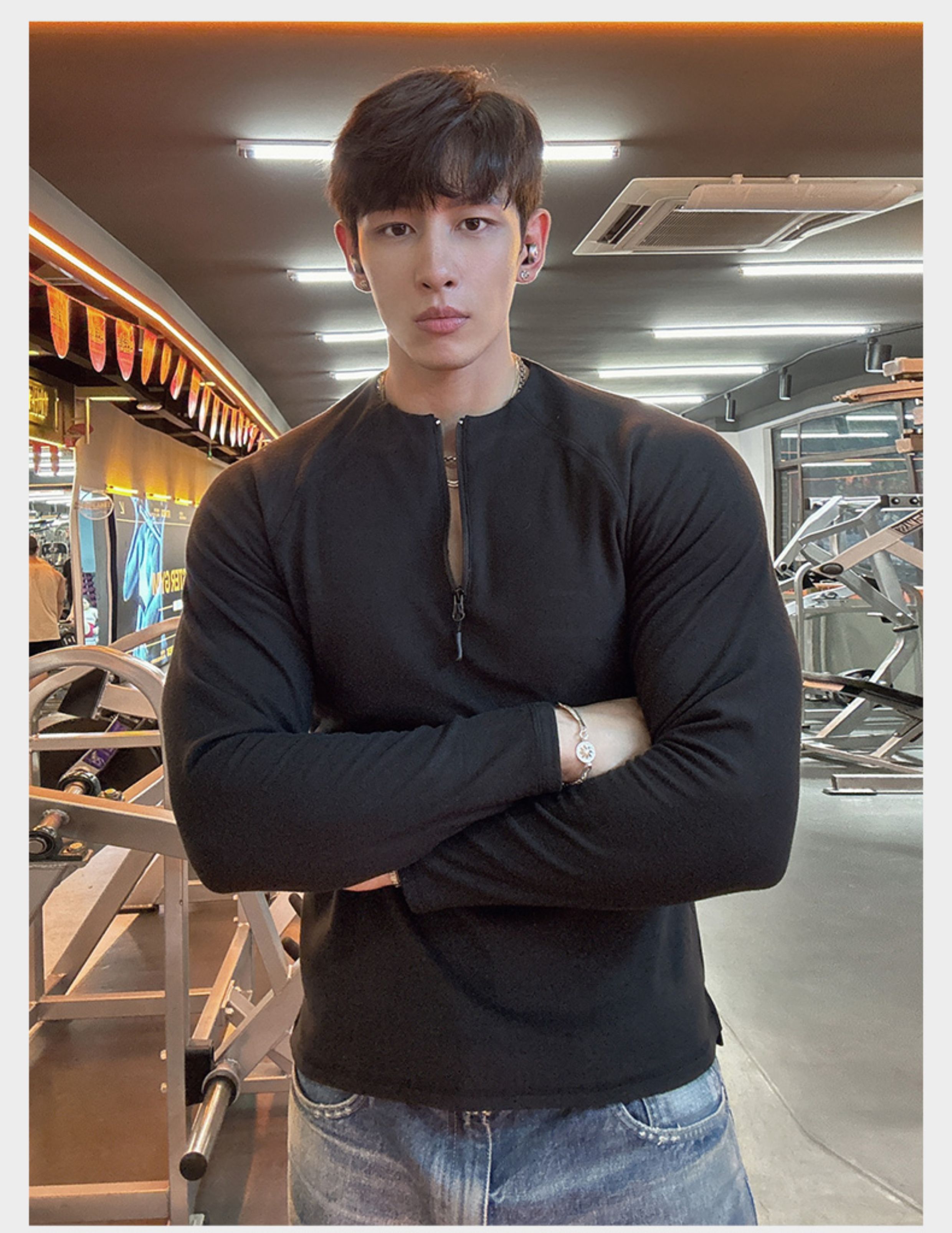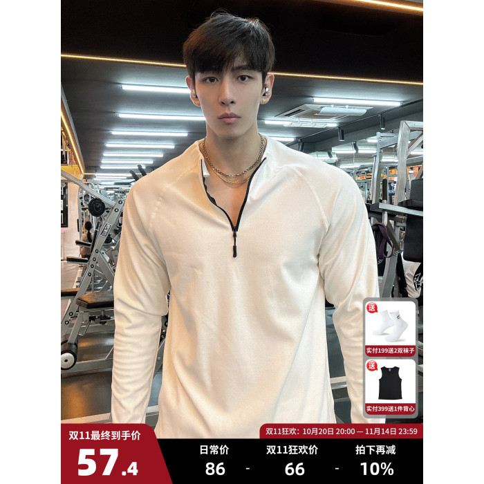 秋冬美式修身德絨打底T恤訓練服上衣健身運動男款半拉鍊圓領長袖