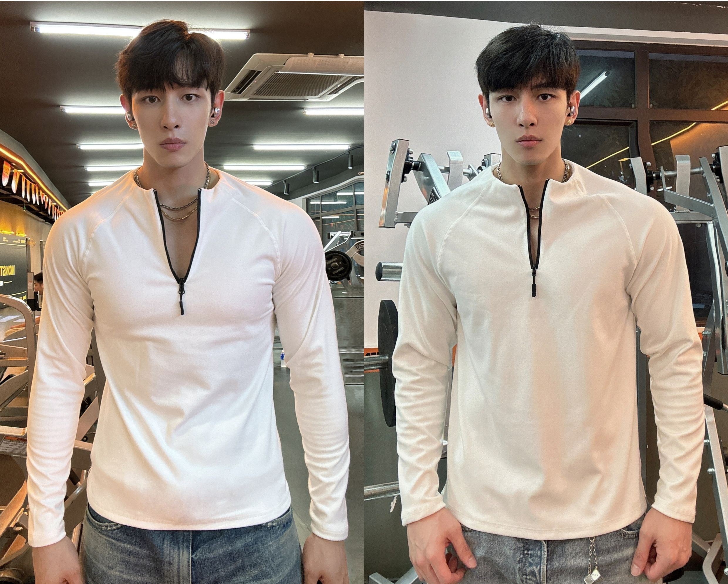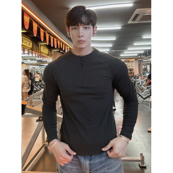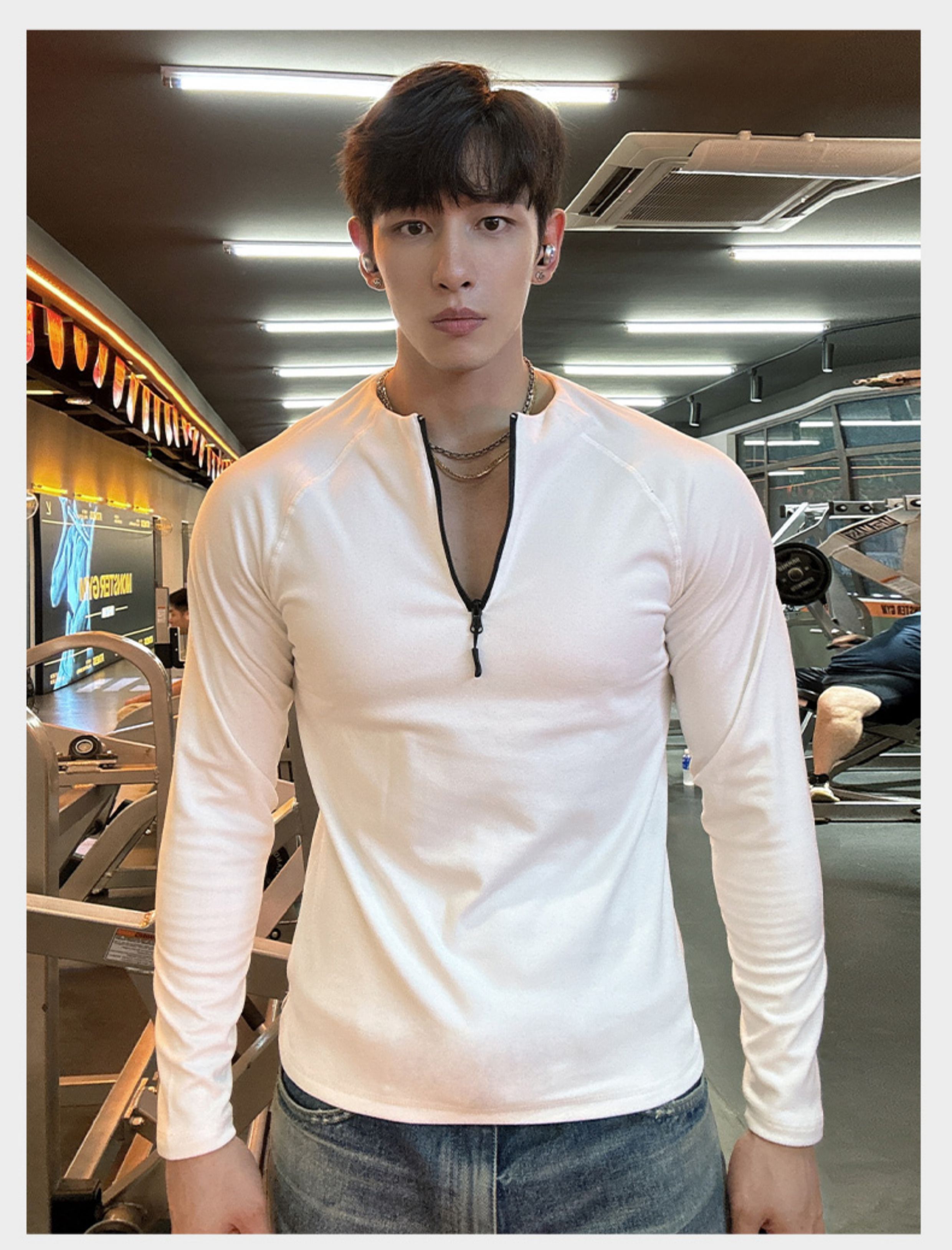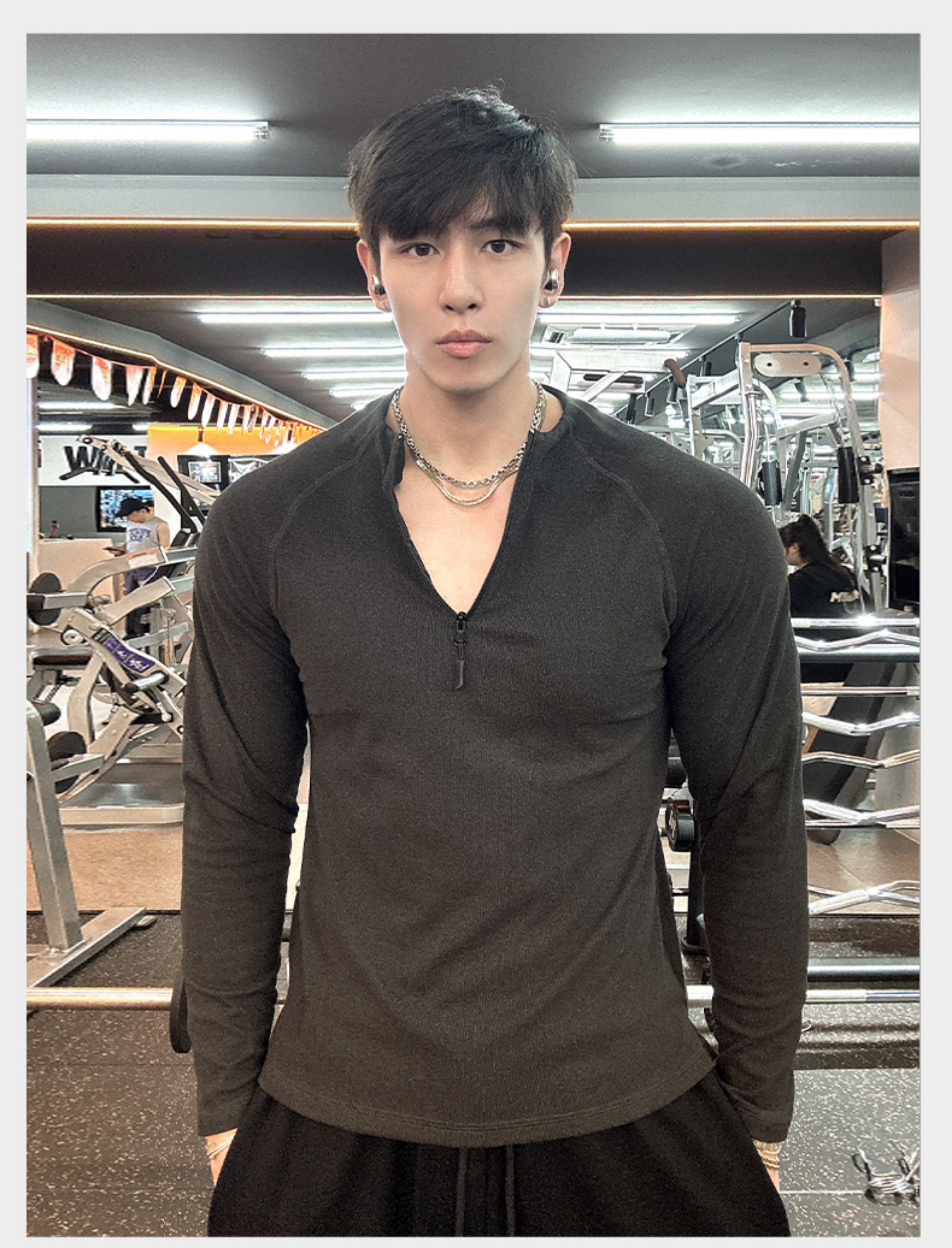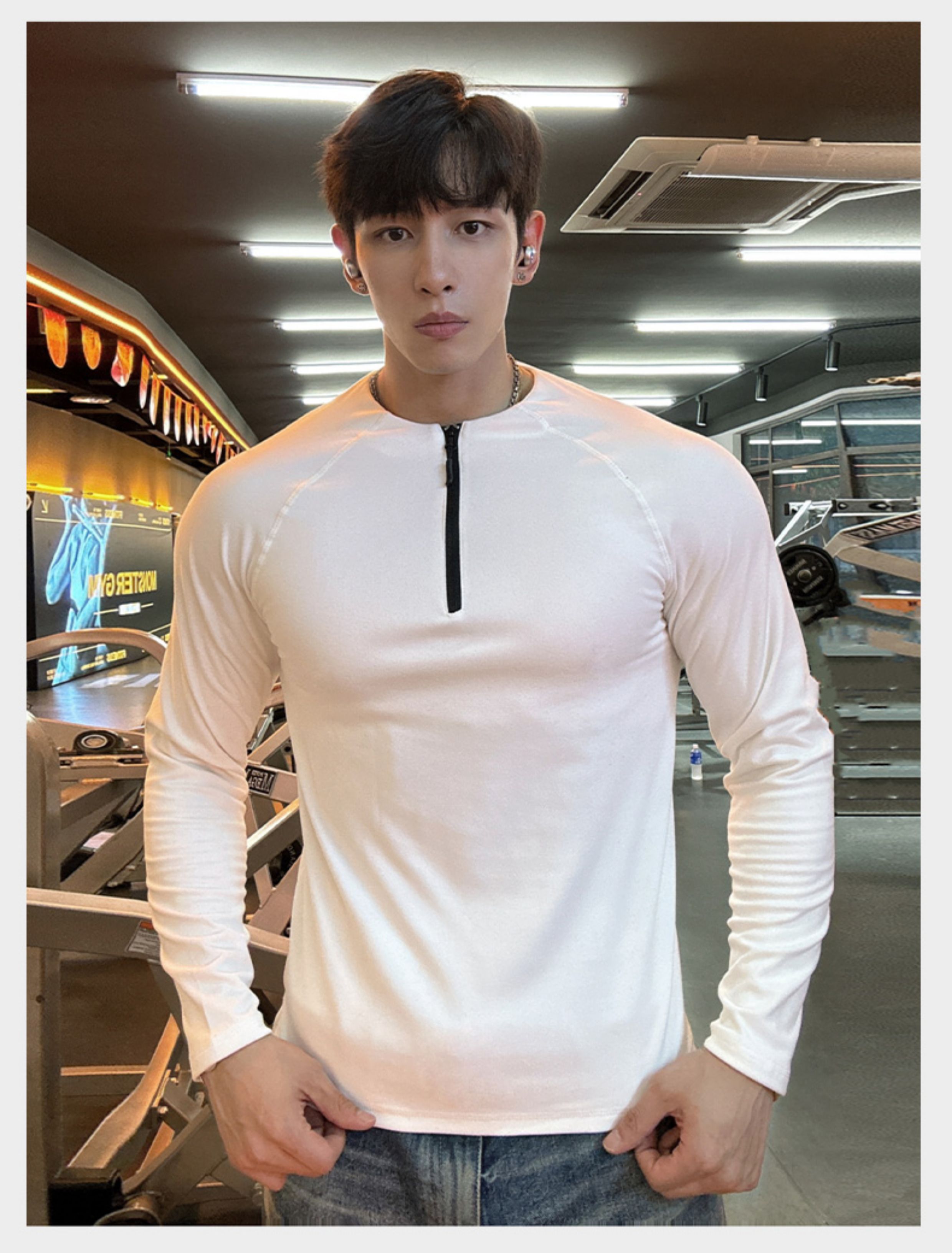 秋冬美式修身德絨打底T恤訓練服上衣健身運動男款半拉鍊圓領長袖