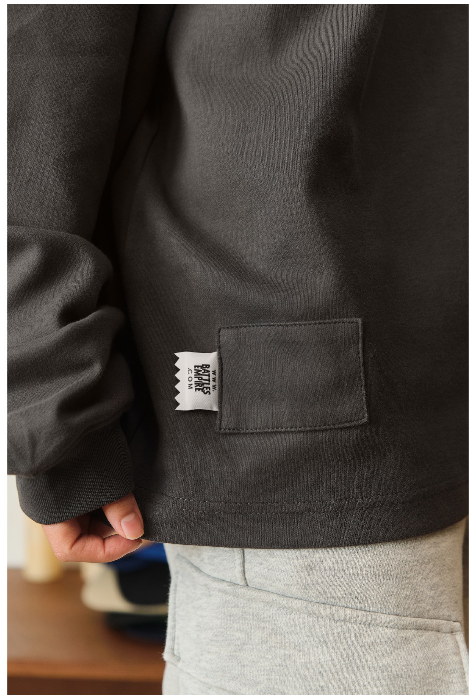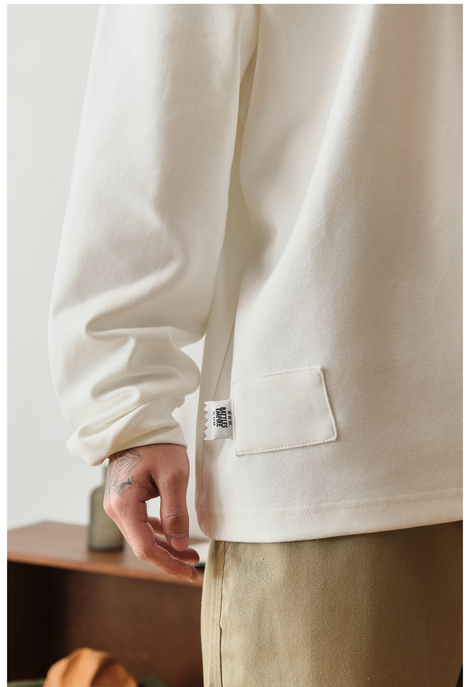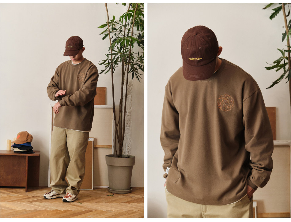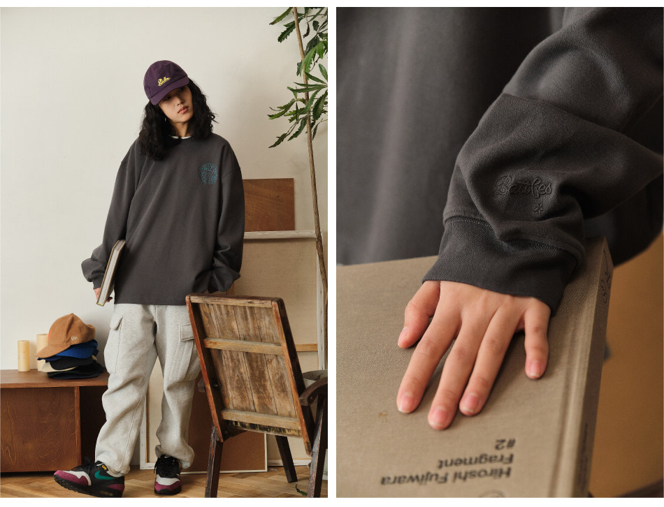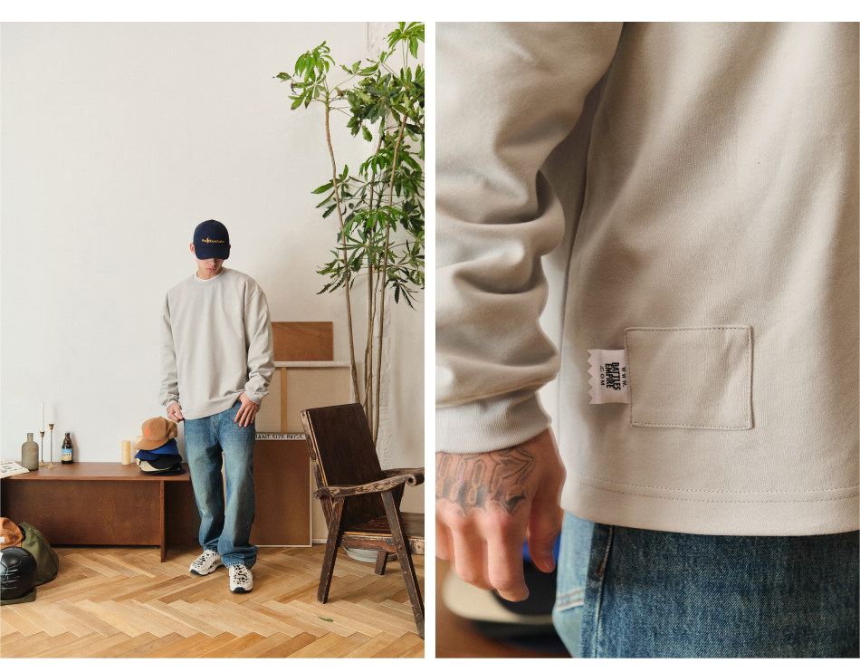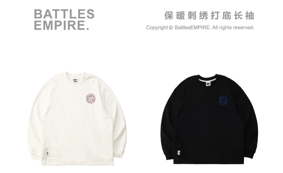 Battles 恒溫親膚保暖刺綉重磅315g美式長袖T恤多色基礎寬松