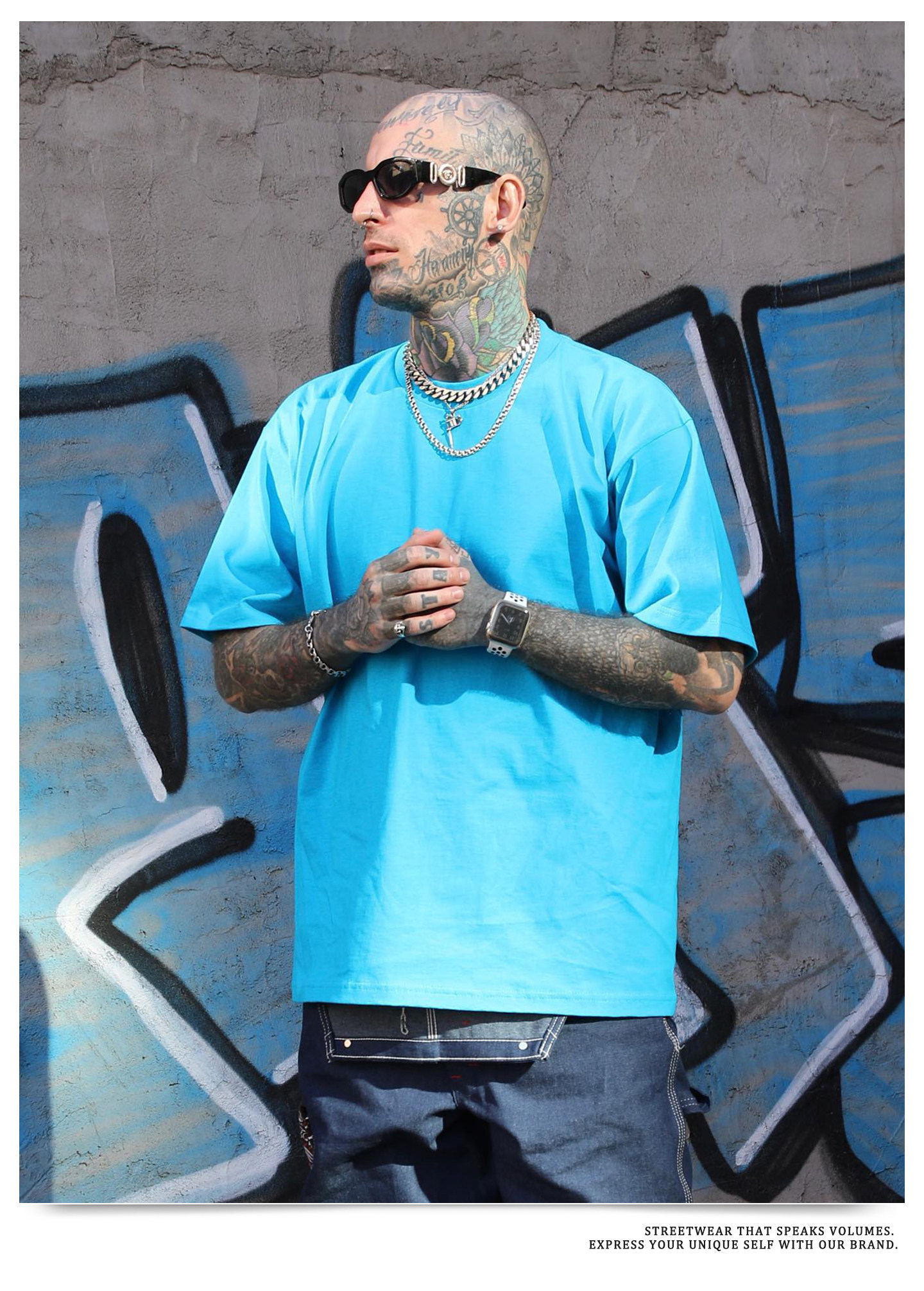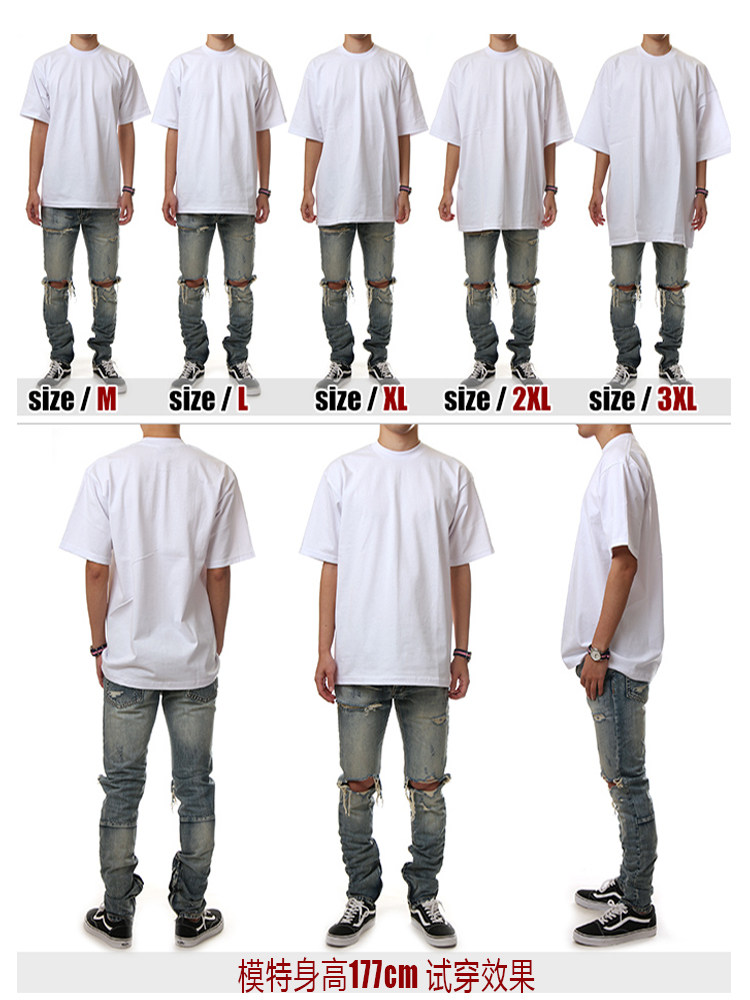 美國PROCLUB嘻哈大碼寬松街舞BBOY重磅圓領純色打底短袖男女T恤潮