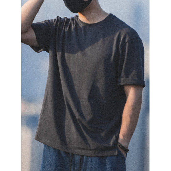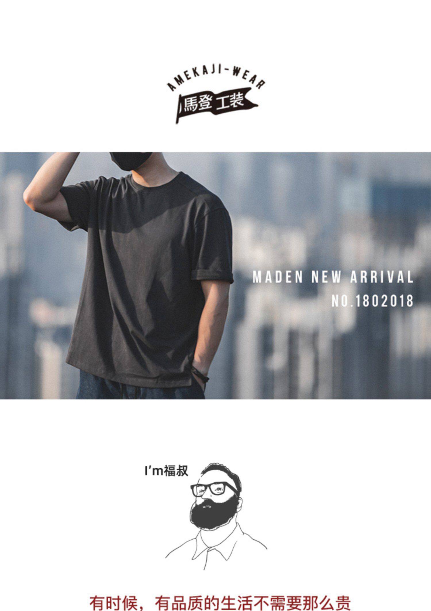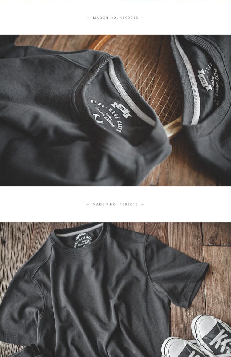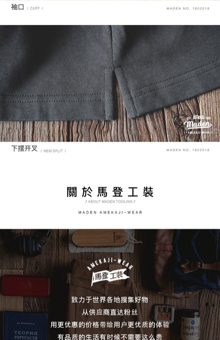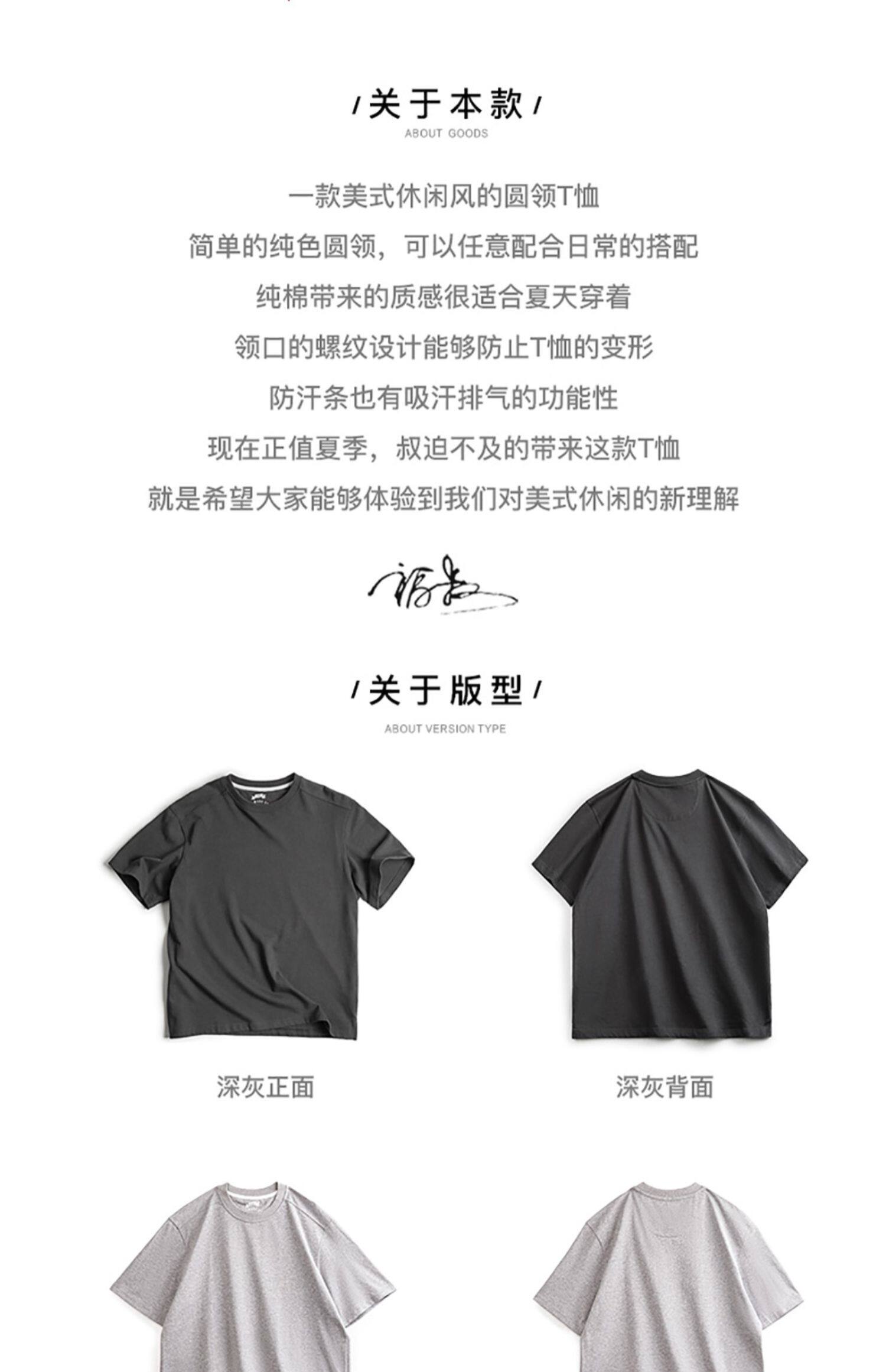 馬登工裝 美式復古重磅灰色短袖T恤圓領寬松純棉半袖打底衫男夏季