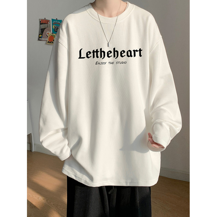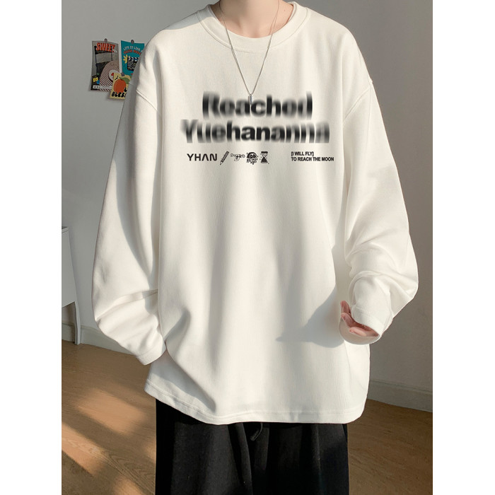 純棉打底衫男生長袖t恤春秋重磅衛衣2025新款白色青少年寬松內搭