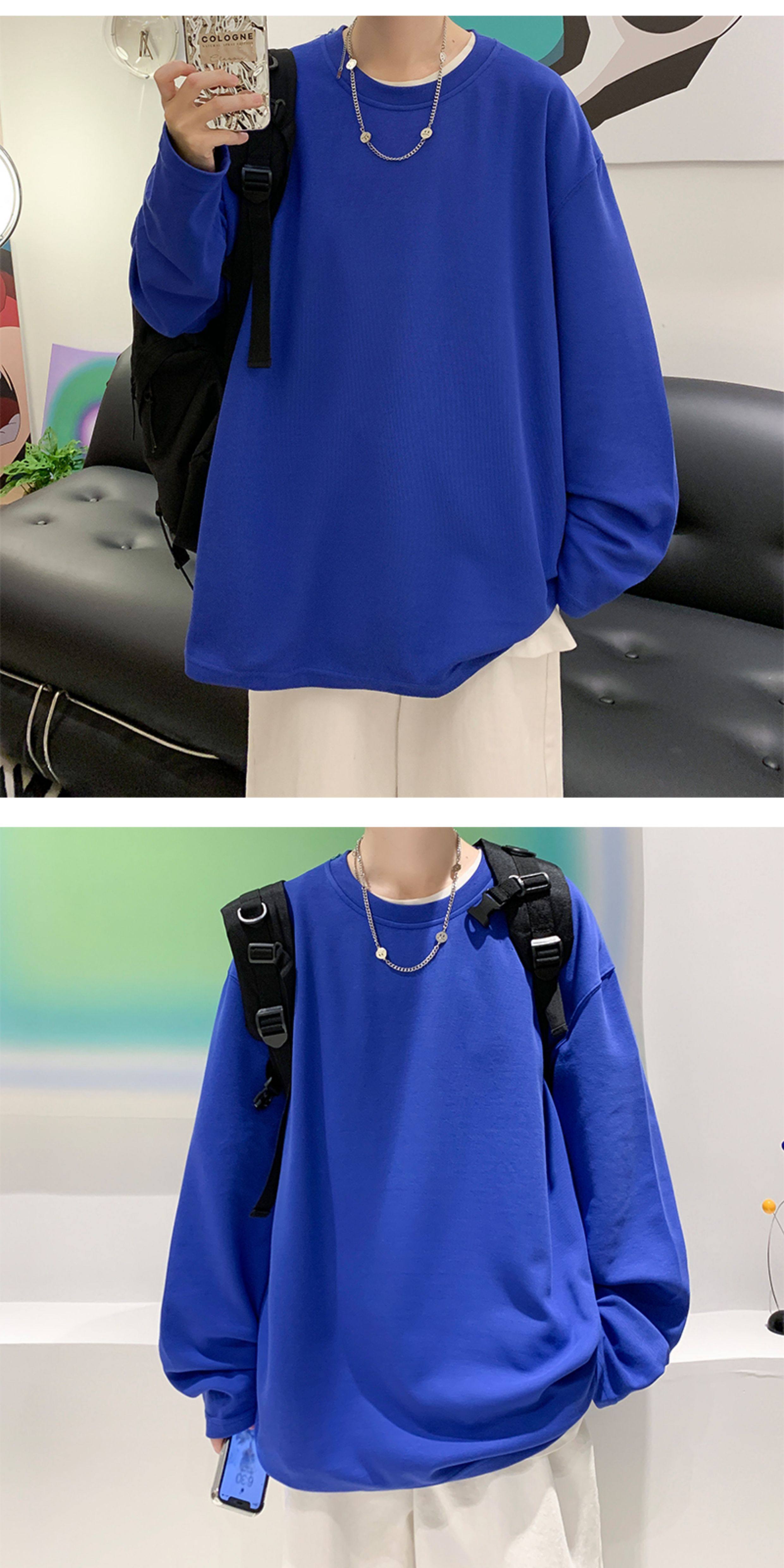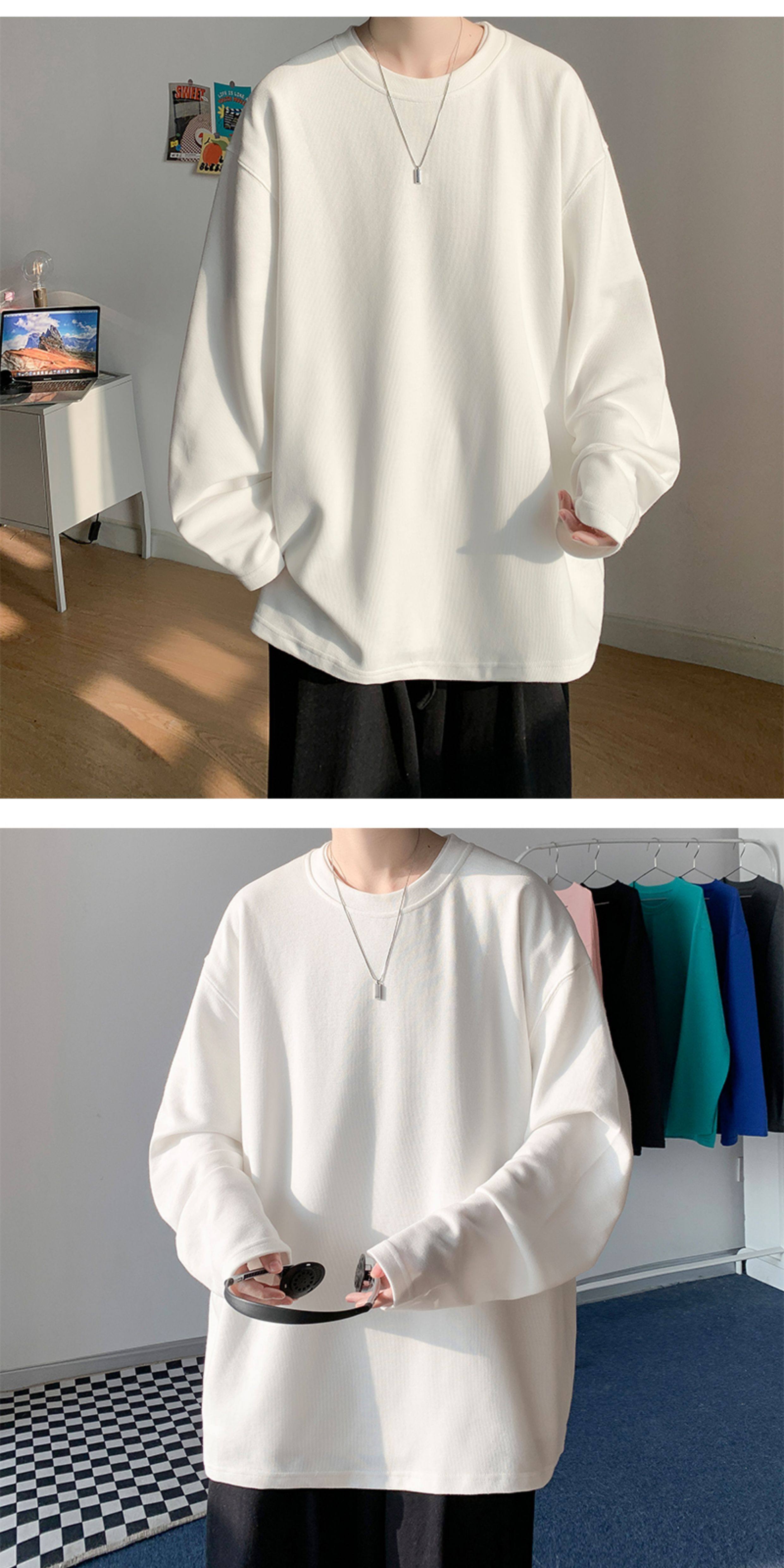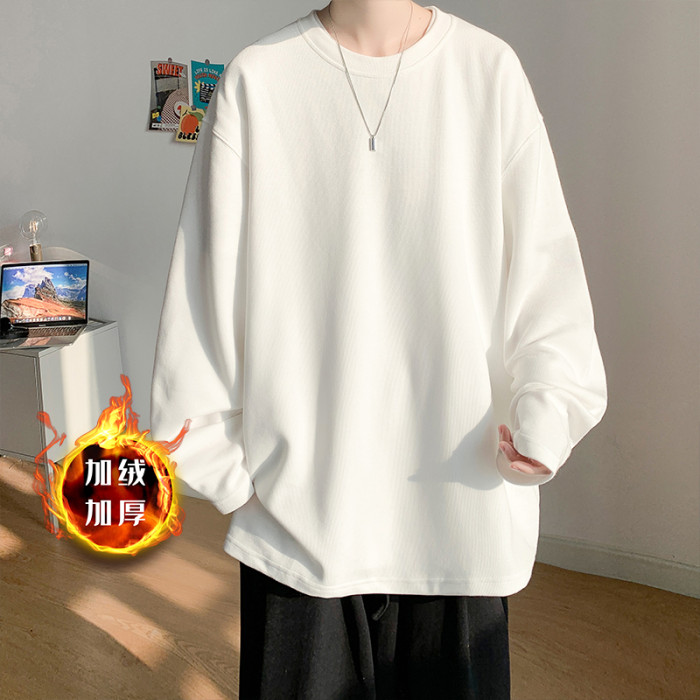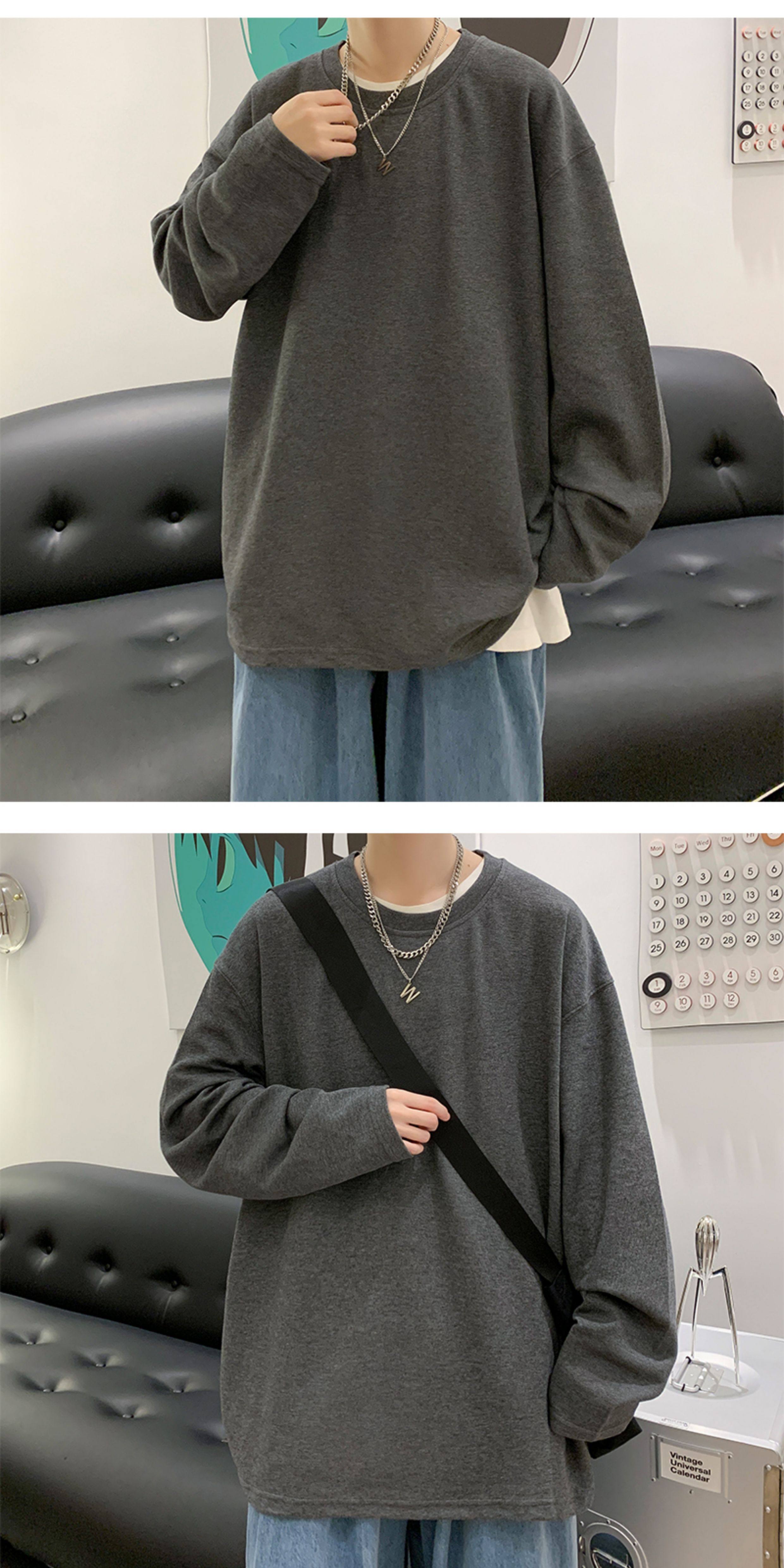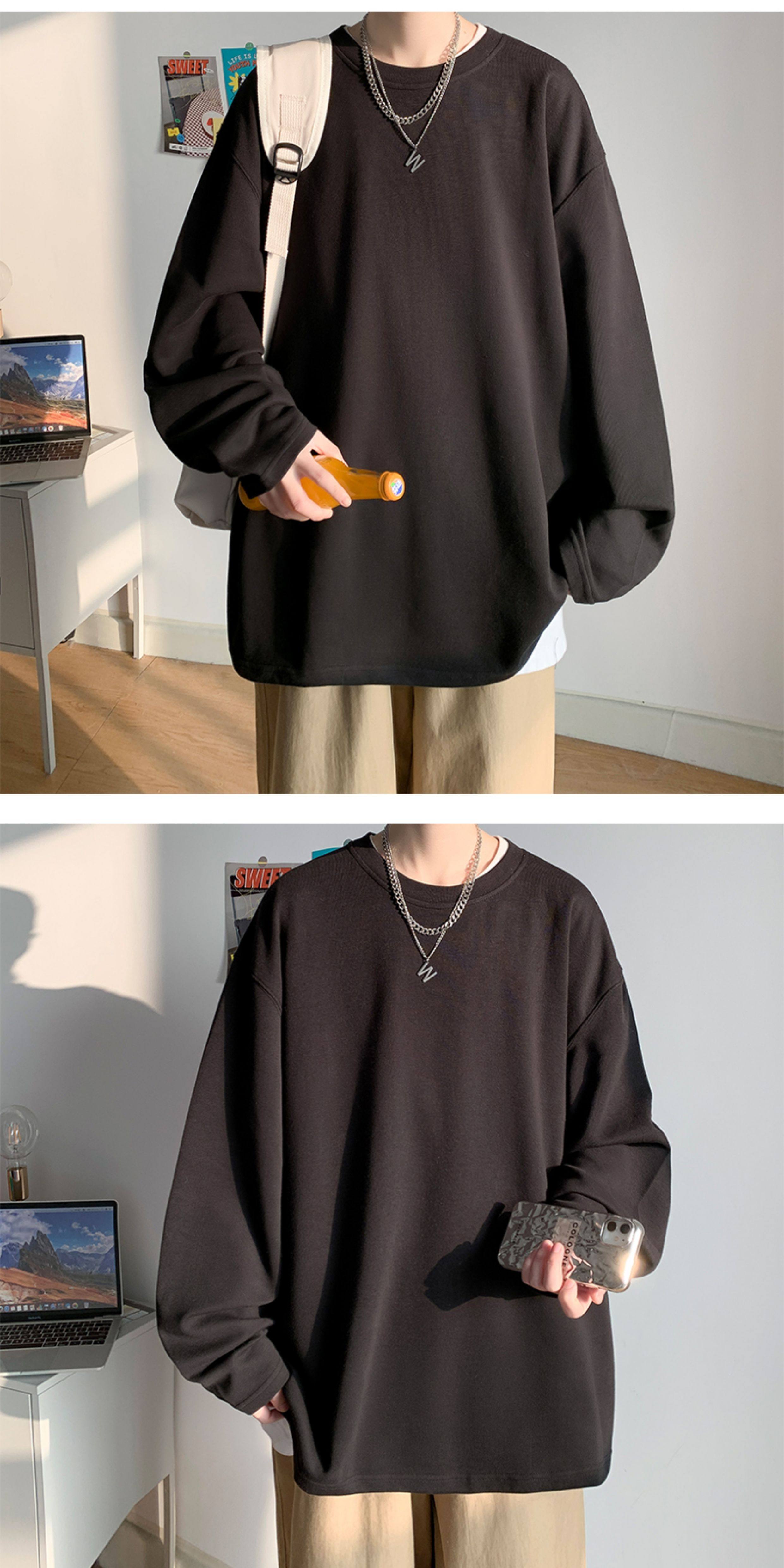 純棉長袖t恤男春秋冬季新款潮牌寬松百搭純色內搭打底衫上衣體恤