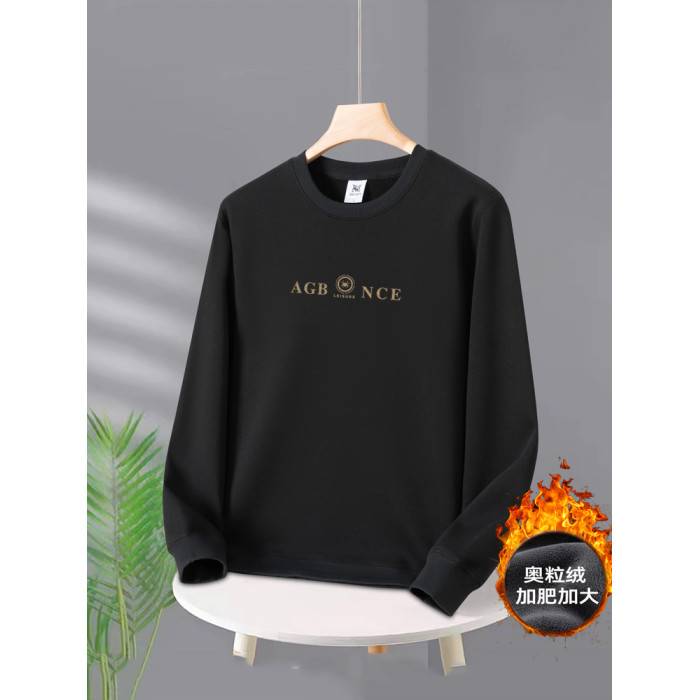 新款衛衣男保暖加厚打底衫圓領大號絨衣冬季加大上衣胖子大碼衣服