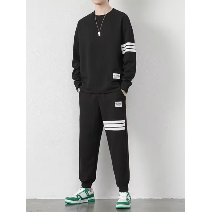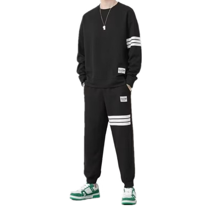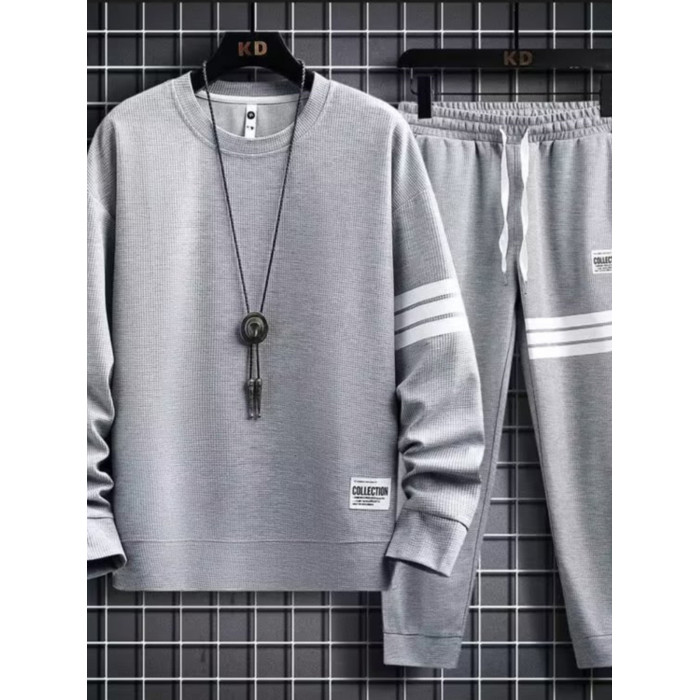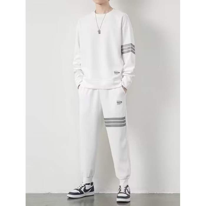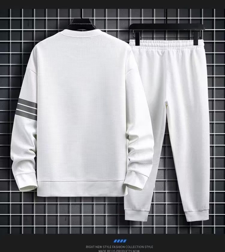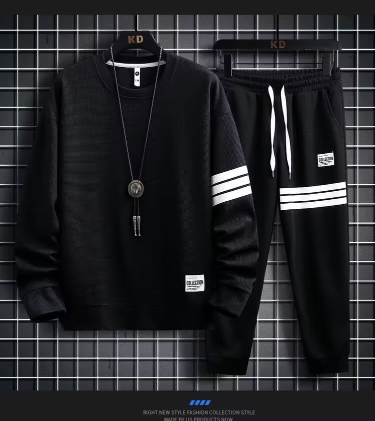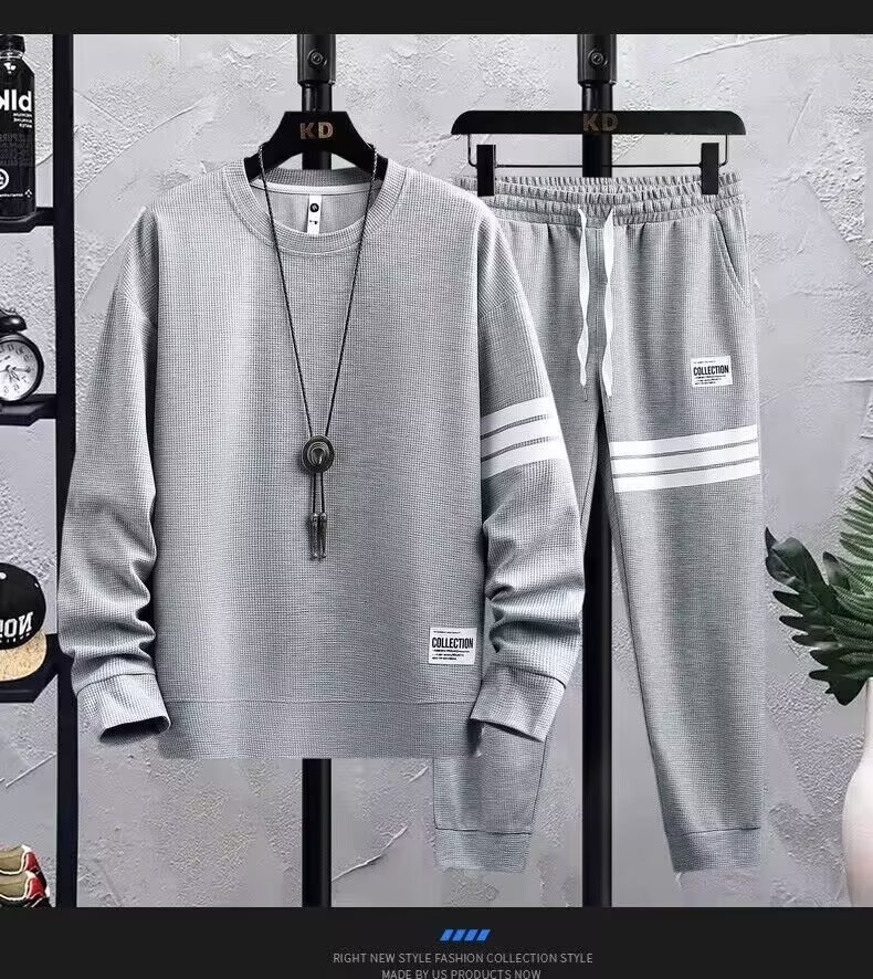 華夫格休閒運動衛衣套裝男士寬松潮牌ins一套搭配九分褲二件裝潮
