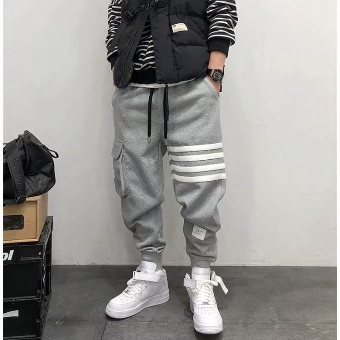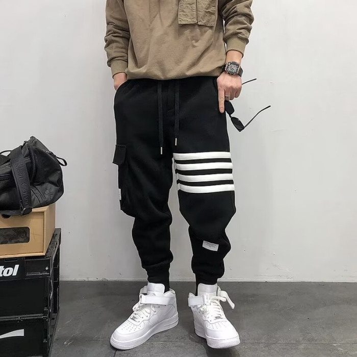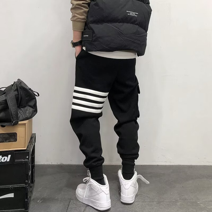 秋季新款潮流休閒四杠衛褲男潮牌寬松立體口袋束腳小腳運動哈倫褲