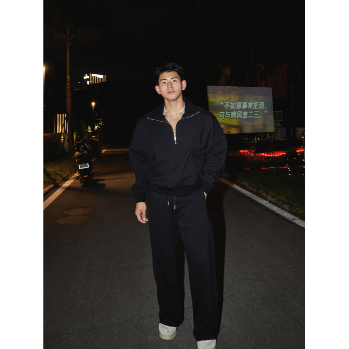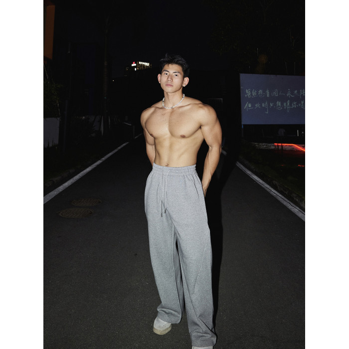 PAPASLILMONSTER美式街頭Cleanfit 設計感長褲簡約百搭運動衛褲男