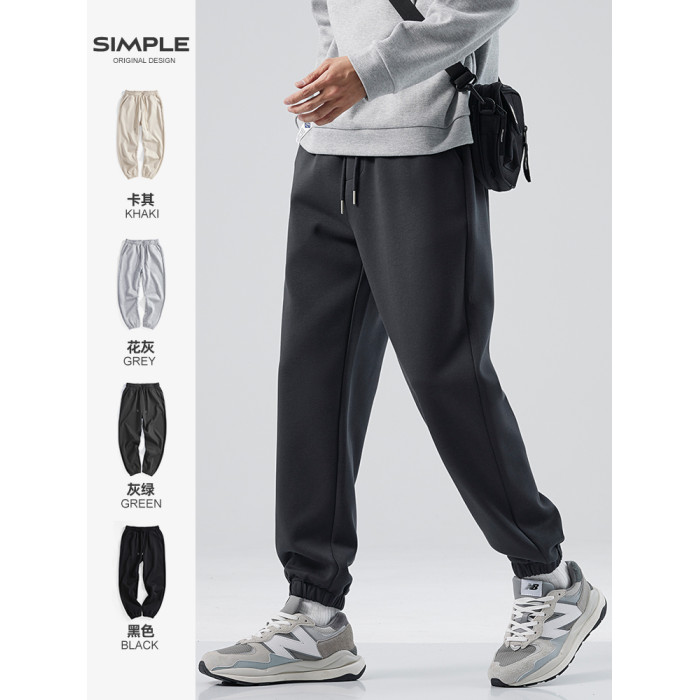 hansca2025秋冬季寬松束腳衛褲男針織休閒褲加絨加厚大碼運動褲子