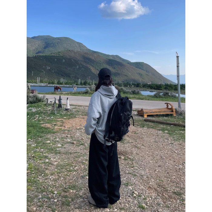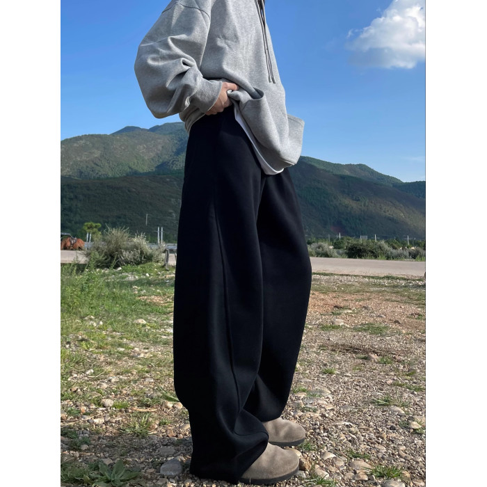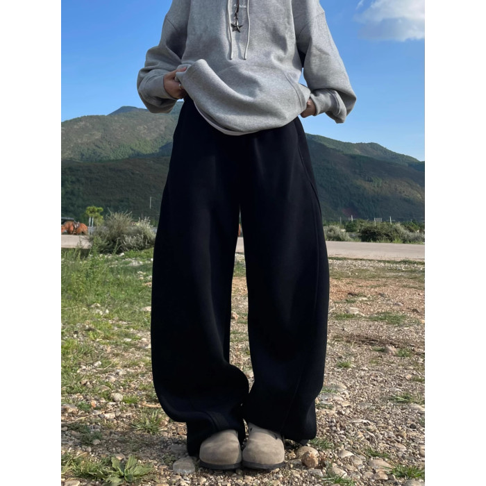 一衹小楊24aw日系純色400g重磅加厚彎刀褲男女寬松秋冬抽繩休閒褲