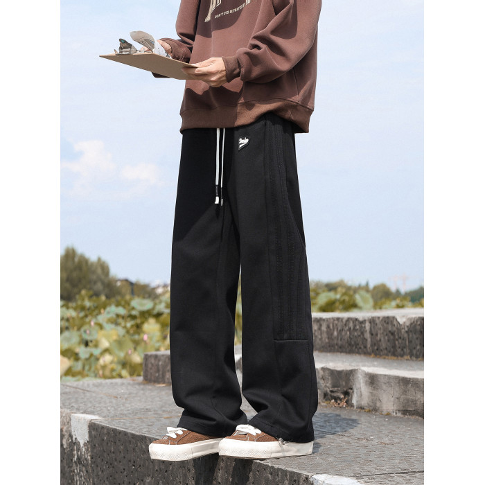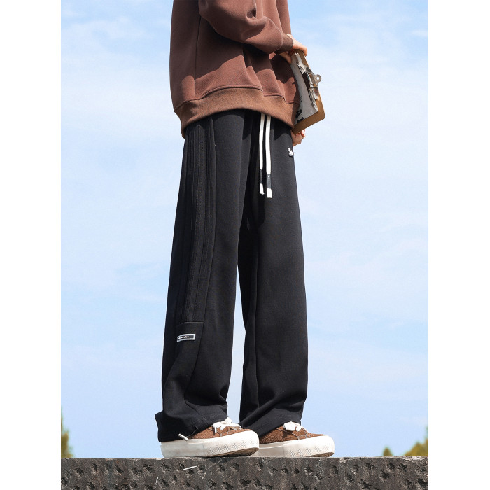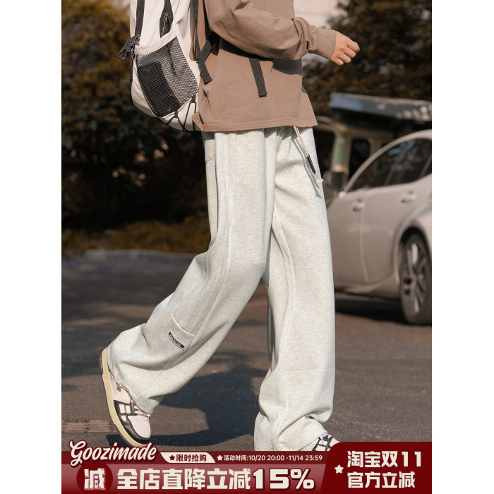 港仔文藝男灰色衛褲男秋冬加絨直筒男士休閒褲子男生運動長褲男款
