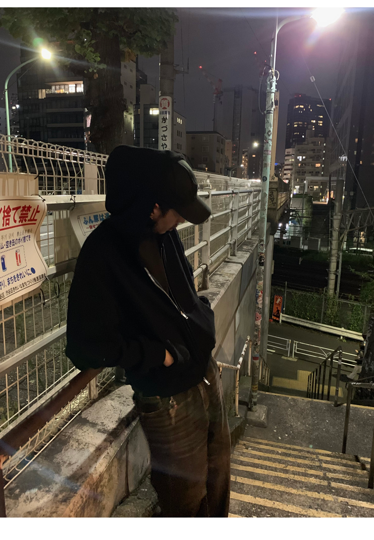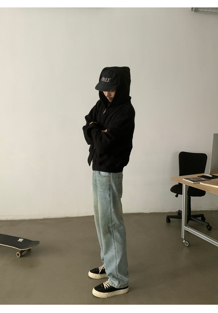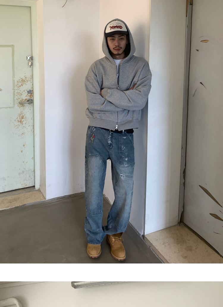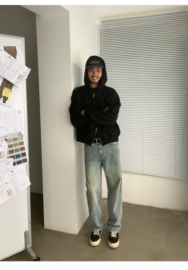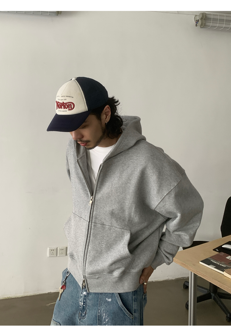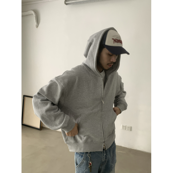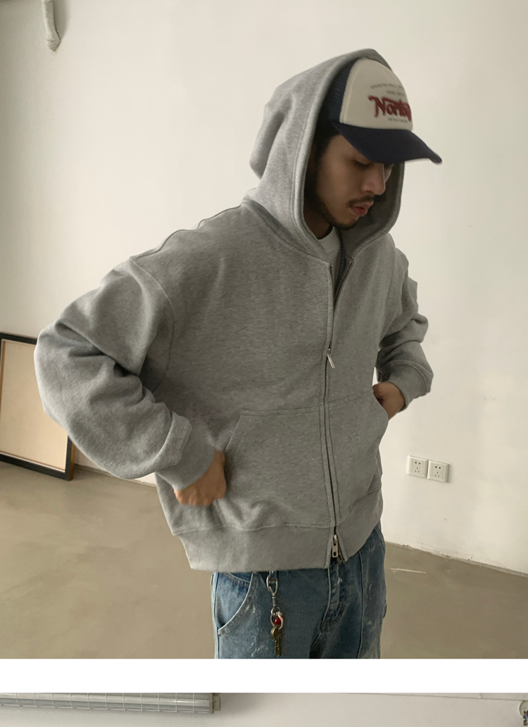 INKNOTS美式復古寬松clean fit重磅短寬拉鍊連帽衛衣男女潮牌外套
