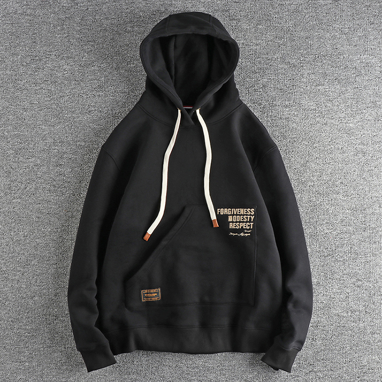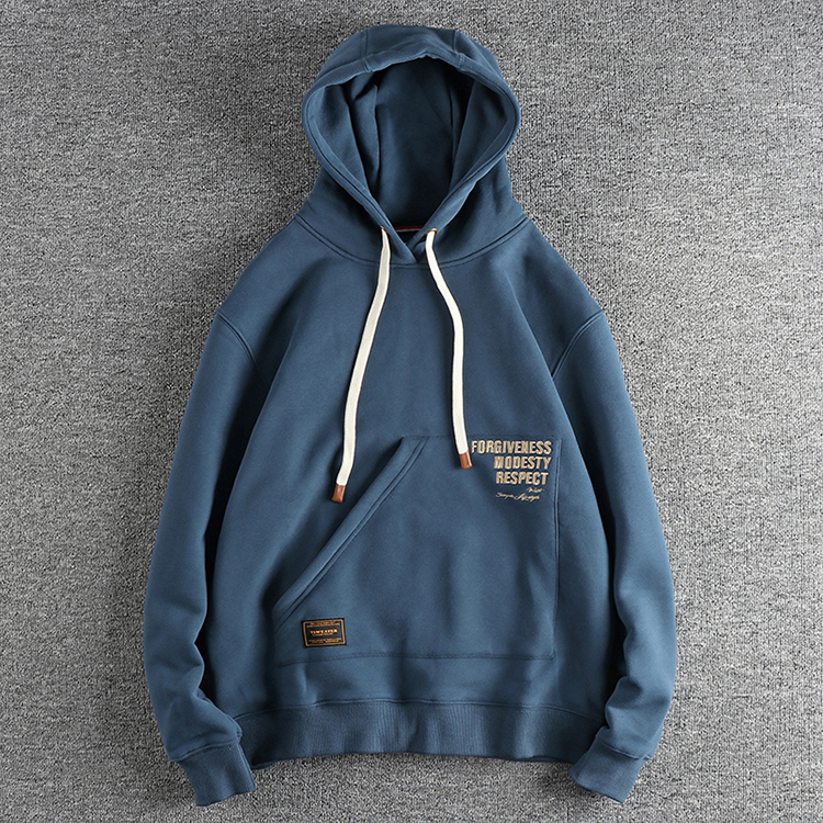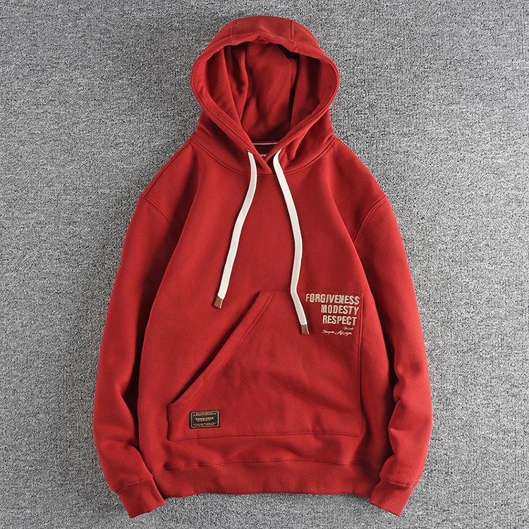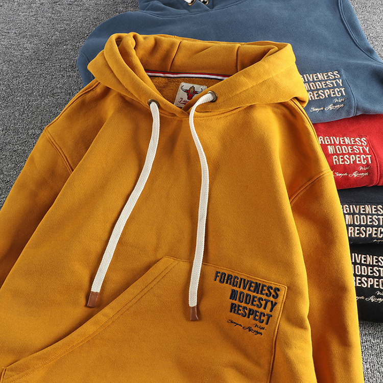 港單潮流刺綉字母連帽套頭衛衣男 重磅加絨加厚秋冬休閒上衣外套