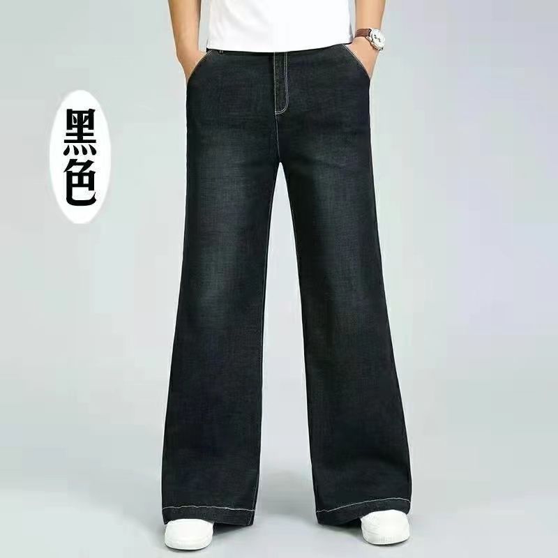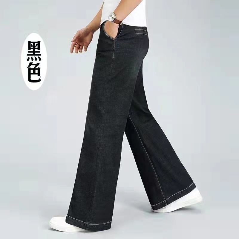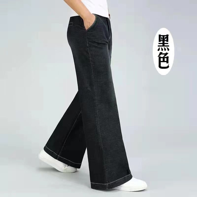 春秋男裝中腰牛仔褲男寬松牛仔直筒大腳長褲濶腿褲大直筒休閒品質