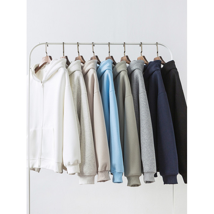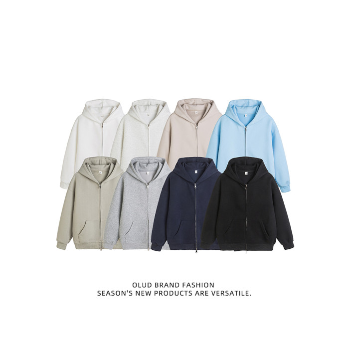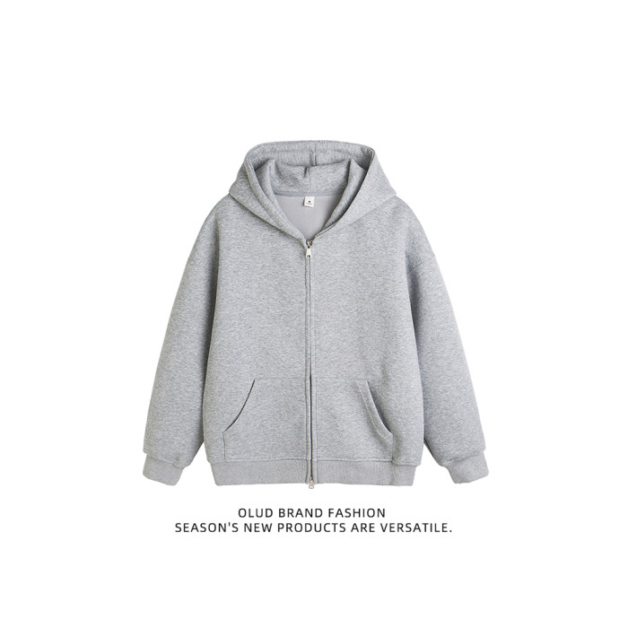 美式雙拉鍊開衫灰色衛衣男潮牌重磅寬松百搭休閒運動情侶連帽外套