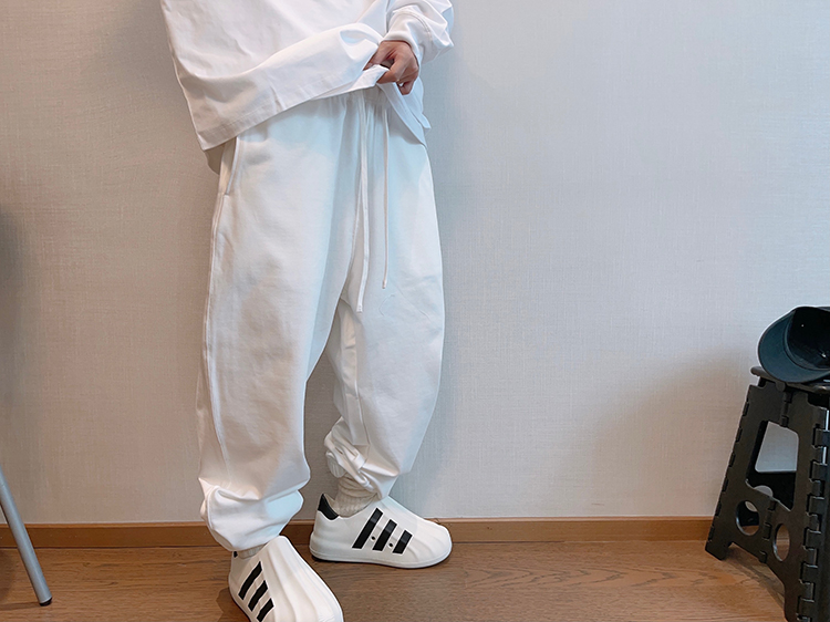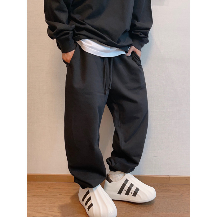 dannyandzee秋季潮牌百搭330g毛圈棉純色束腳褲衛褲男長褲運動褲