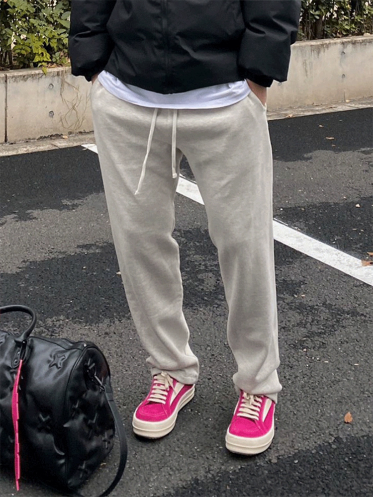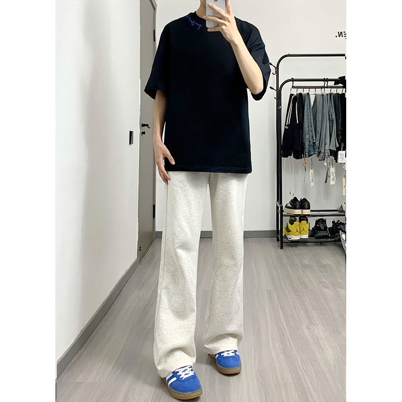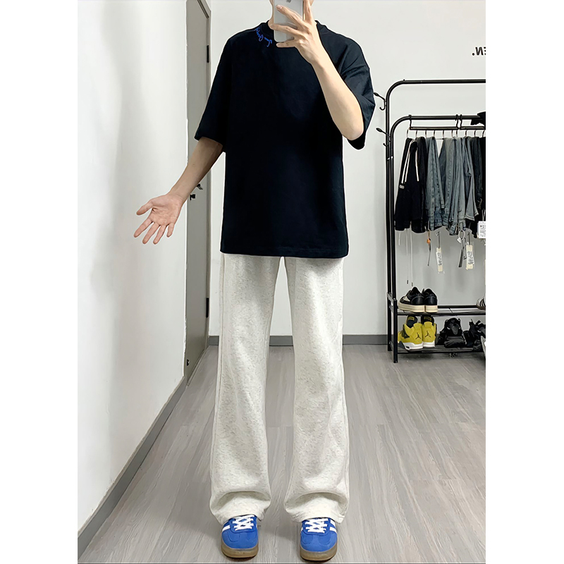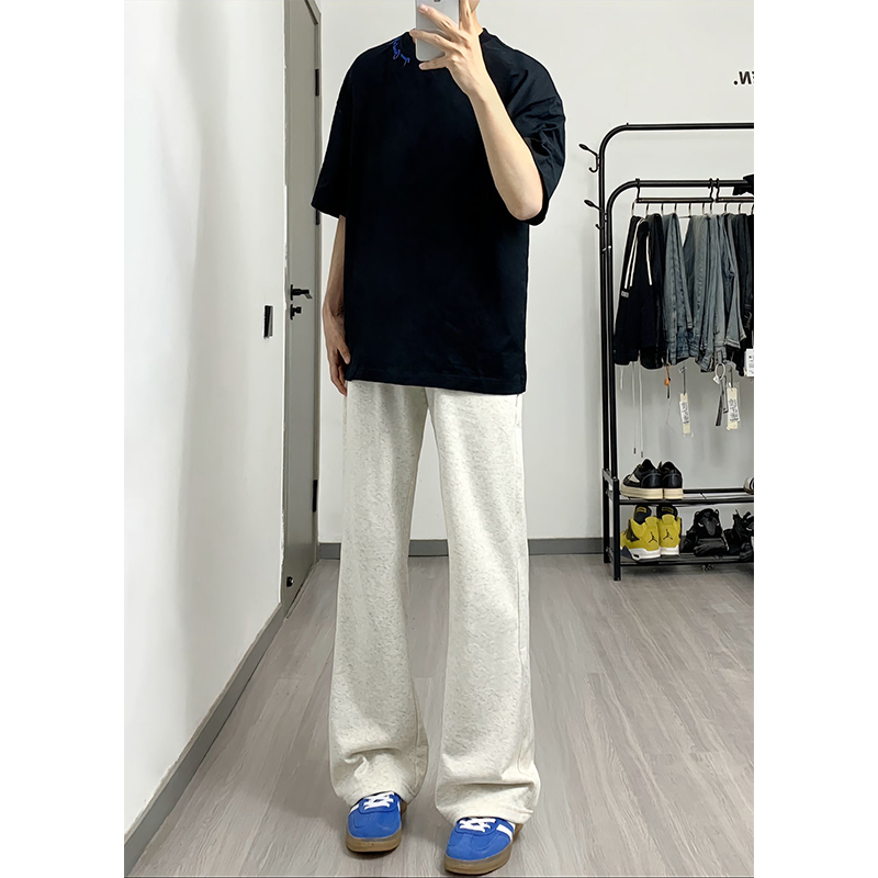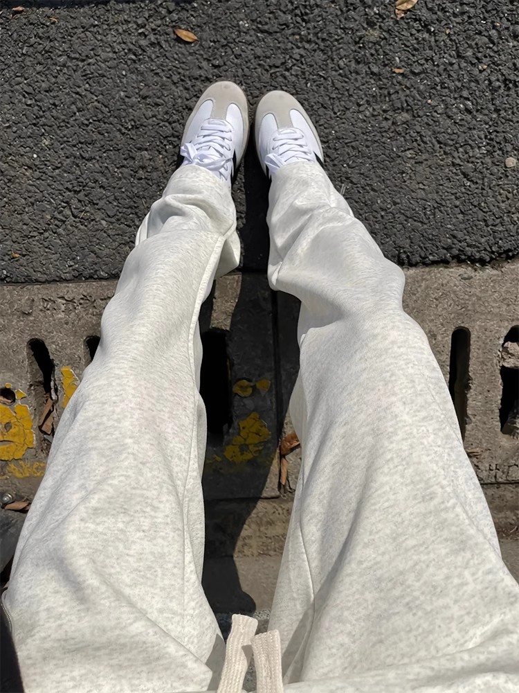 白灰色重磅彎刀衛褲男春秋款美式高街香蕉鐮刀褲子直筒運動休閒褲