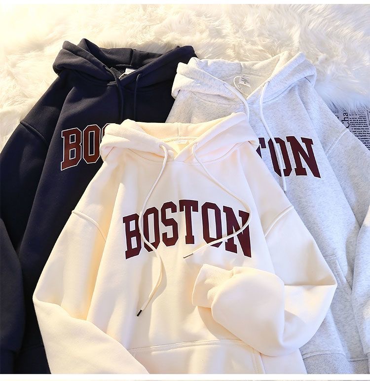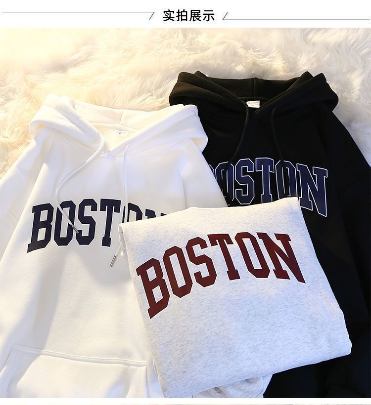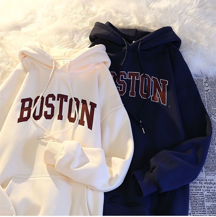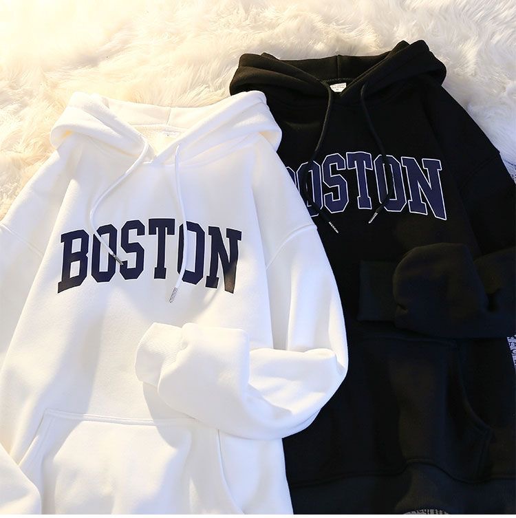 秋冬季加絨連帽衛衣男百搭潮流ins青少年寬松港風潮牌情侶B衛衣男
