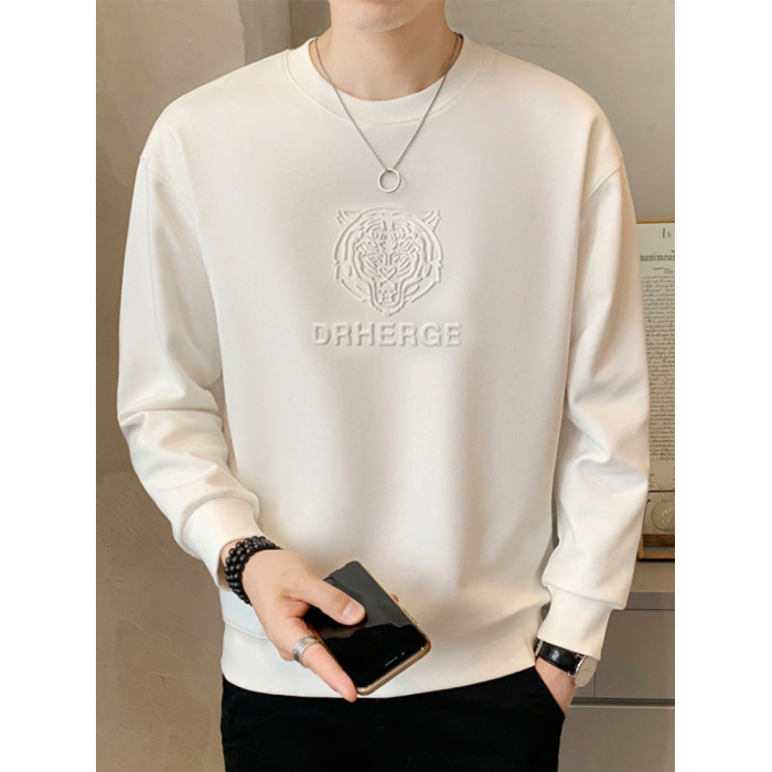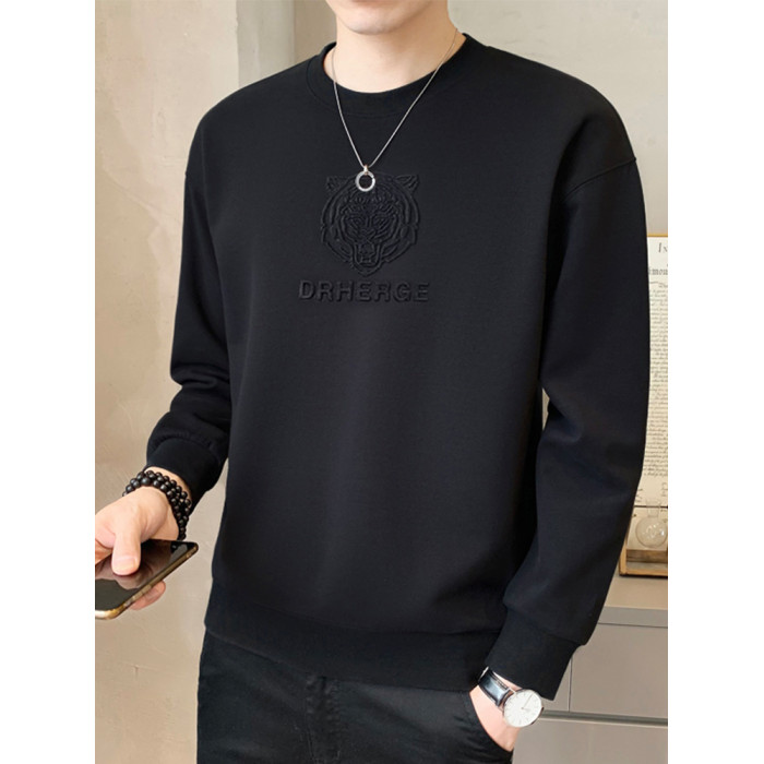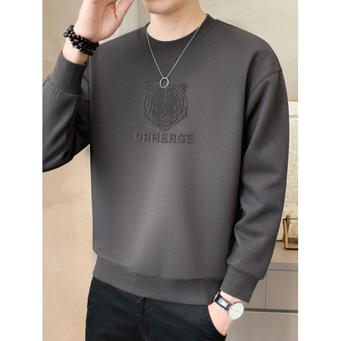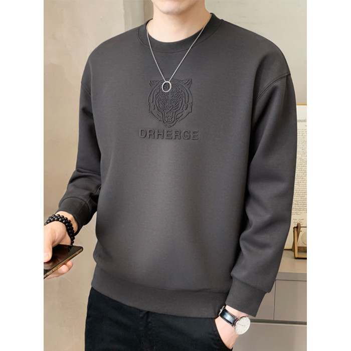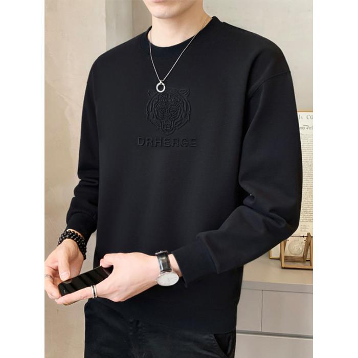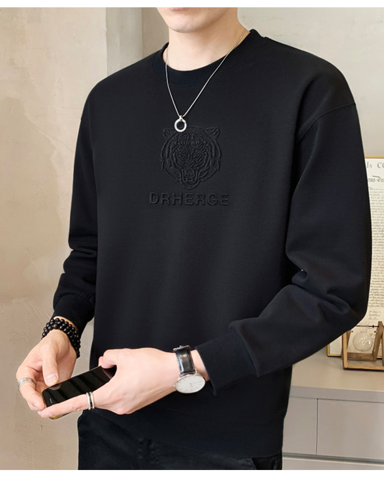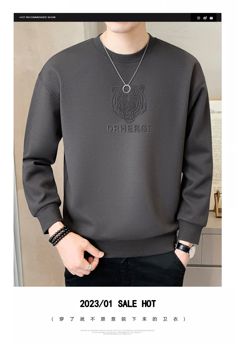 純色鋼印男士衛衣春秋季2025新款潮流寬松加絨厚打底衫男冬裝上衣