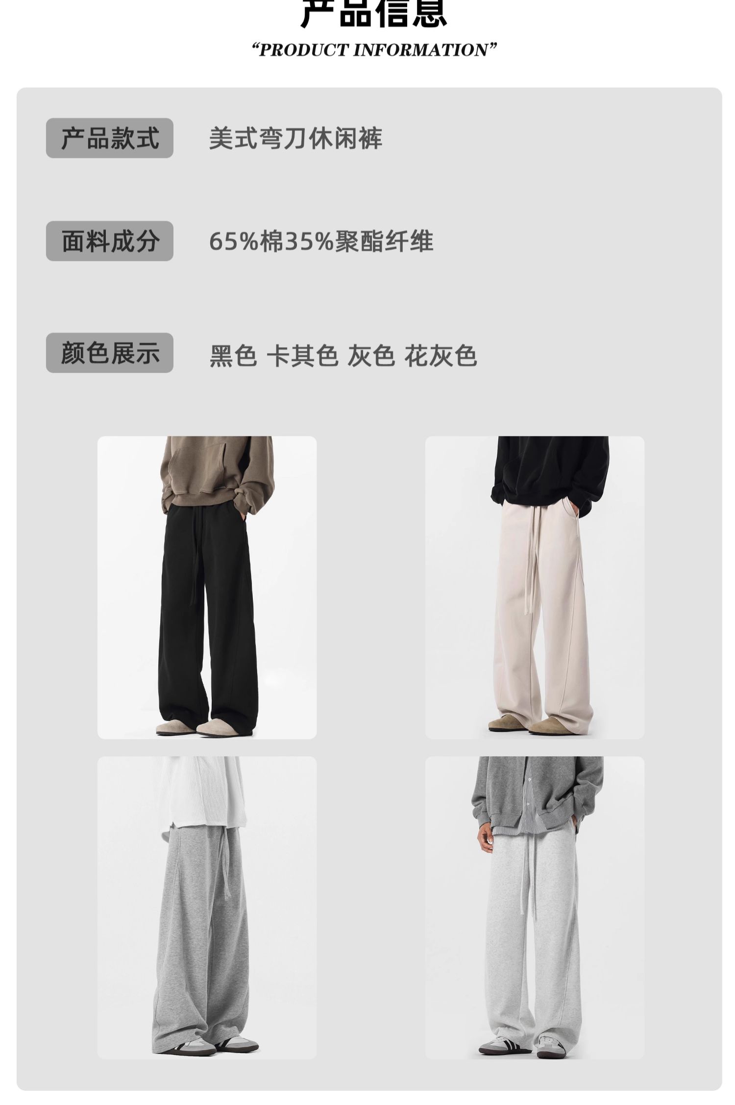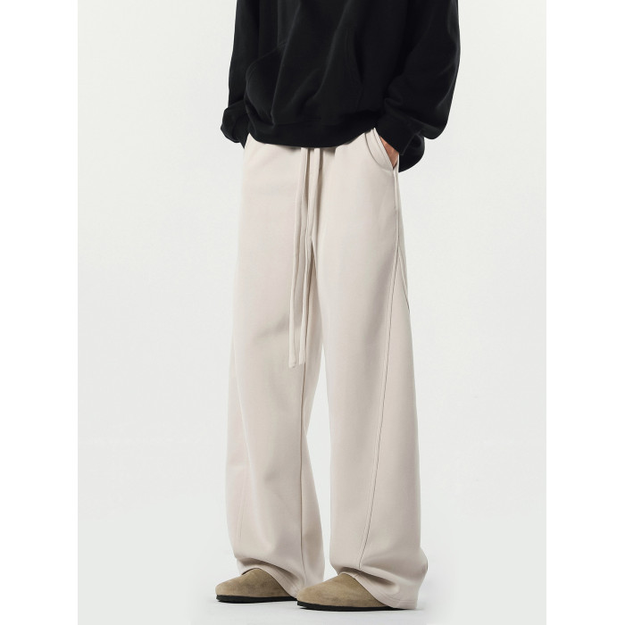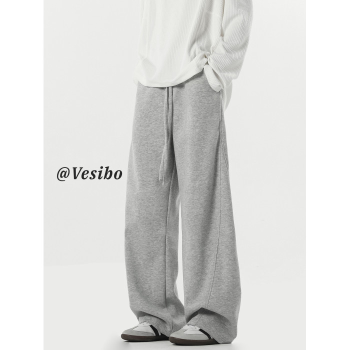 美式高街彎刀褲子男秋季潮牌濶腿灰色運動衛褲復古寬松直筒休閒褲