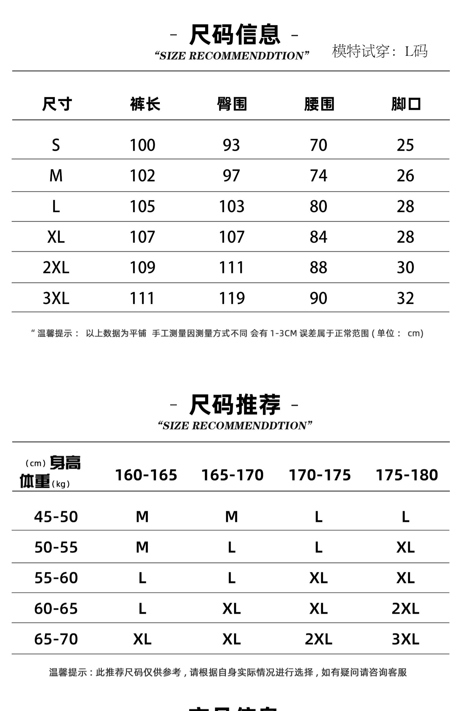 | 褲長 | 長褲 |