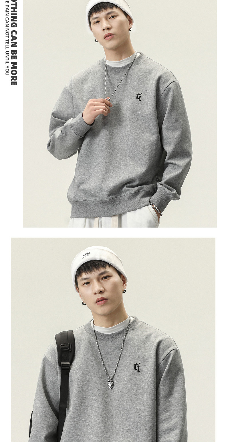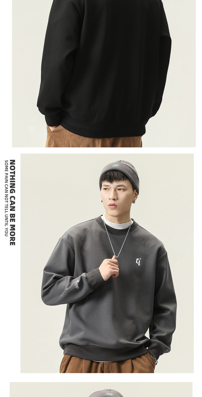 男士美式重磅加絨衛衣男款冬季衣服圓領長袖上衣潮牌新款加厚男裝