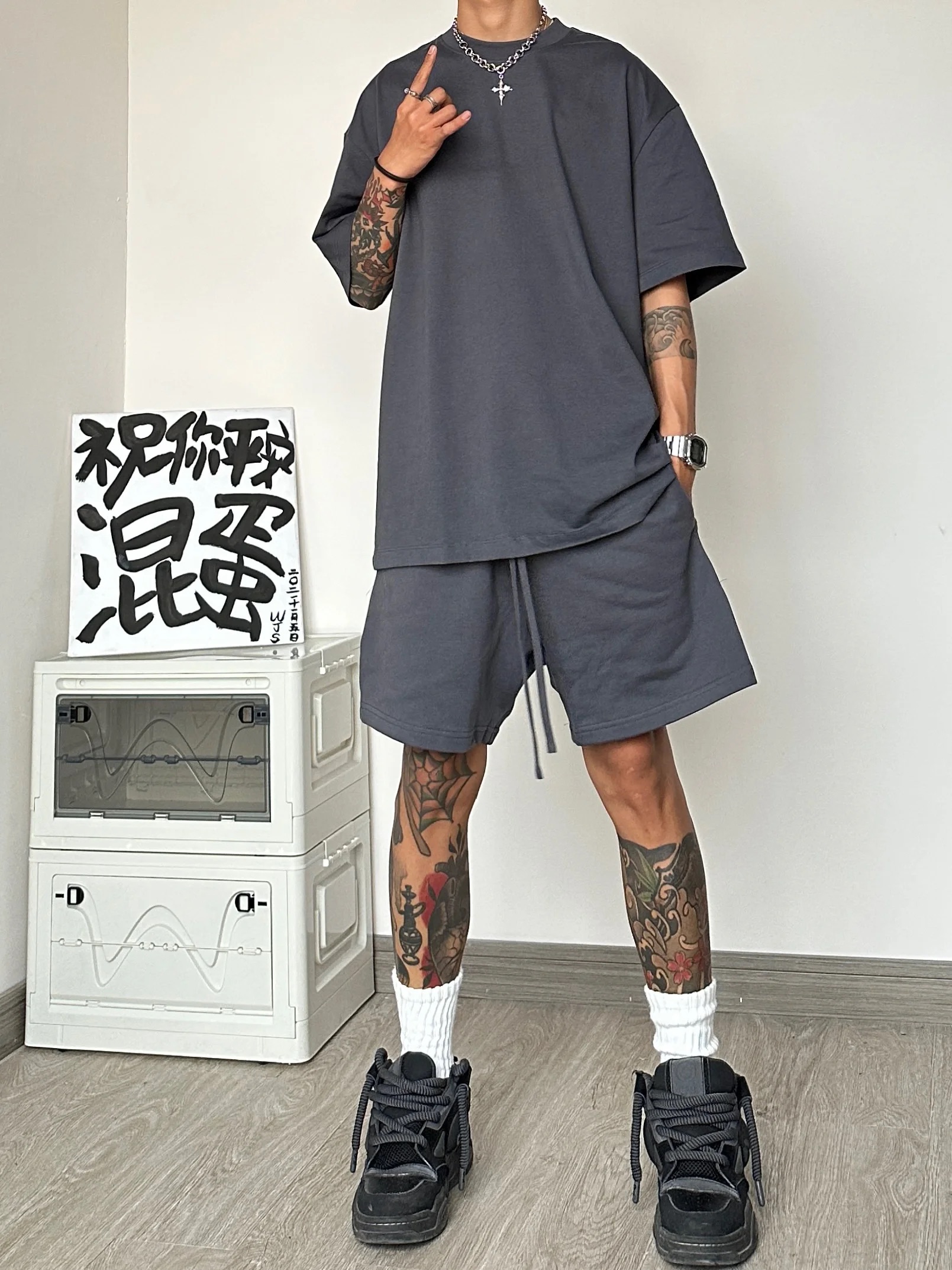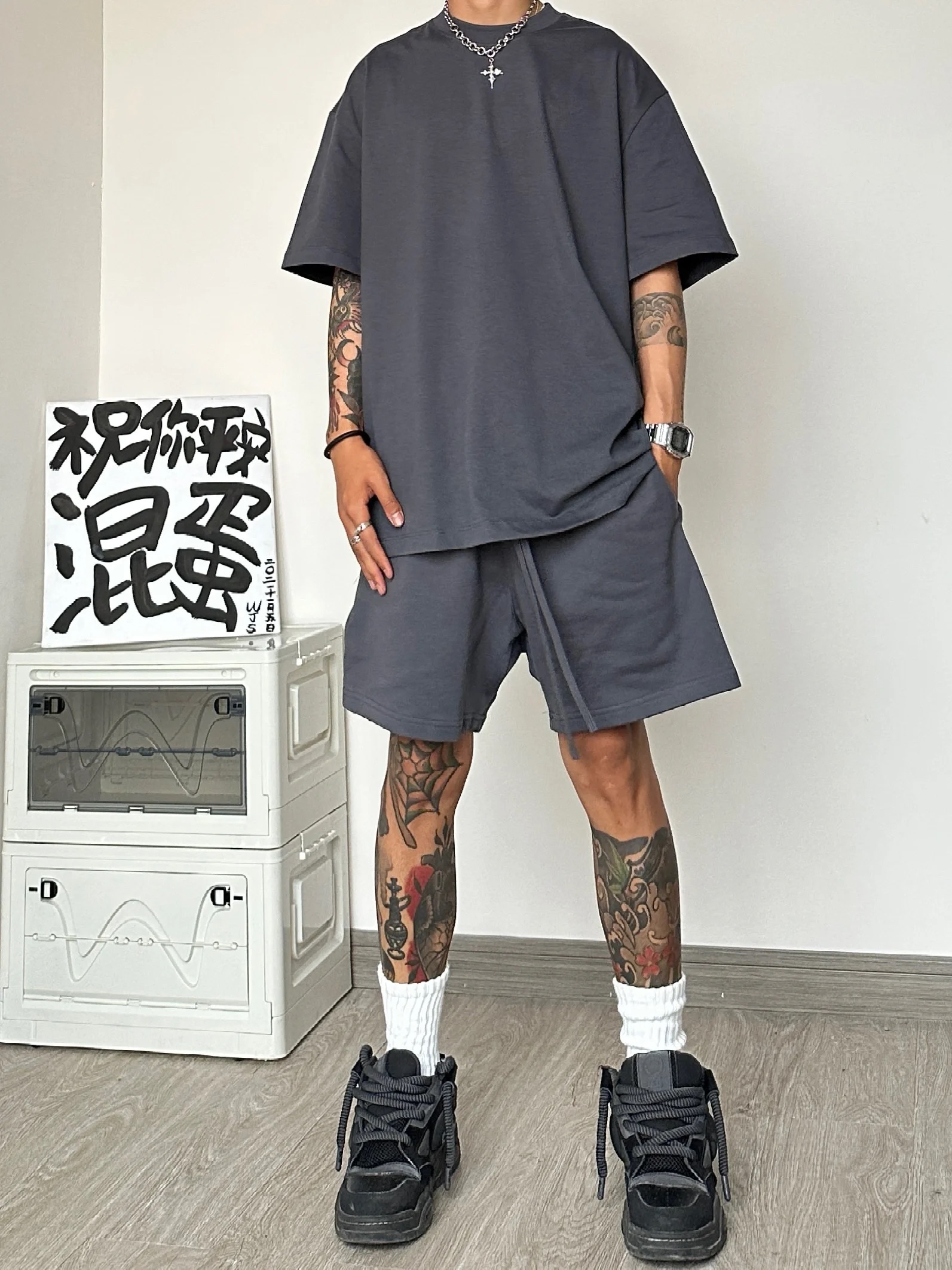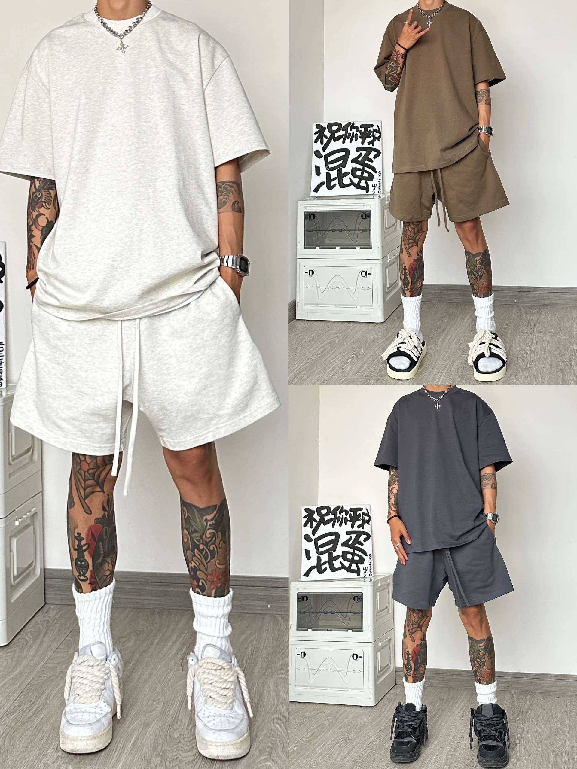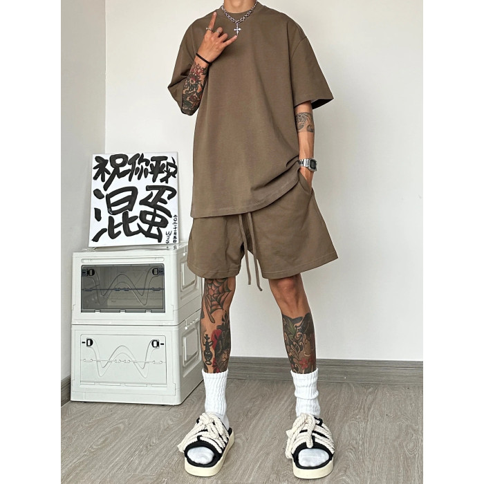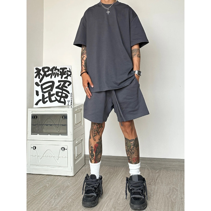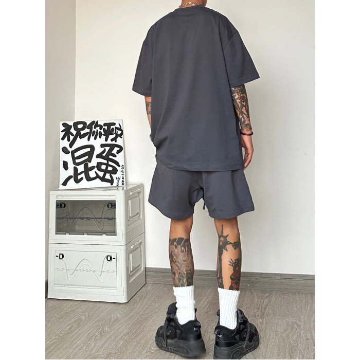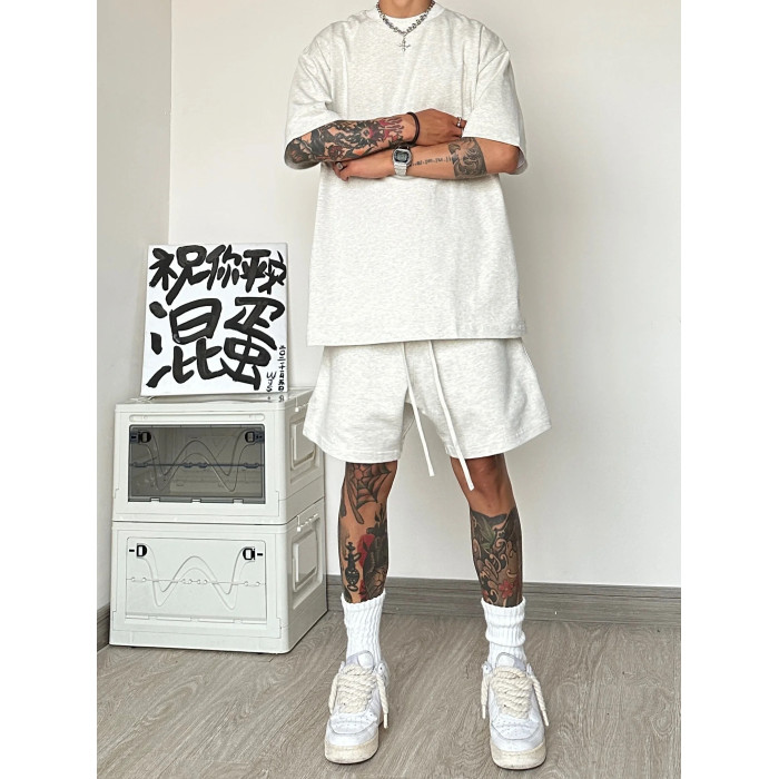 運動休閒套裝男夏季潮牌高級感男裝搭配一整套短袖T恤短褲兩件套