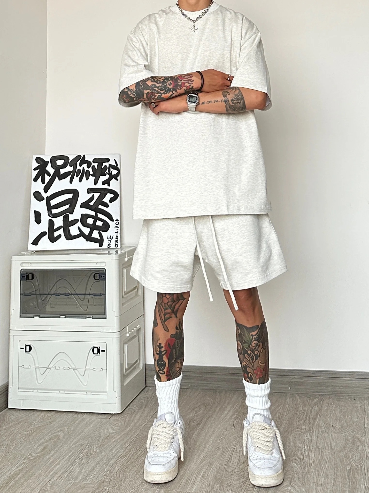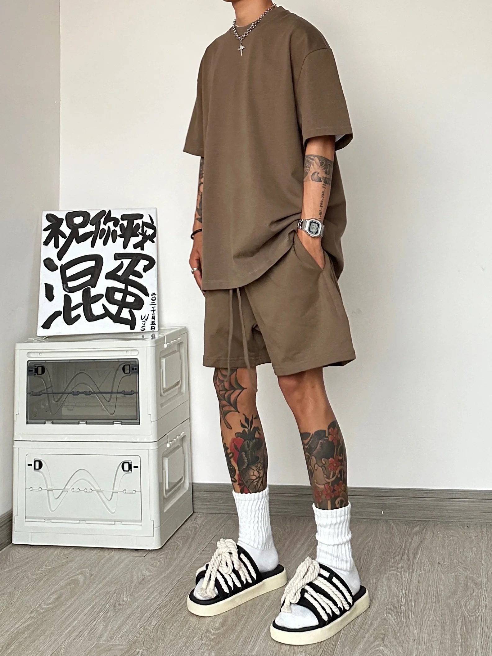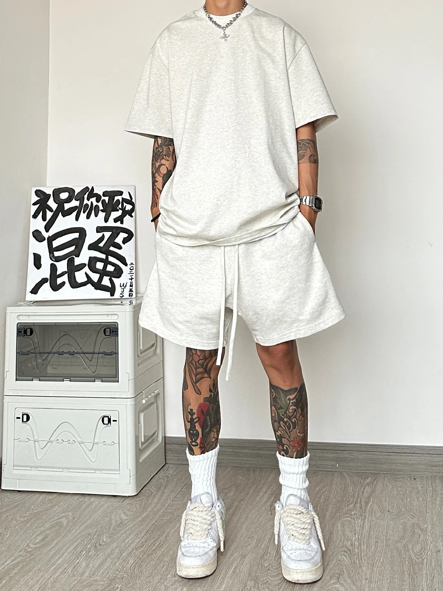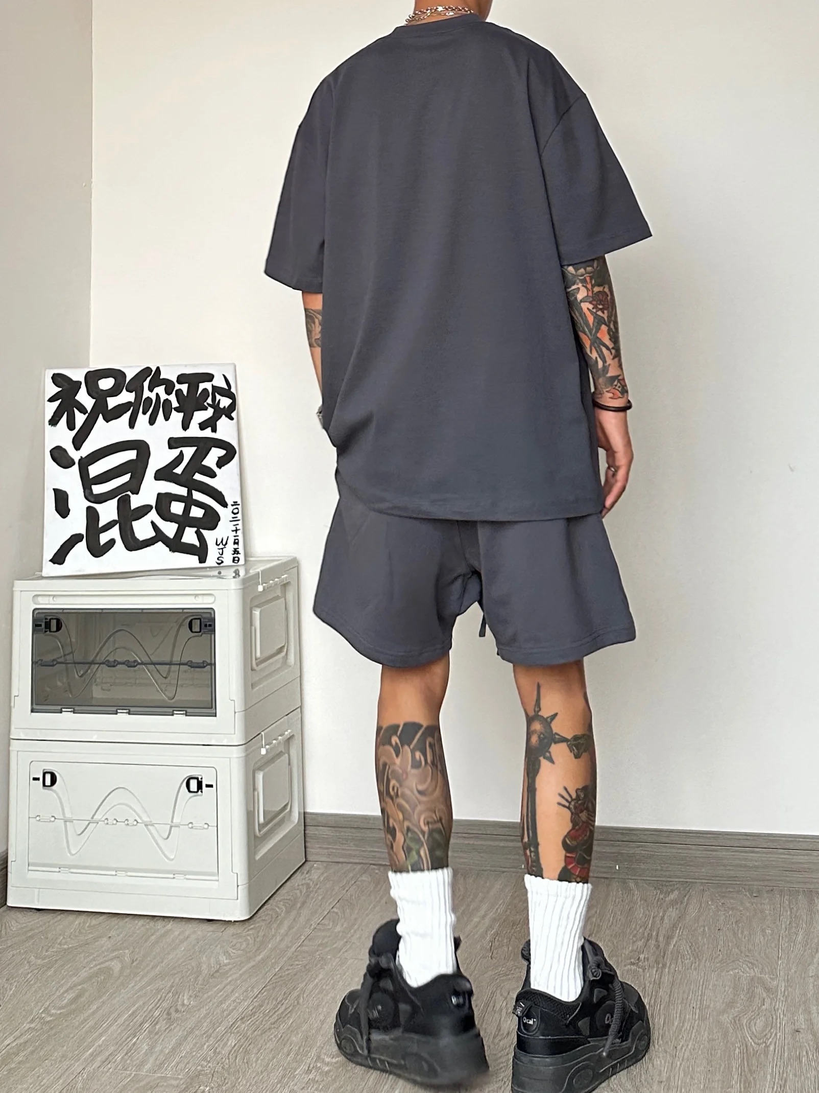 運動休閒套裝男夏季潮牌高級感男裝搭配一整套短袖T恤短褲兩件套