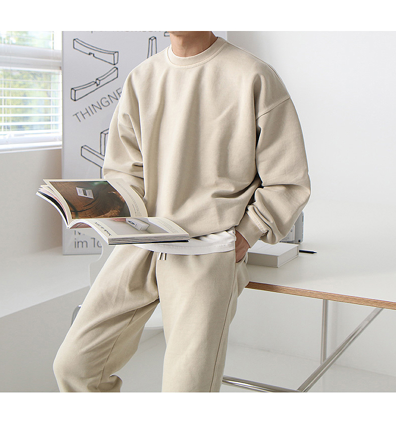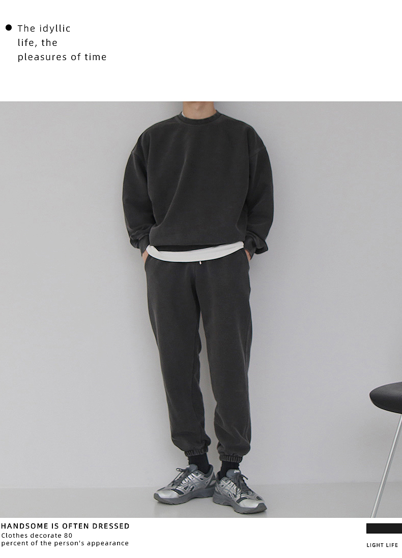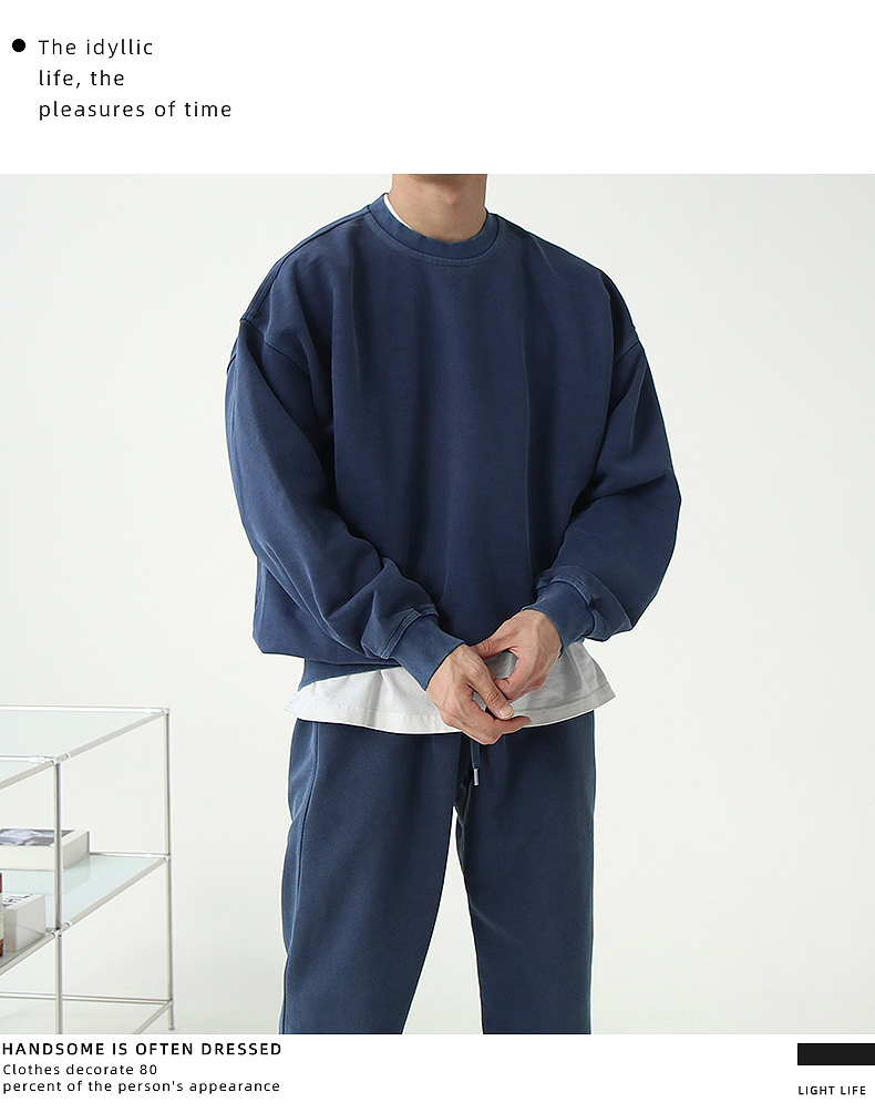 2025新款運動套裝男潮牌圓領寬松衛衣男韓版潮流休閒九分束腳衛褲
