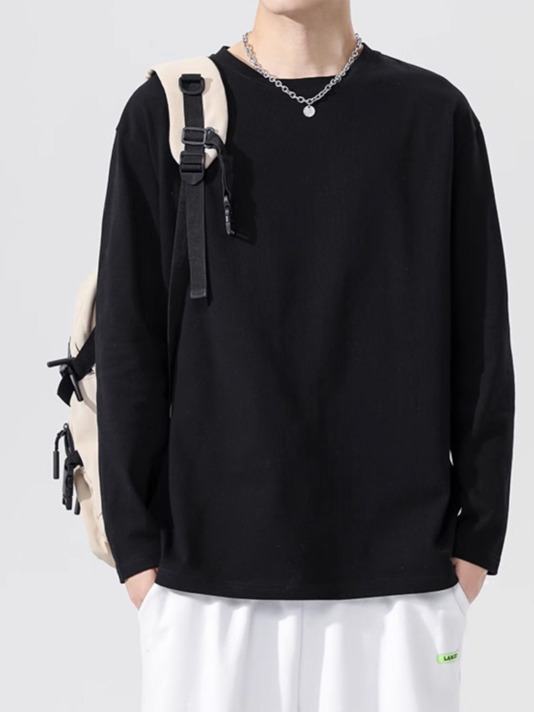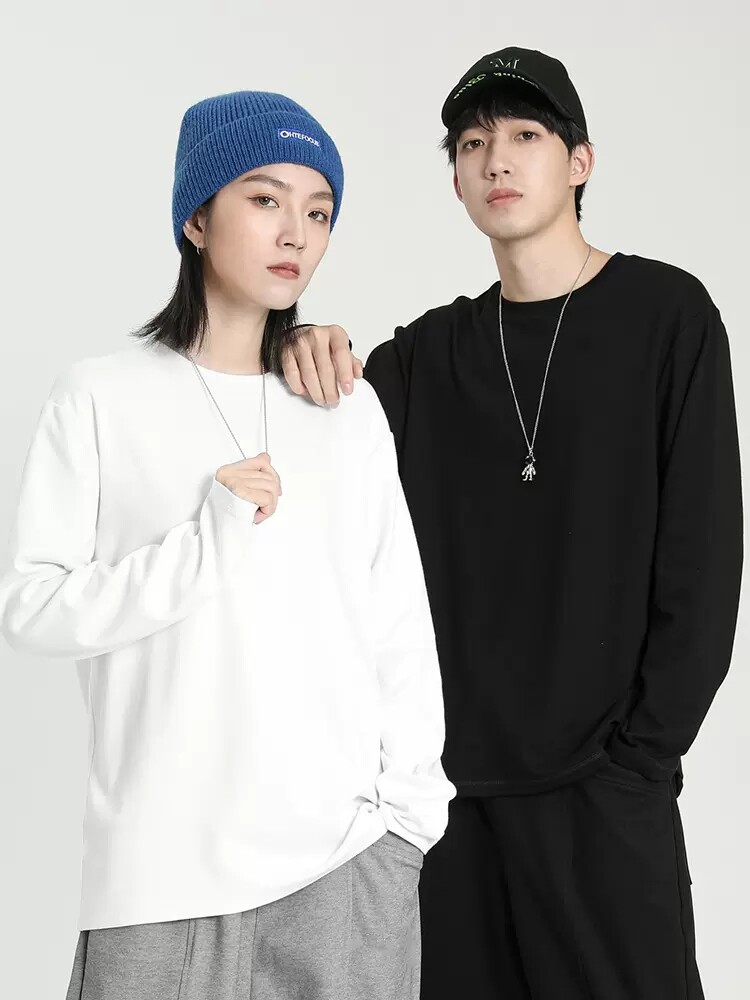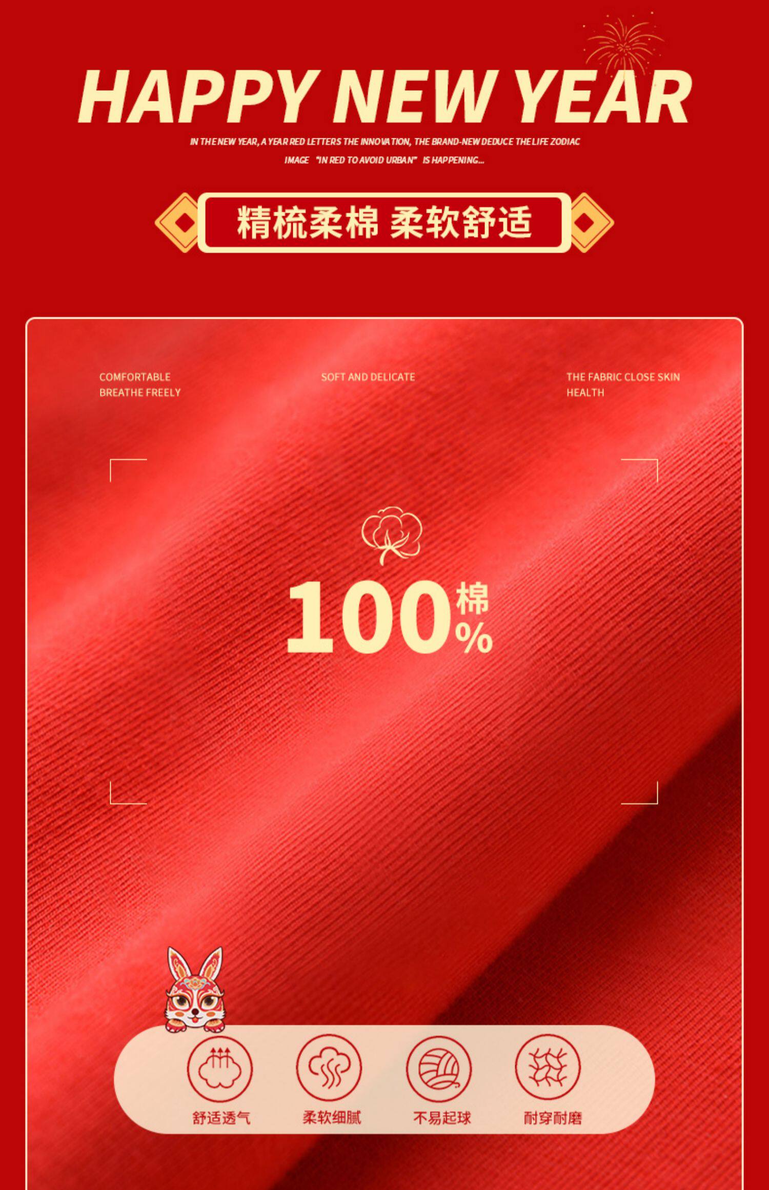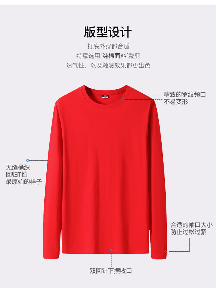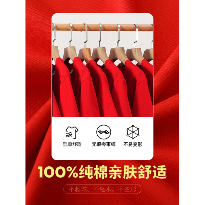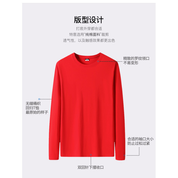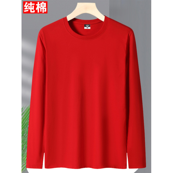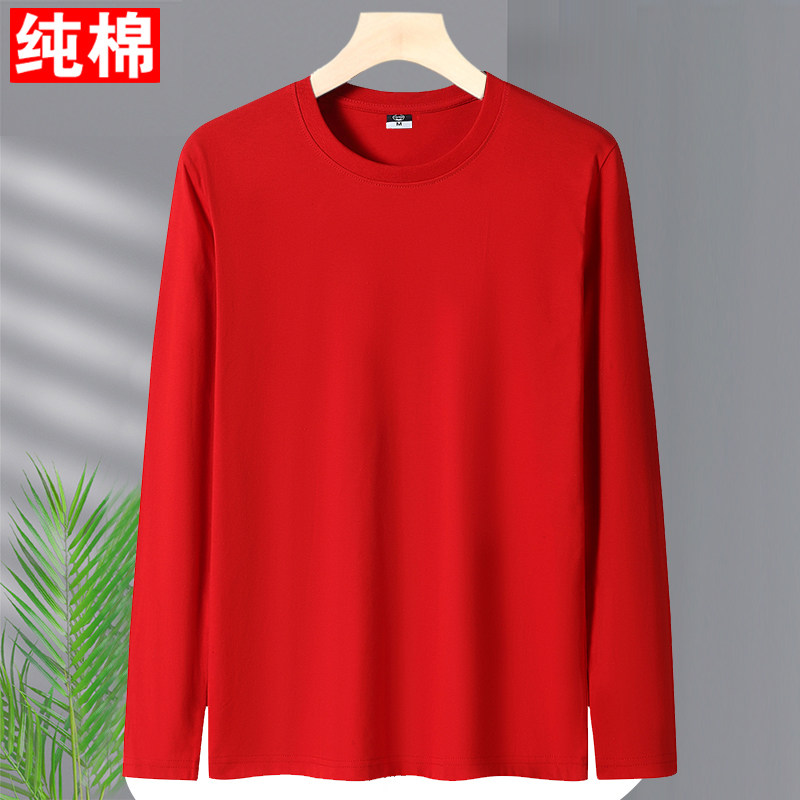 本命年紅色純棉純色長袖T恤男女同款打底衫內搭男士秋衣上衣