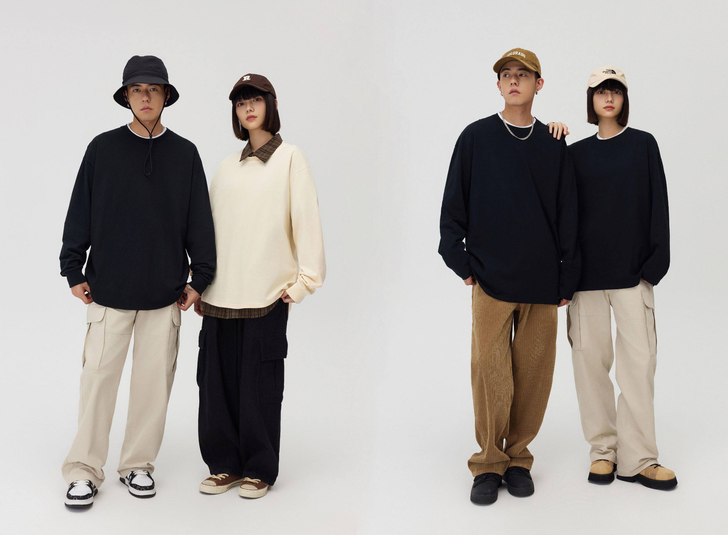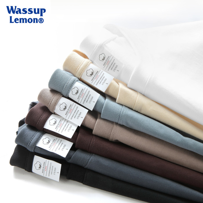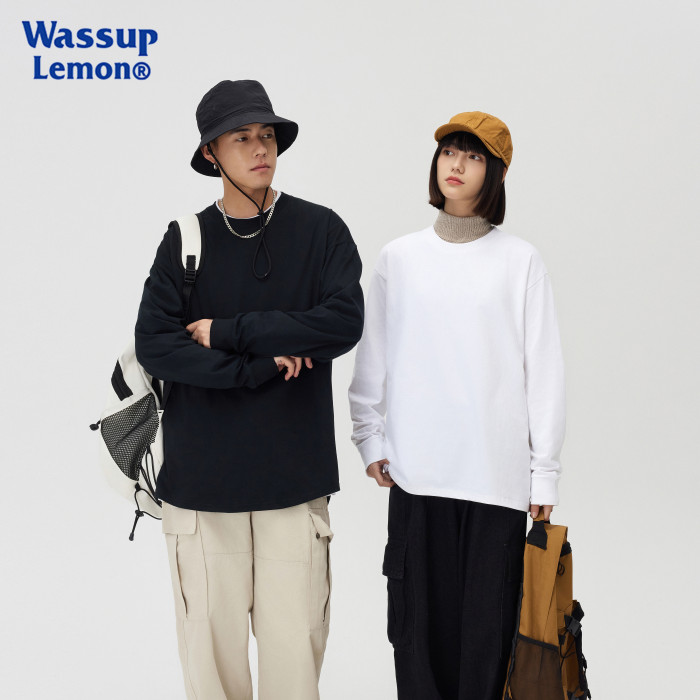 WASSUP LEMON重磅純棉長袖t恤男純白色打底衫女寬松情侶內搭上衣