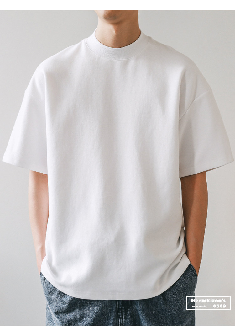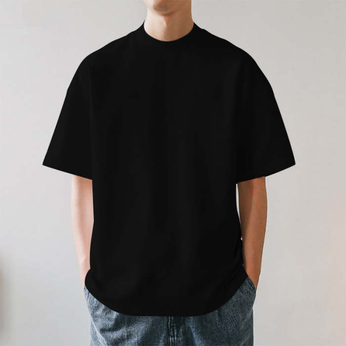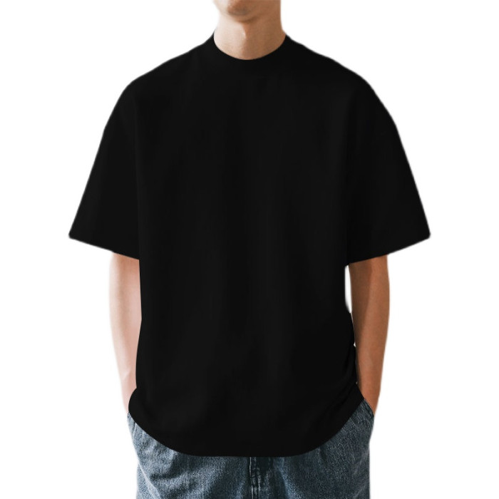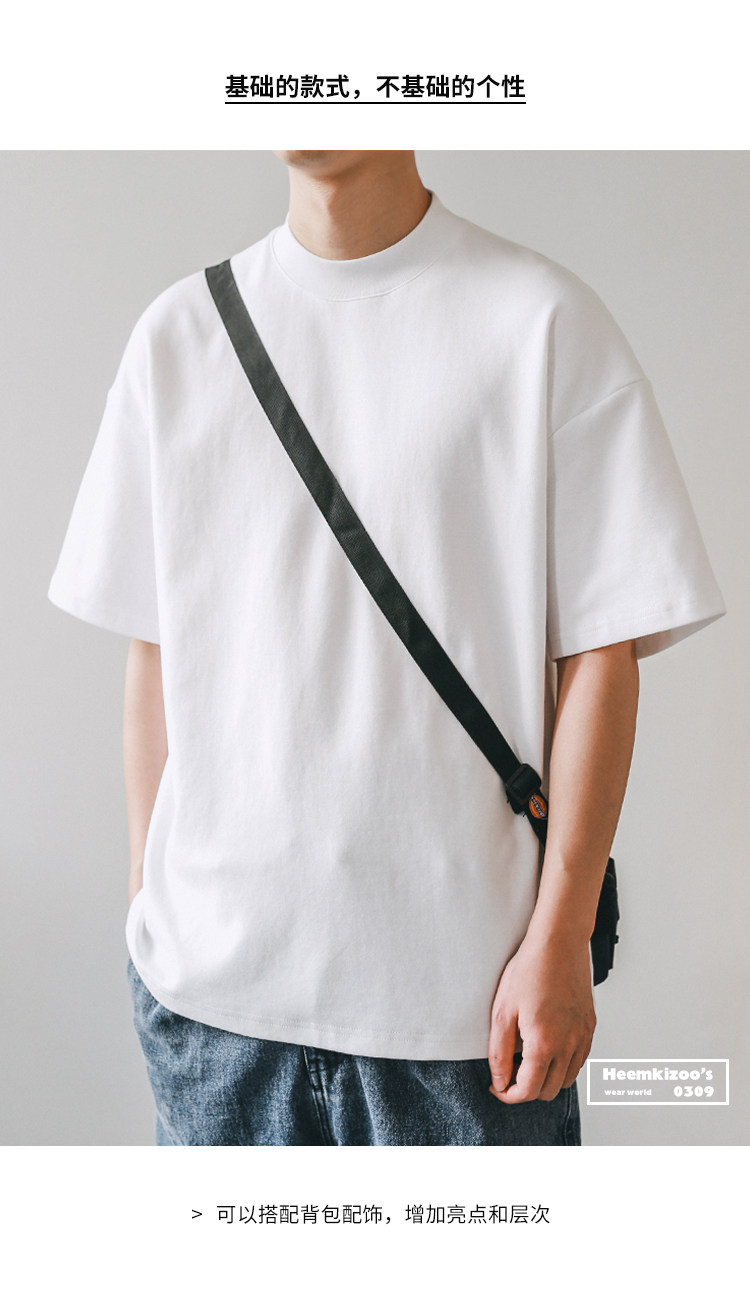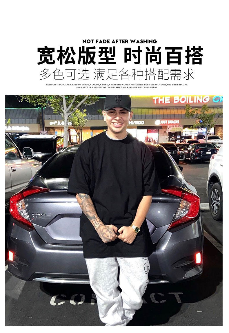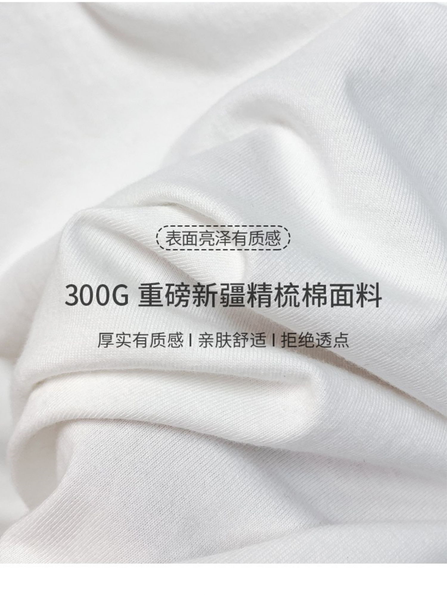 300G重磅純棉短袖圓領寬松厚實不透美式純色小領口打底衫t恤男女