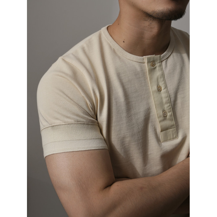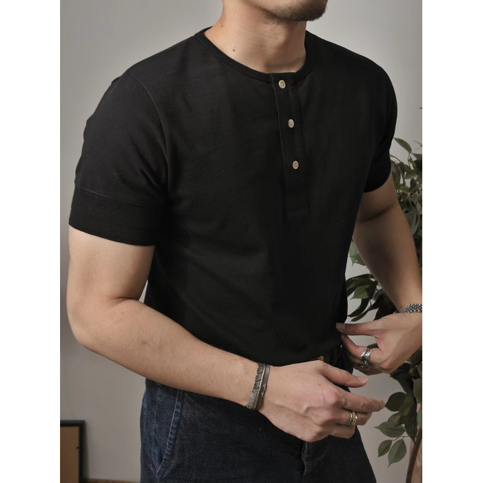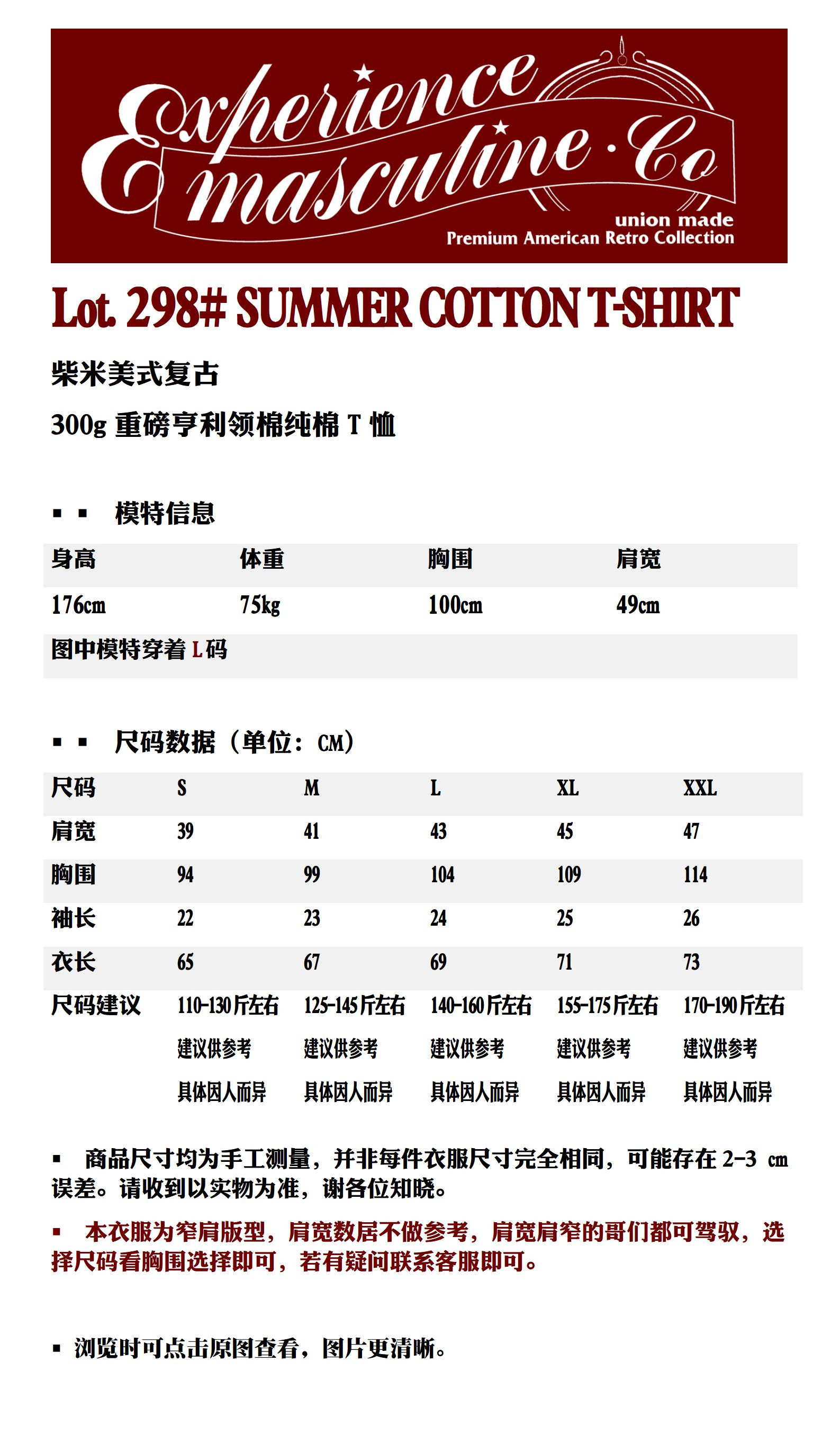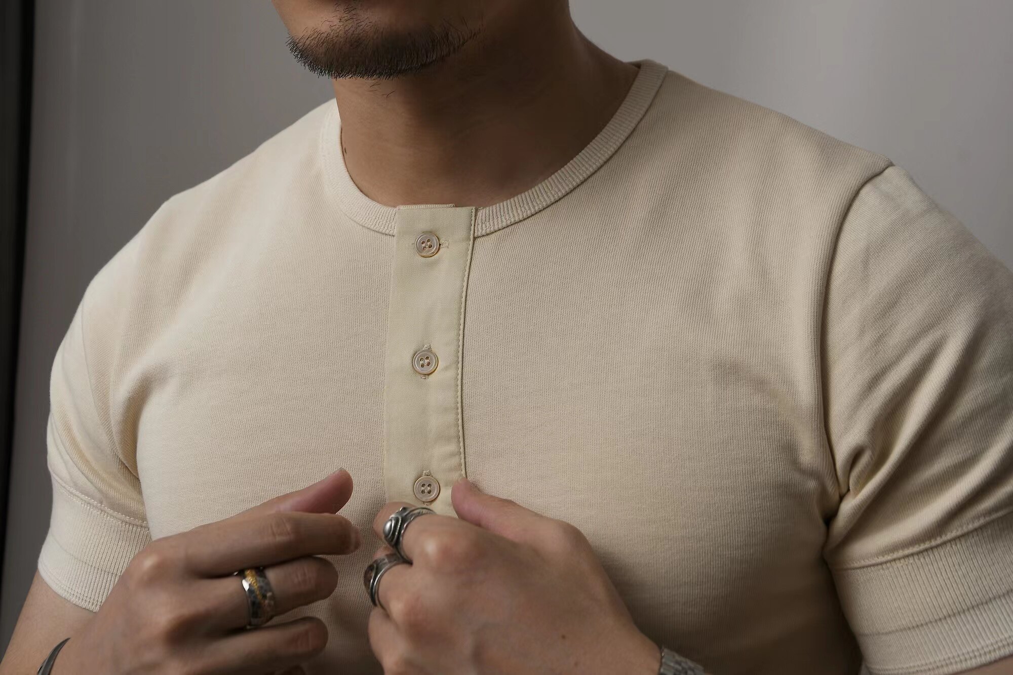 柴米300g亨利領重磅T恤男美式復古阿美哢嘰短袖修身純色全棉夏季
