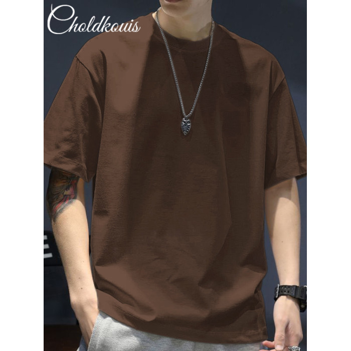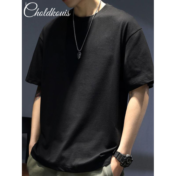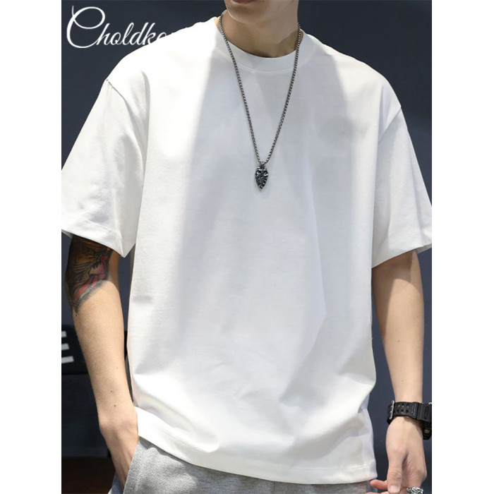 260克純棉純色短袖T恤男女打底衫白色半袖t恤重磅寬松圓領半截袖