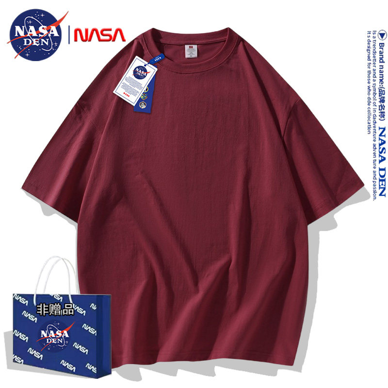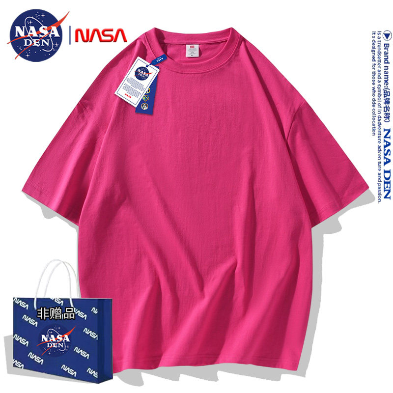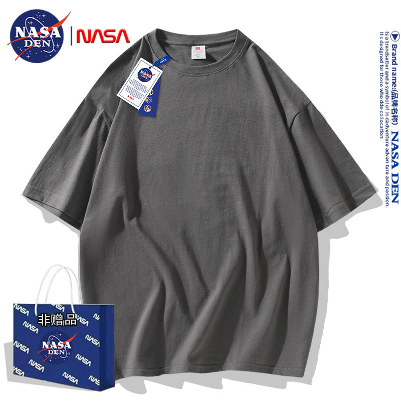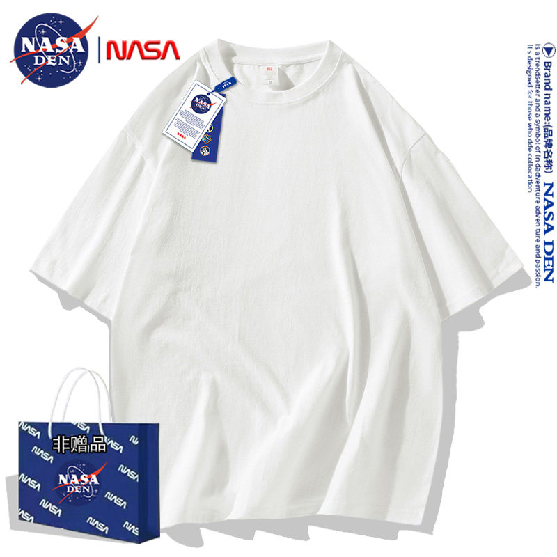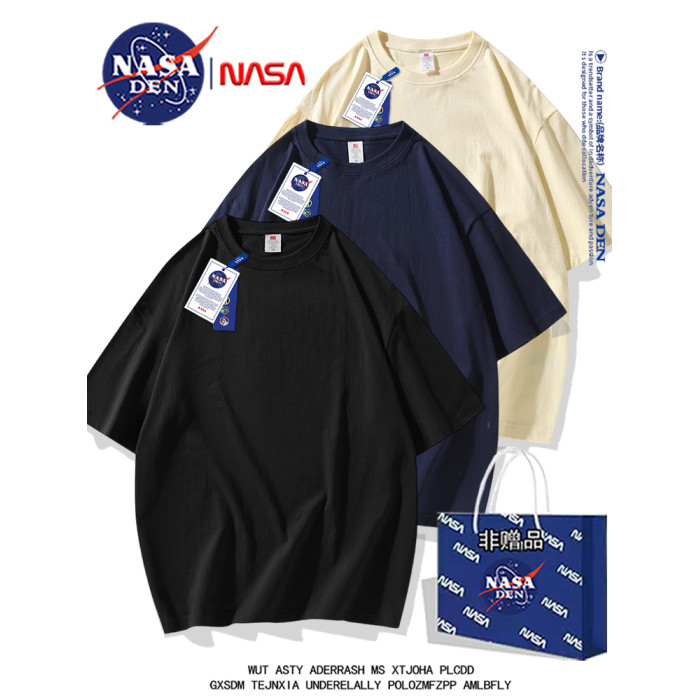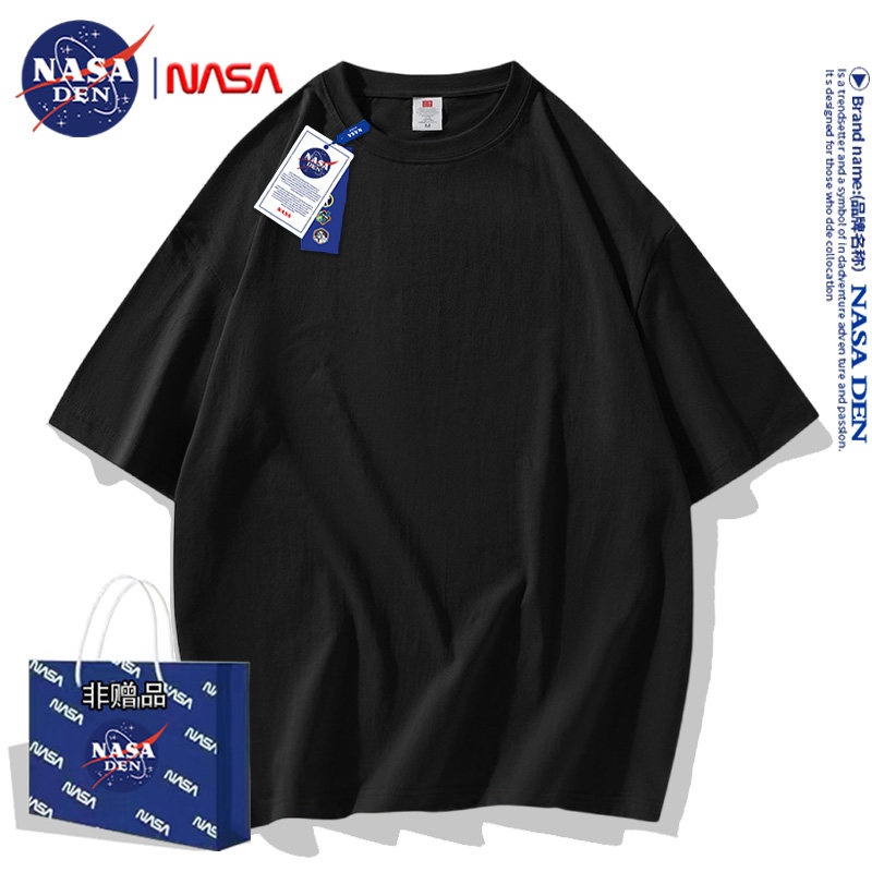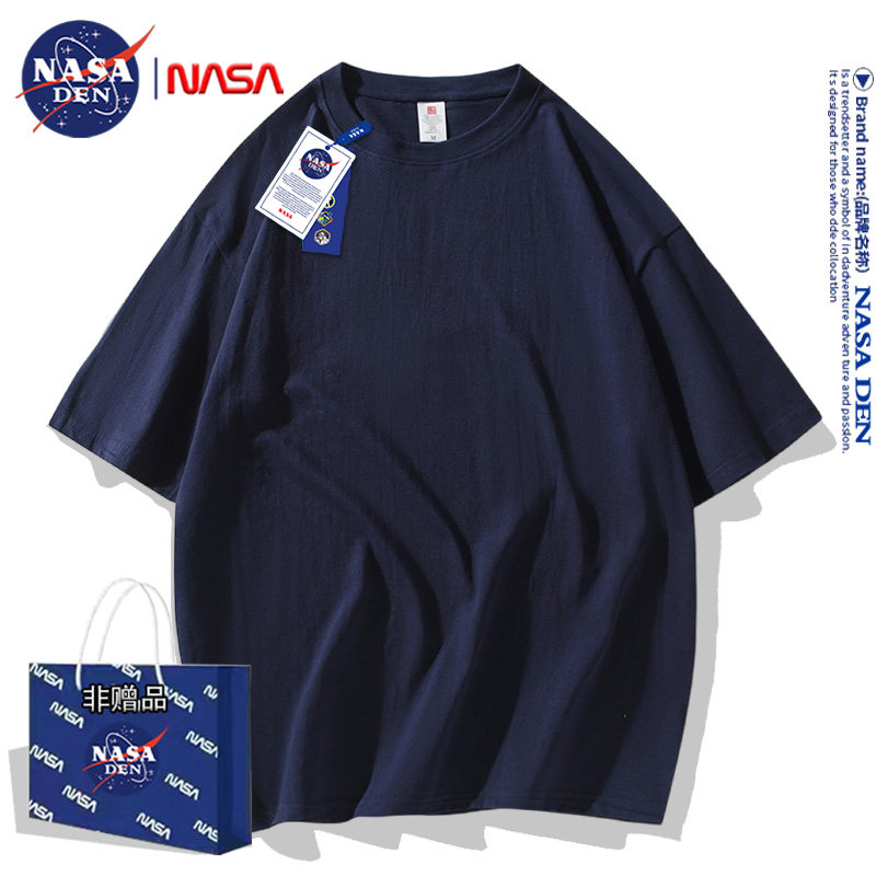 NASA聯名夏季美式純棉短袖t恤男女款休閒寬松圓領五分袖上衣服衫