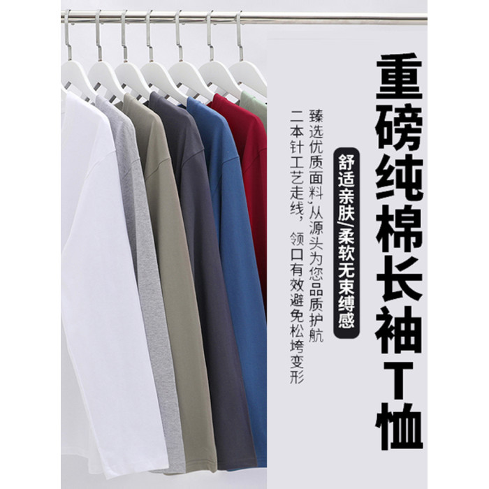 100%純棉長袖T恤男新疆棉內衣打底衫圓領純色t恤男潮流春秋體恤衫