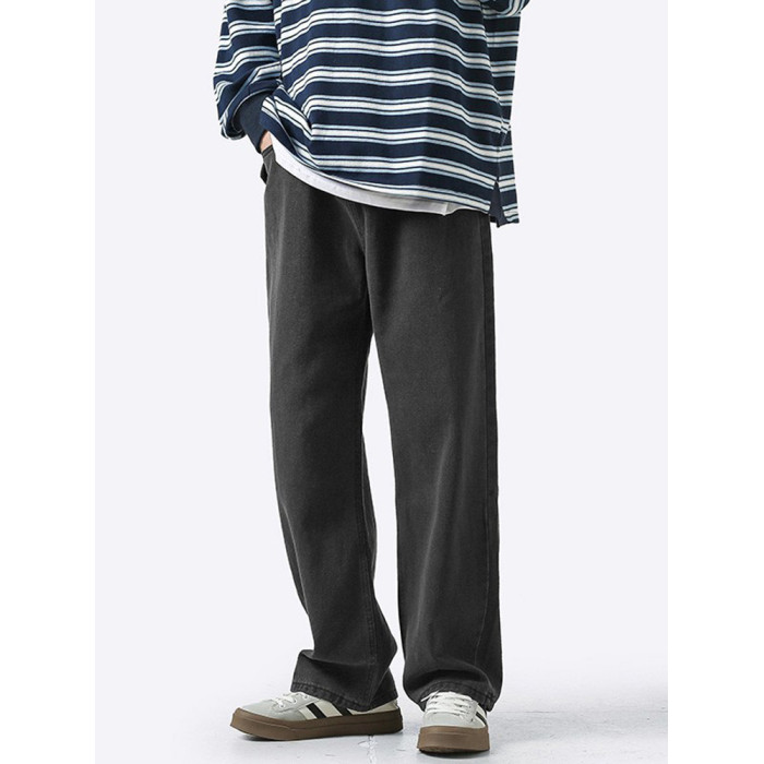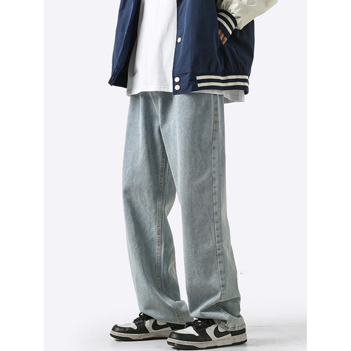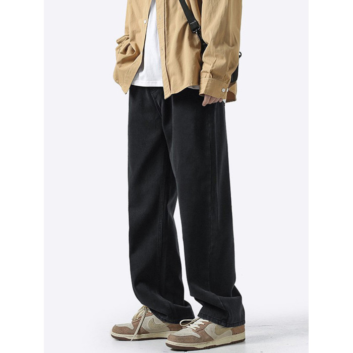 美式牛仔褲男水洗做舊復古黃泥染百搭褲秋季潮牌高街寬松直筒褲子