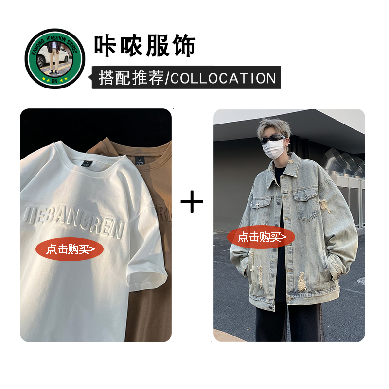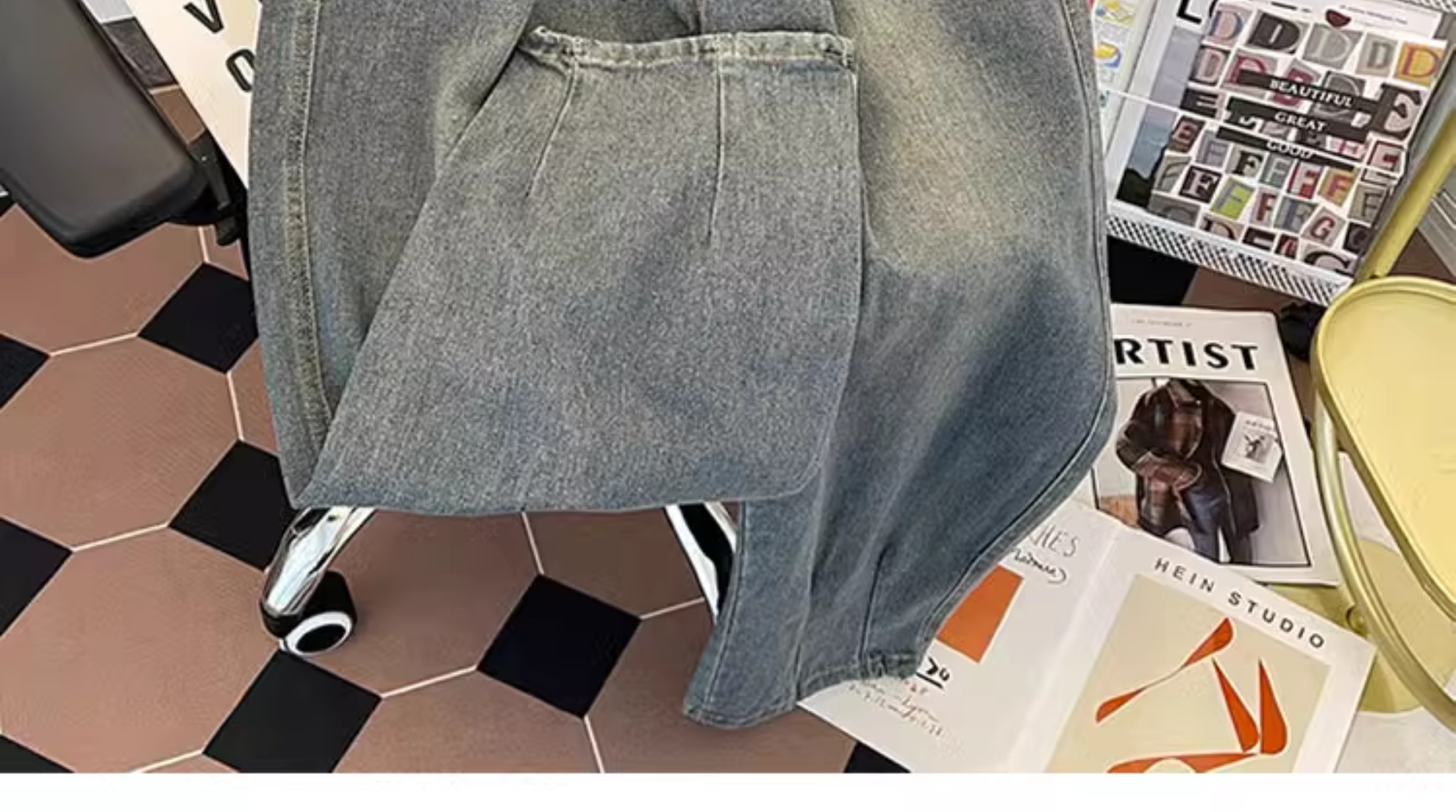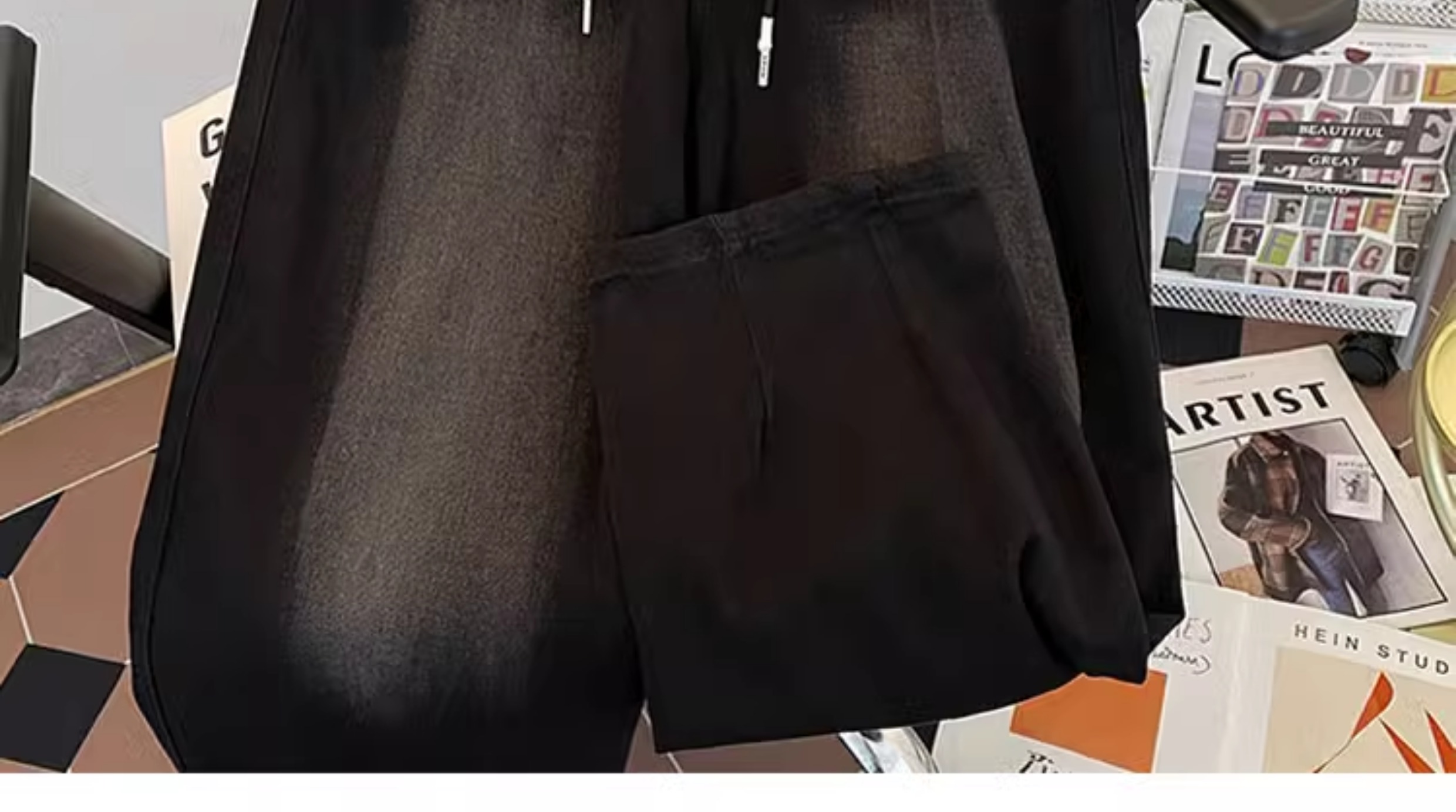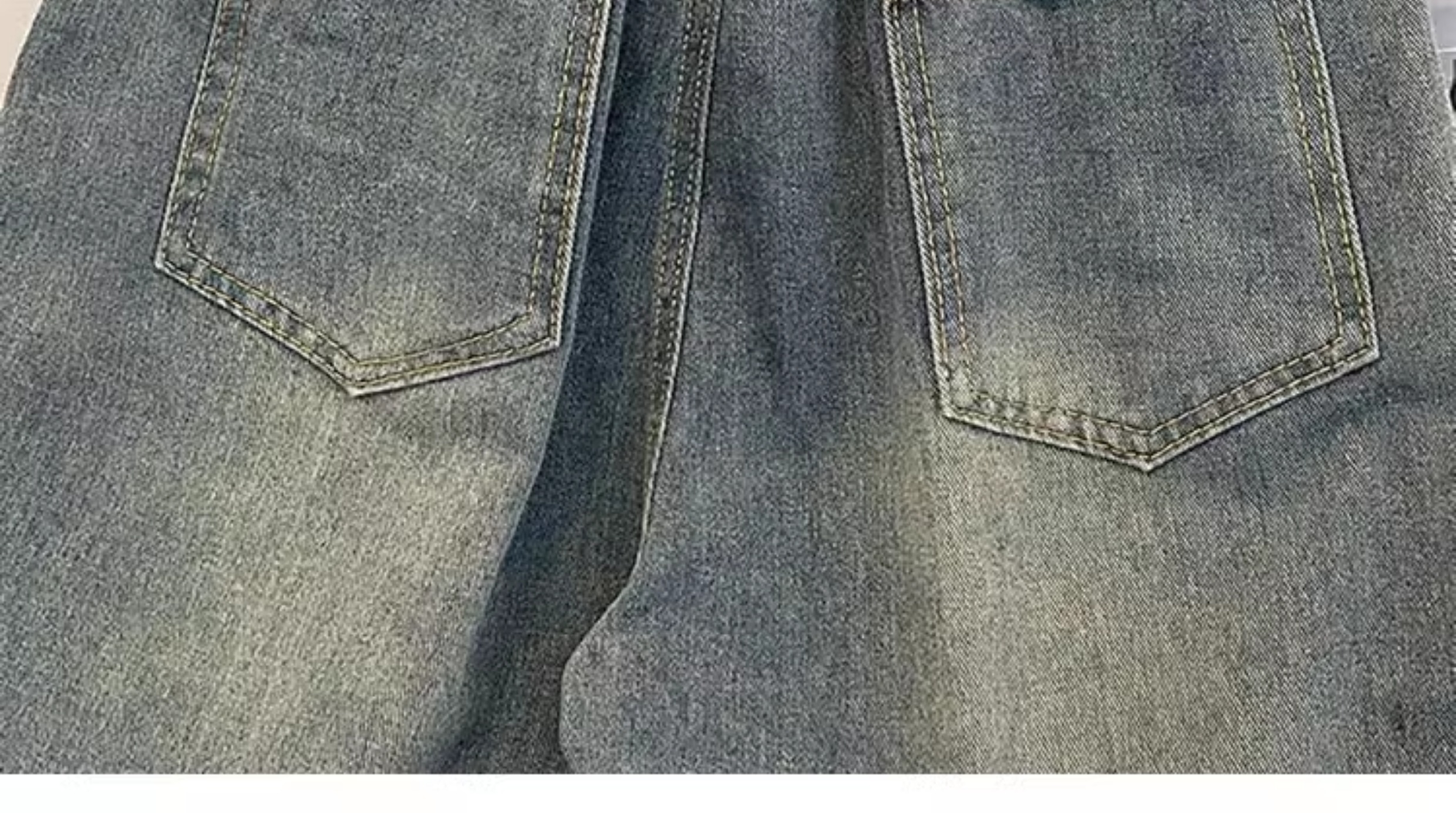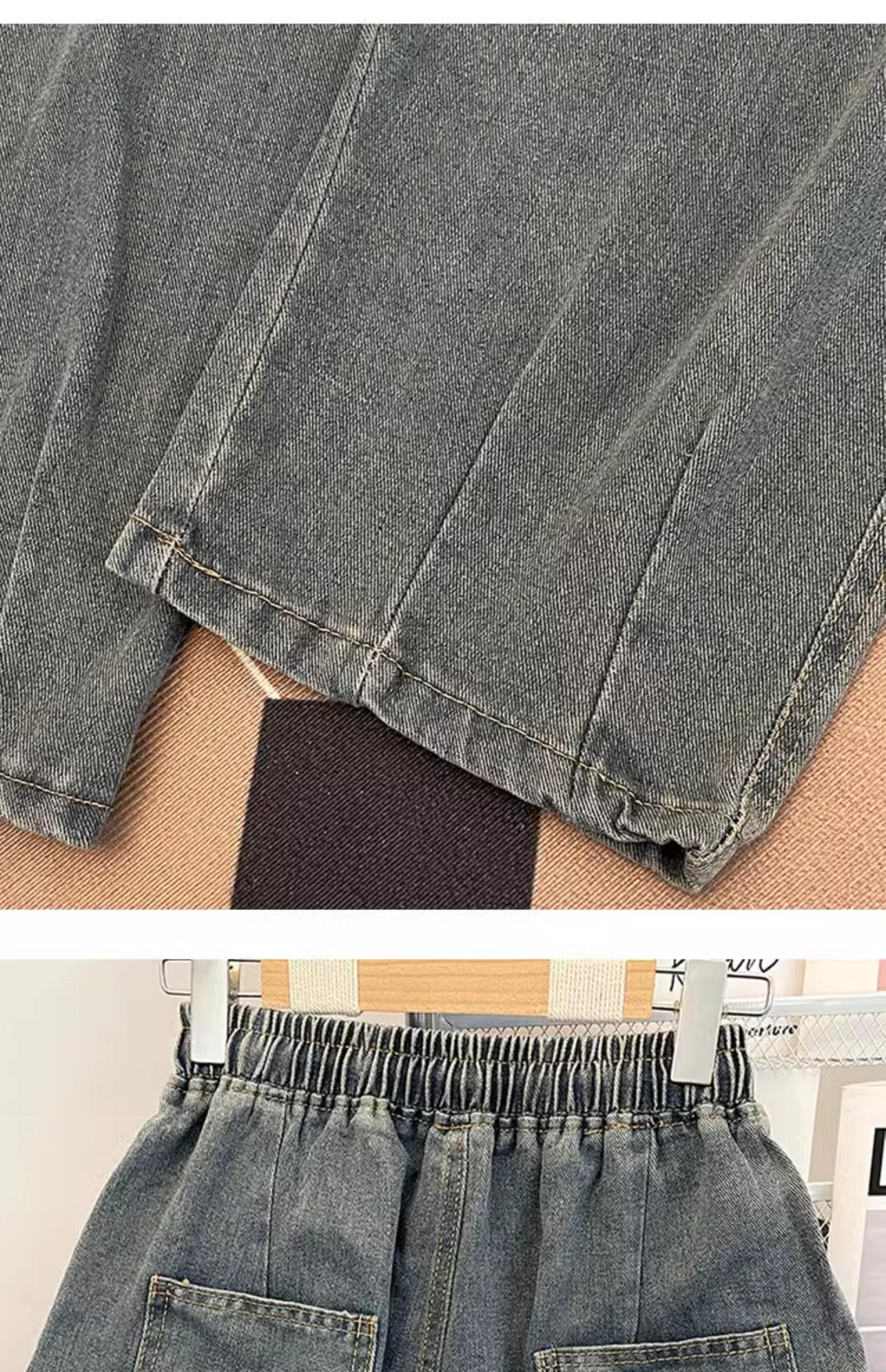 美式垂感復古牛仔褲男高街潮牌松緊腰抽繩濶腿褲子男生休閒長褲子