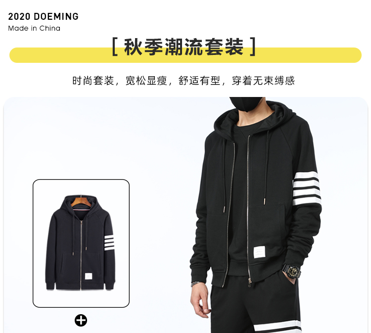 tb衛衣套裝男秋季運動休閒時尚男裝搭配帥氣潮流男士秋裝開衫外套