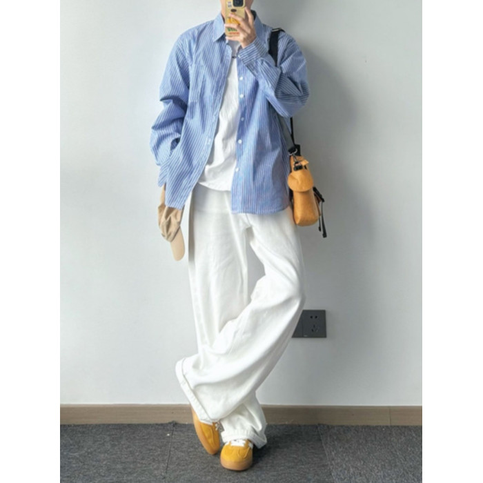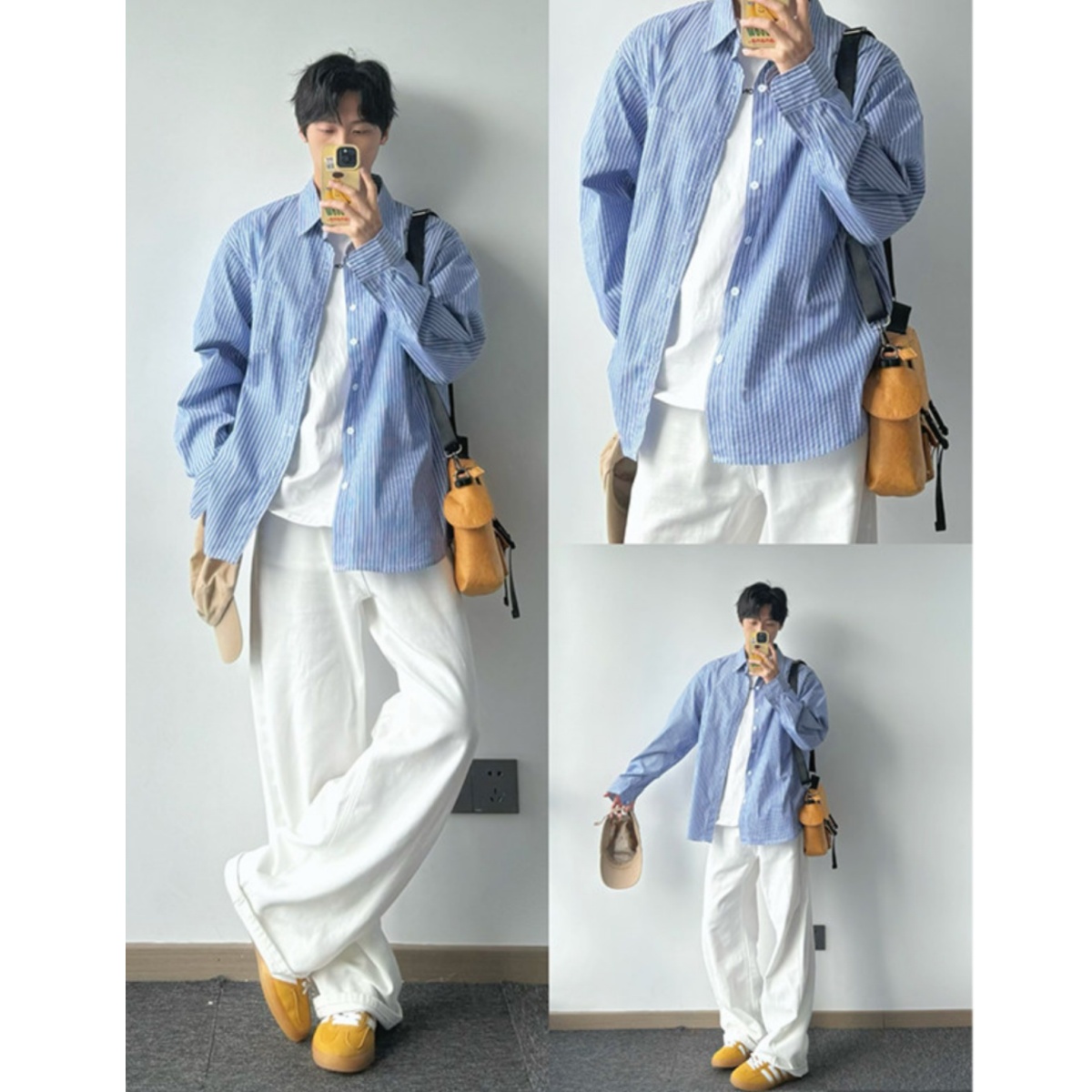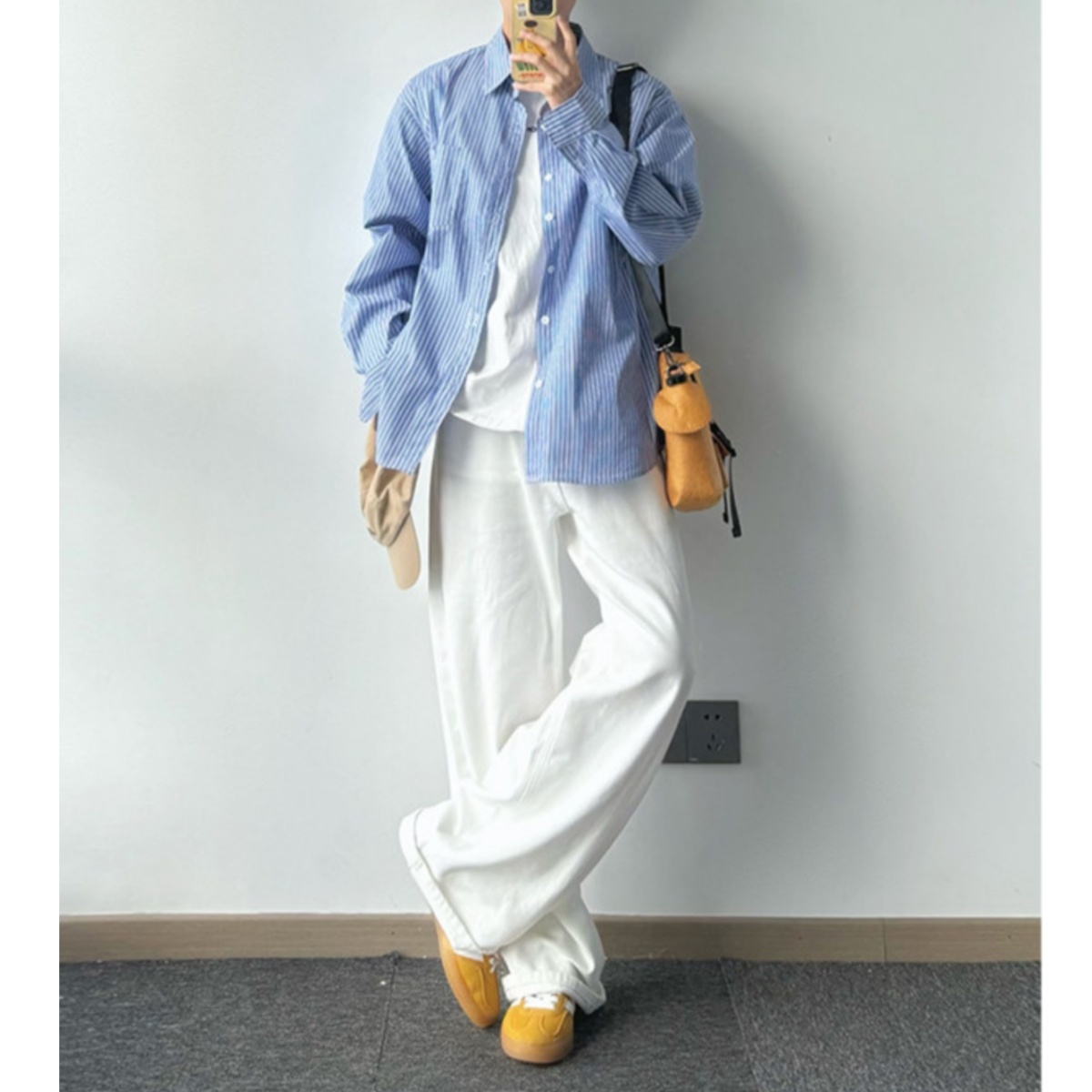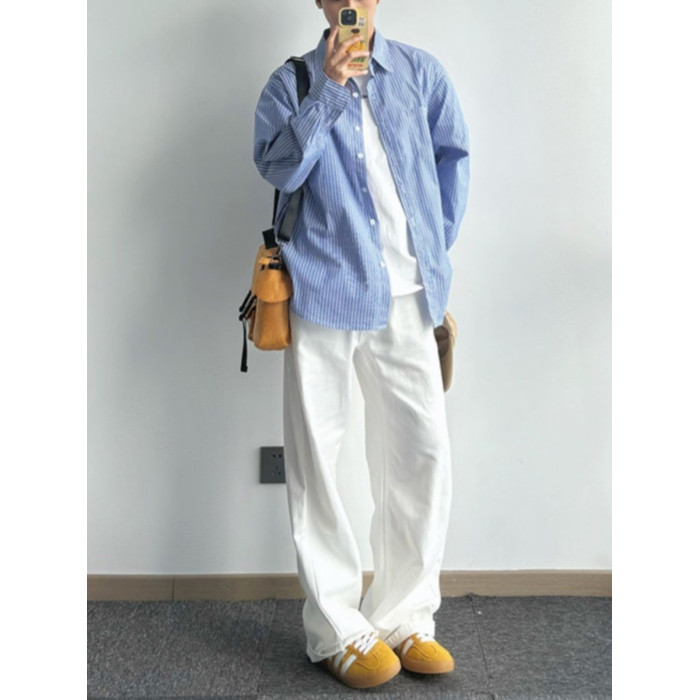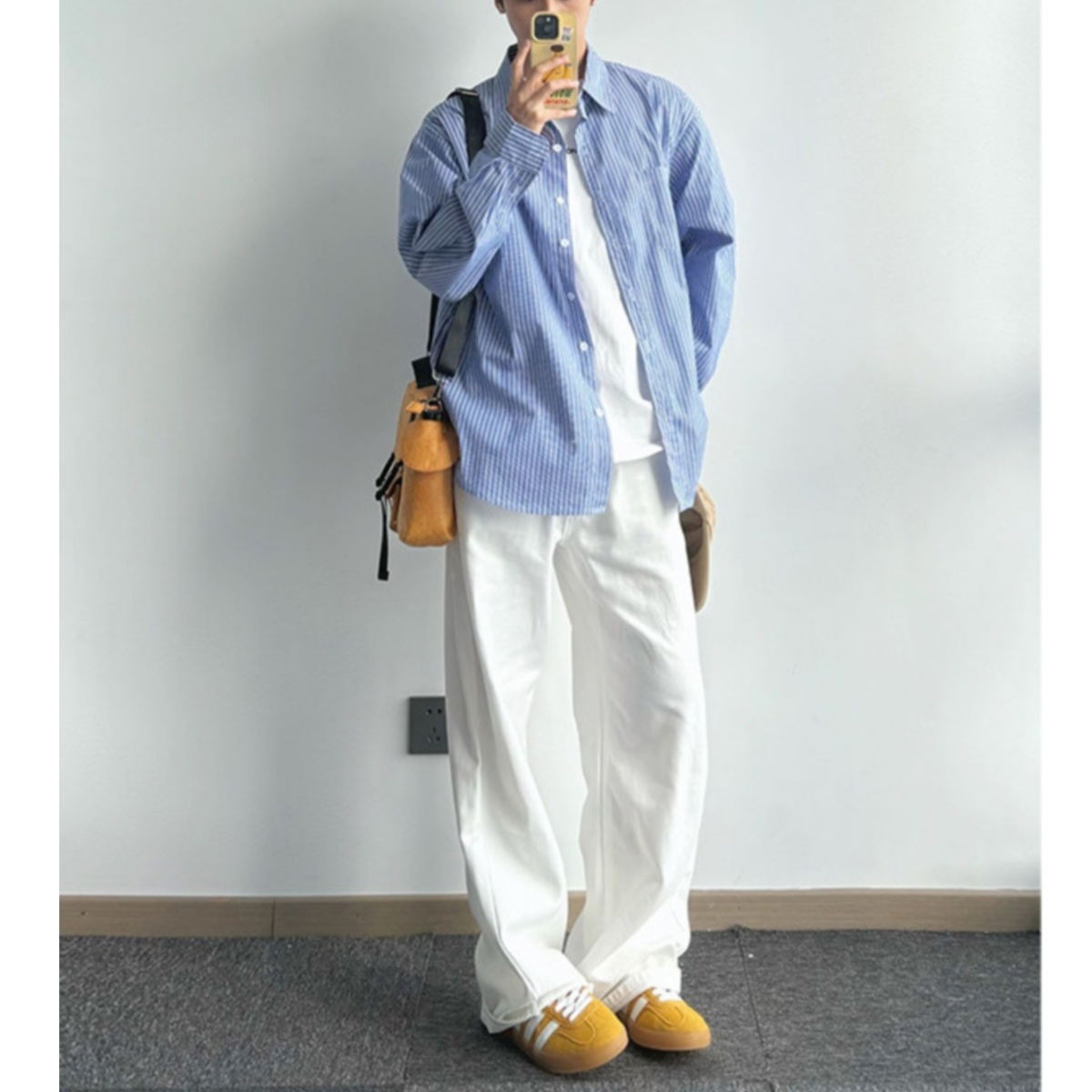 日系大碼白色牛仔褲男潮牌Cleanfit痞帥濶腿褲子美式高街直筒長褲