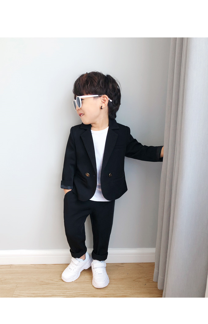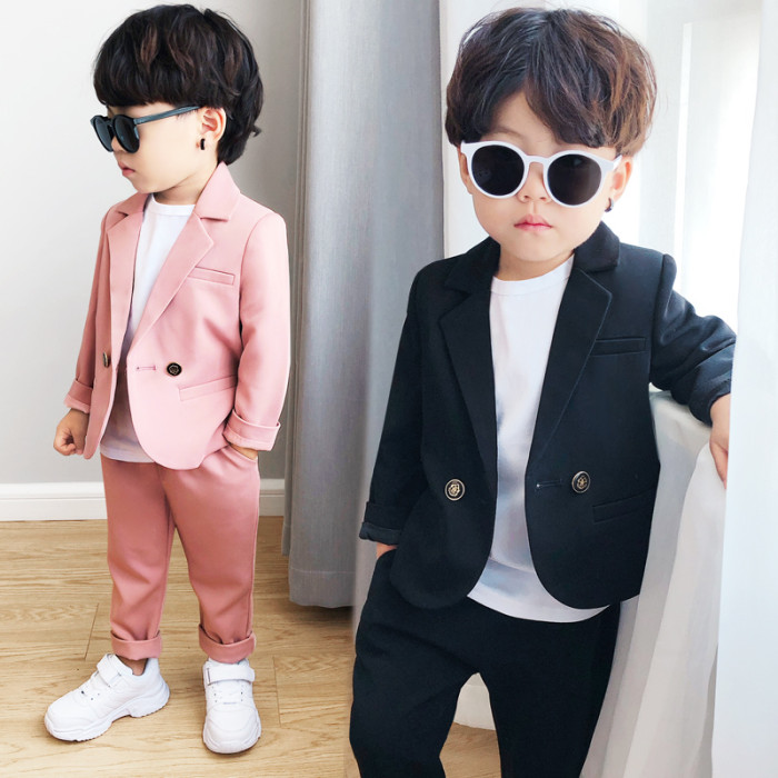 童裝男童西裝套裝春秋款兒童帥氣小西服男寶寶春裝時髦炸街兩件套