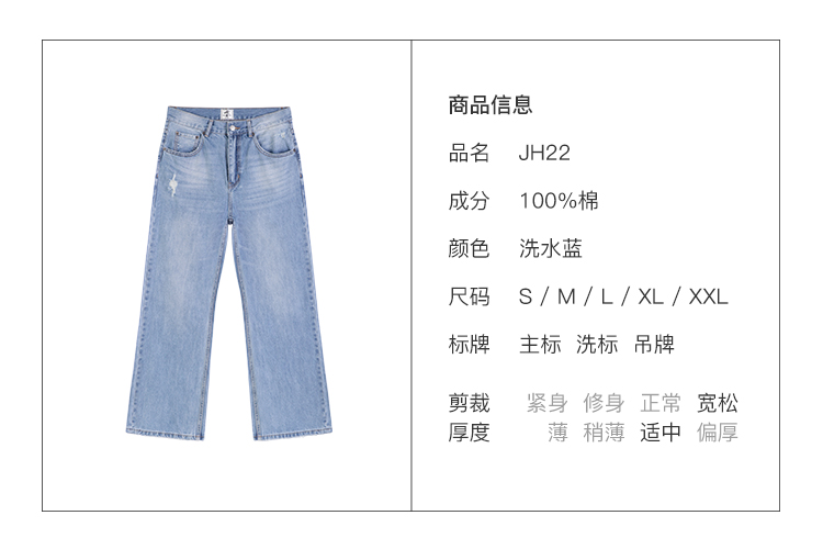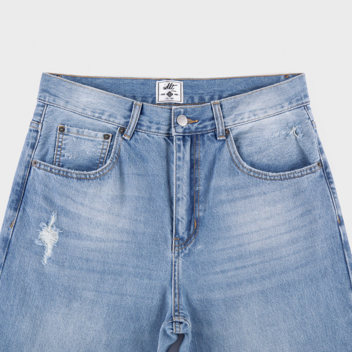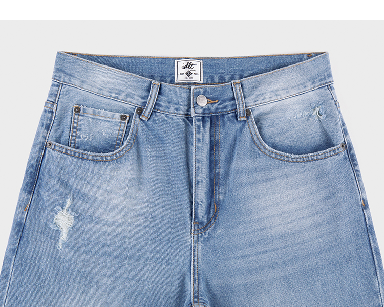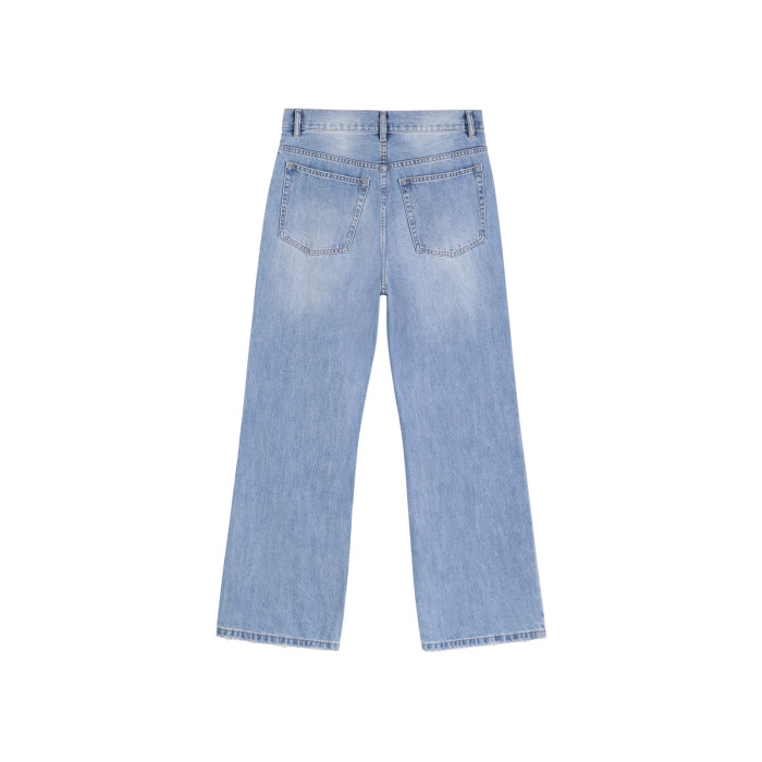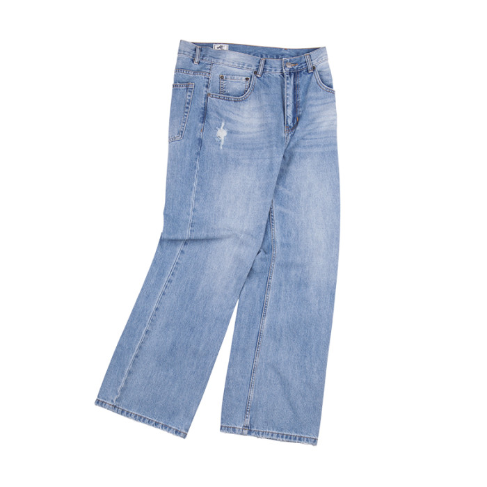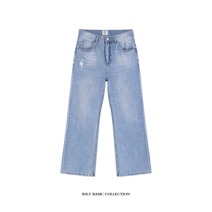 IDLT 寬松微喇 2021M 高品質 藍色貓須馬騮洗水牛仔褲男女濶腿潮