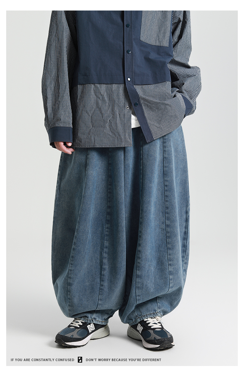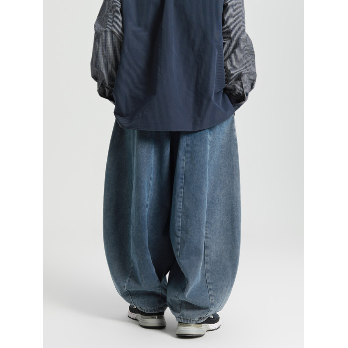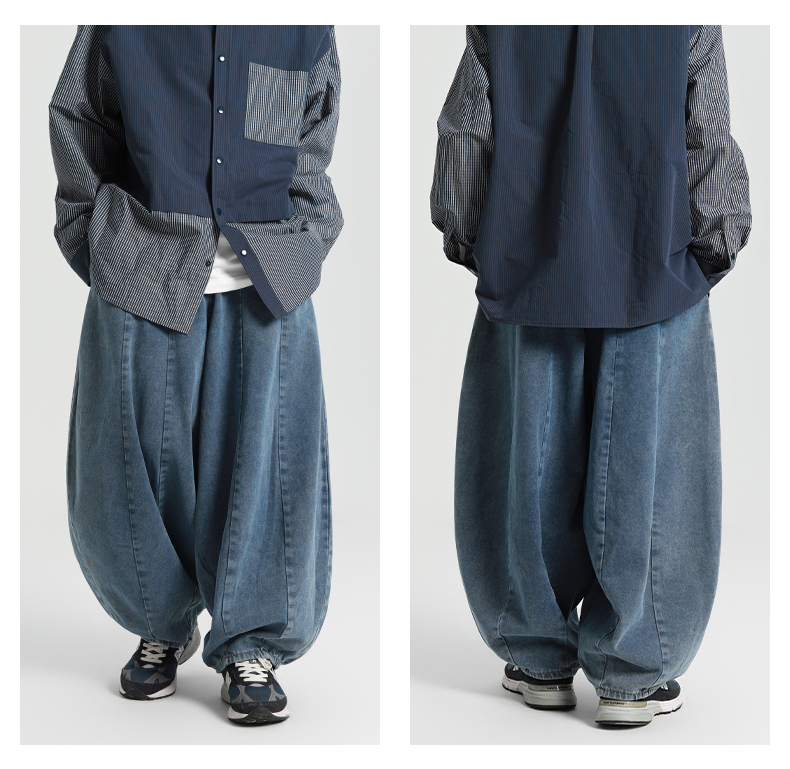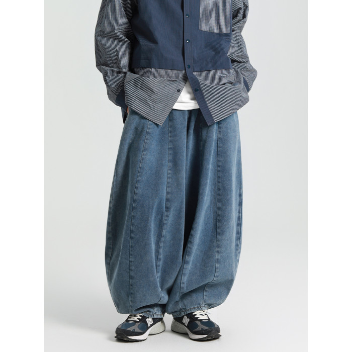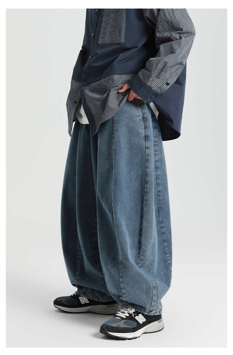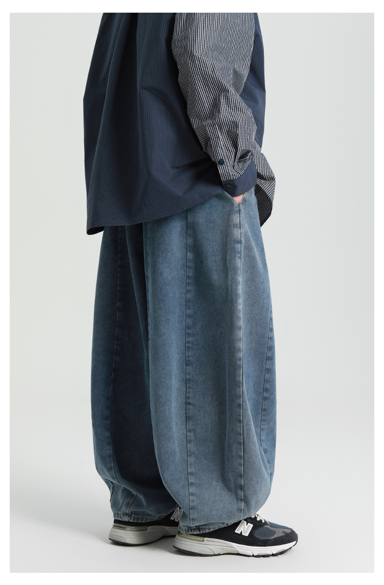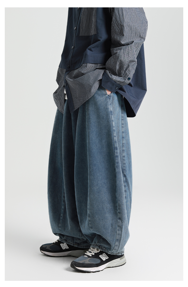 怕生的鹿 美式復古oversize廓形牛仔褲男寬松垂感濶腿大碼燈籠褲