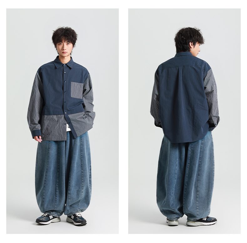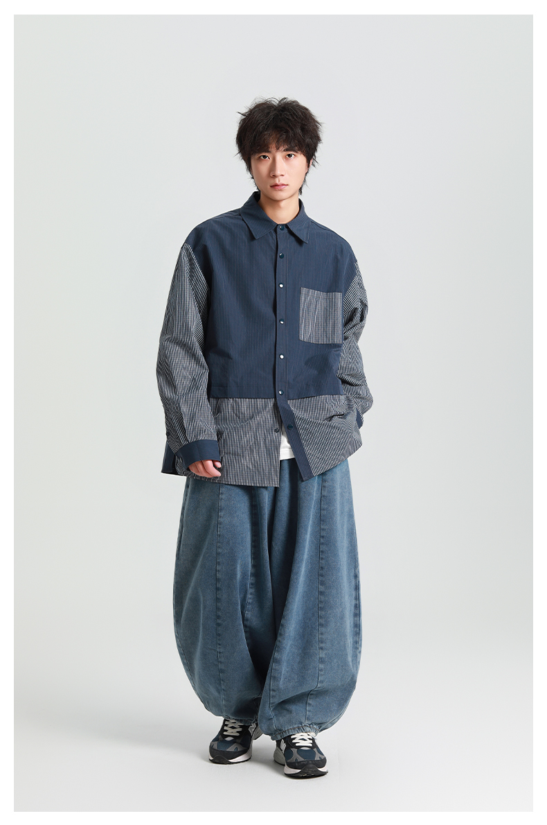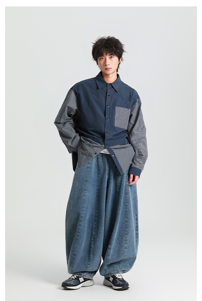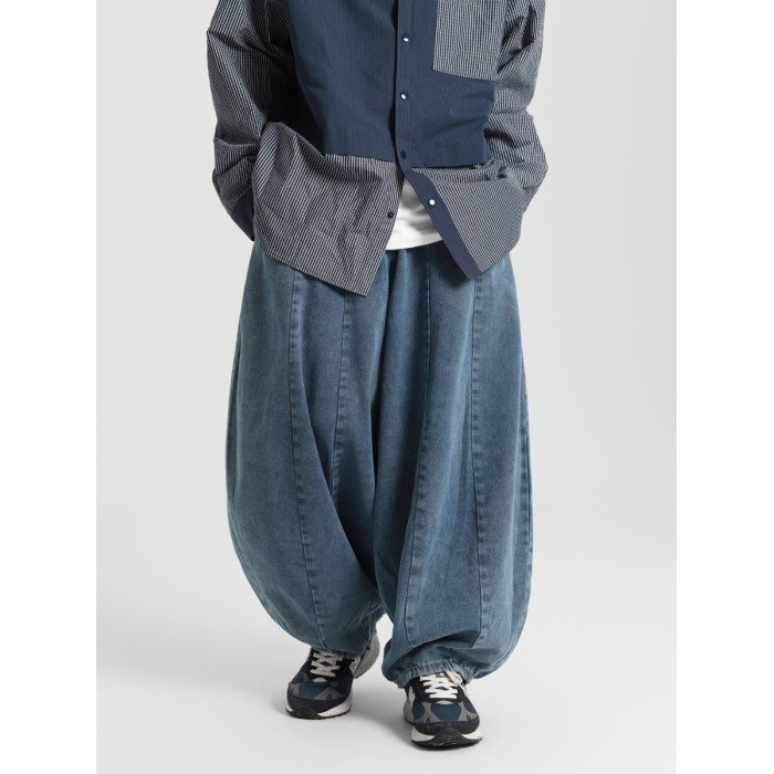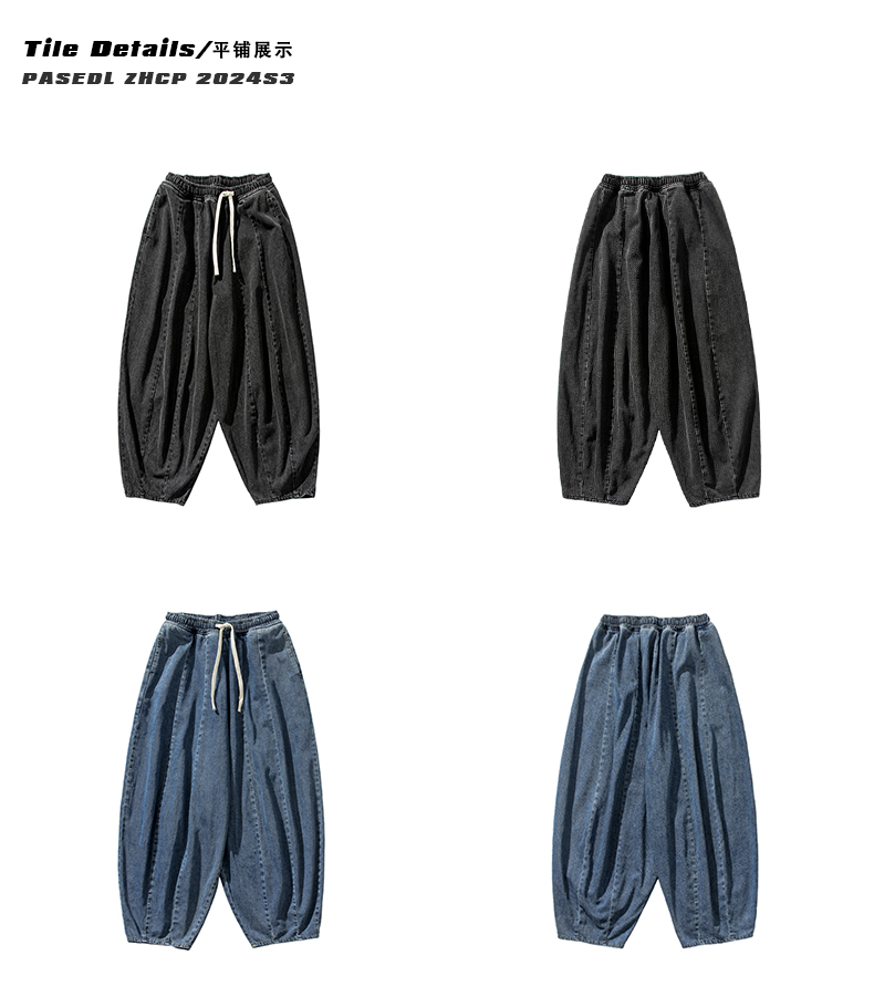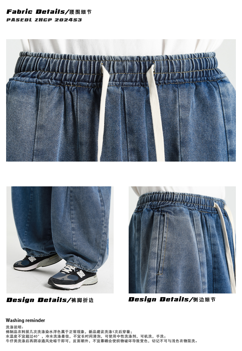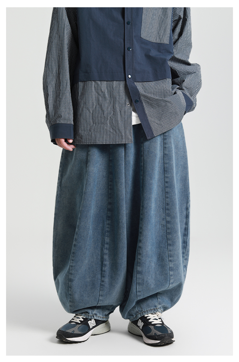 怕生的鹿 美式復古oversize廓形牛仔褲男寬松垂感濶腿大碼燈籠褲