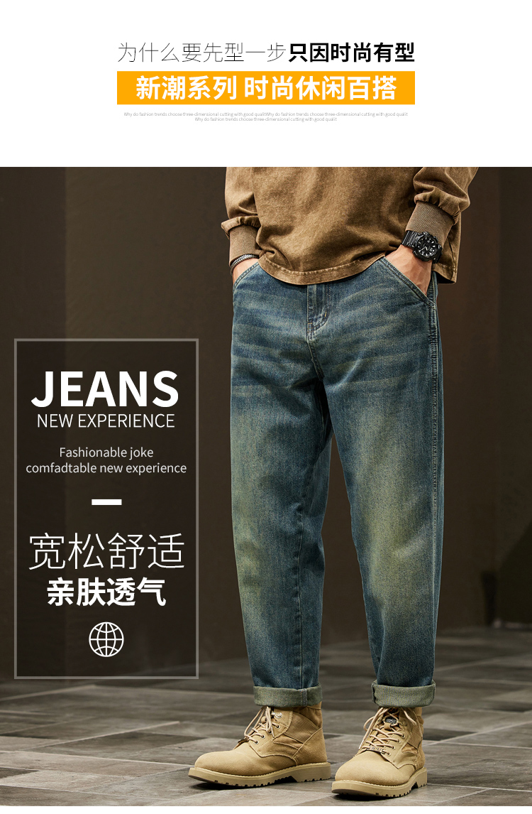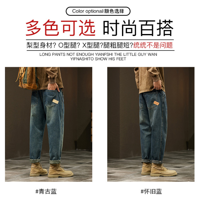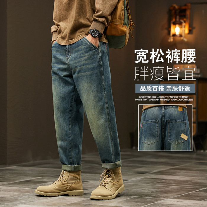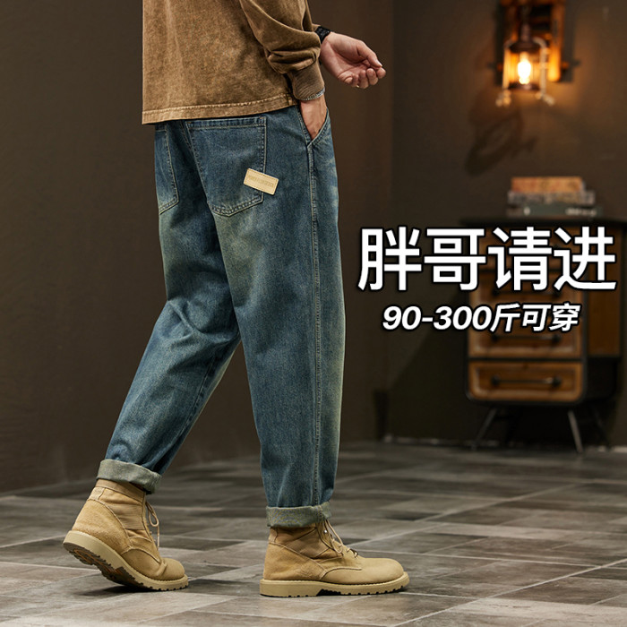 秋冬新款大碼牛仔褲男寬松潮胖日系復古懷舊男褲220斤胖子褲子潮
