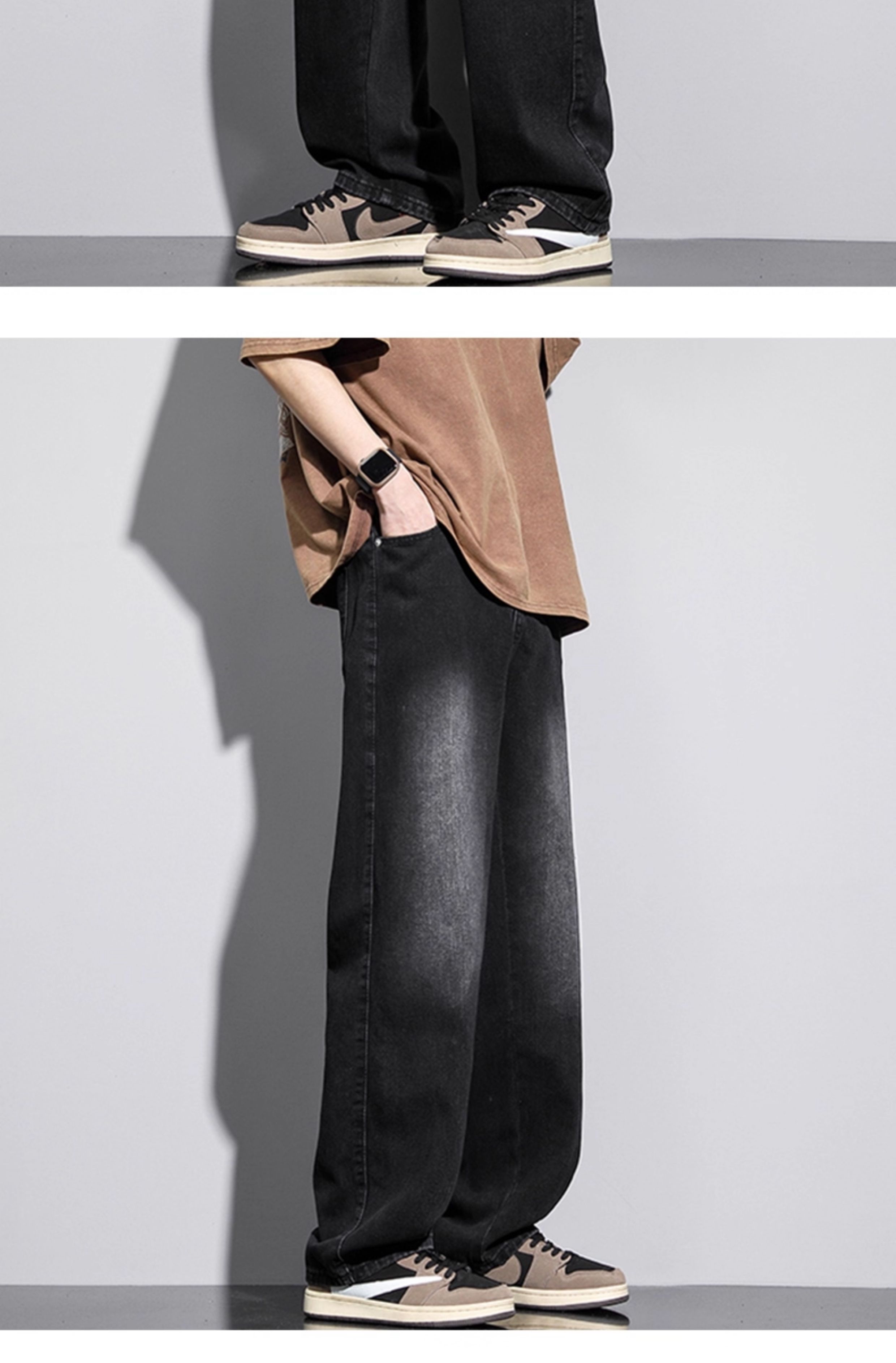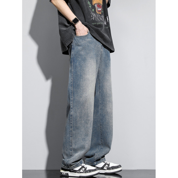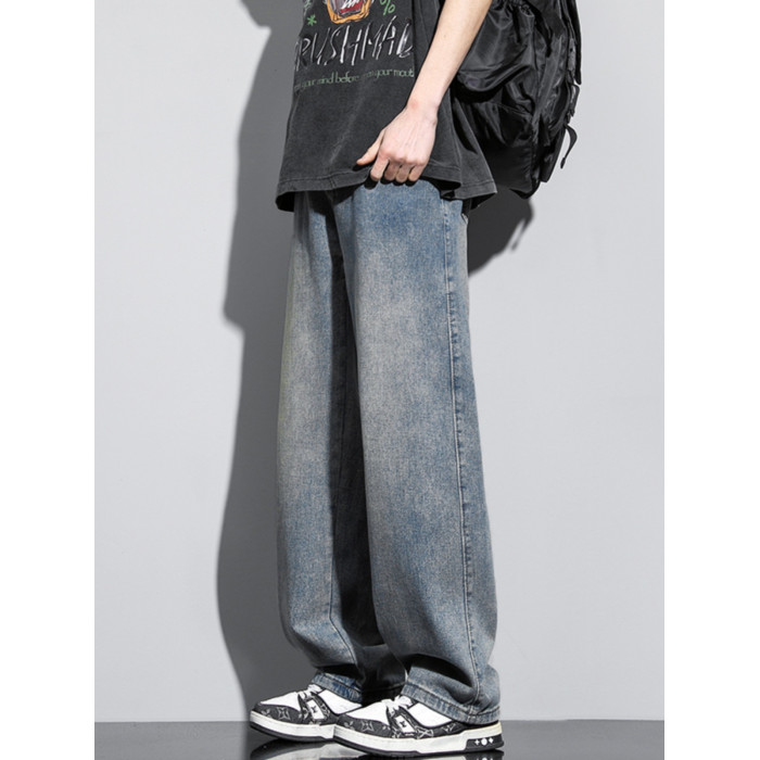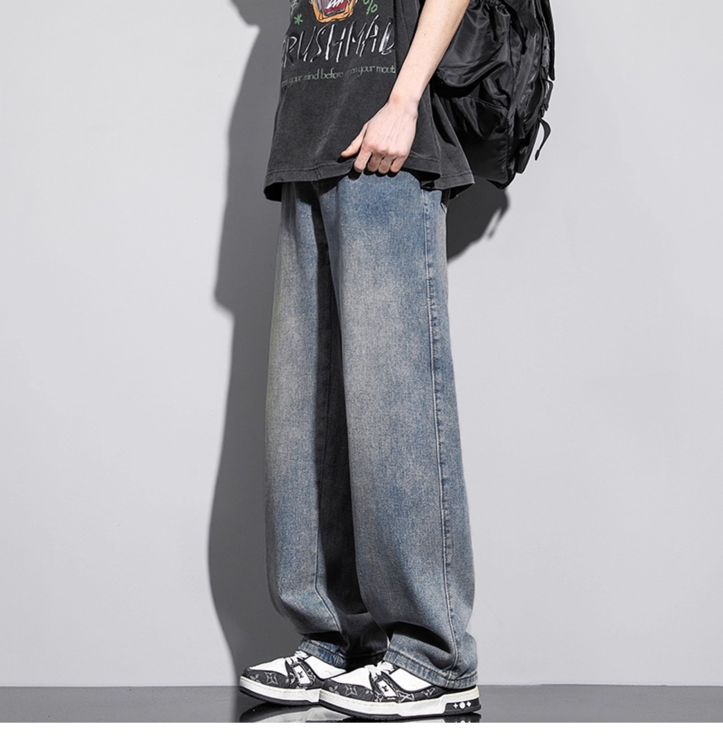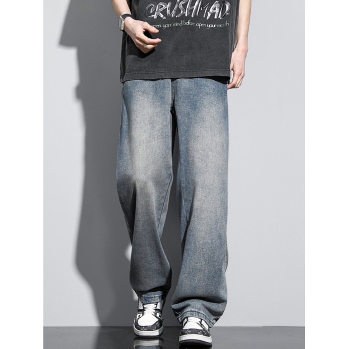 復古牛仔褲男冬季美式彎刀褲子男士寬松加絨男生工裝褲新款直筒褲
