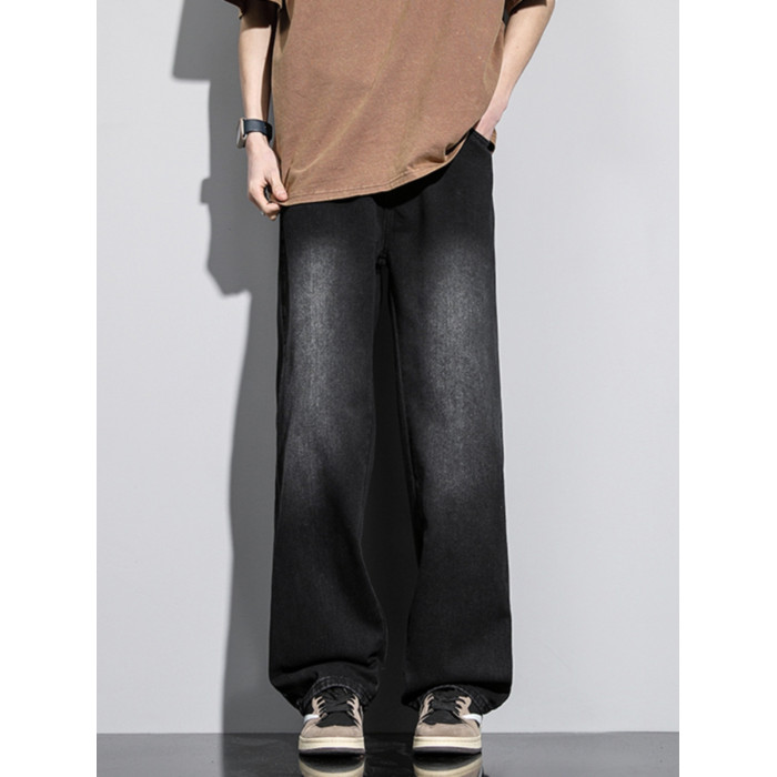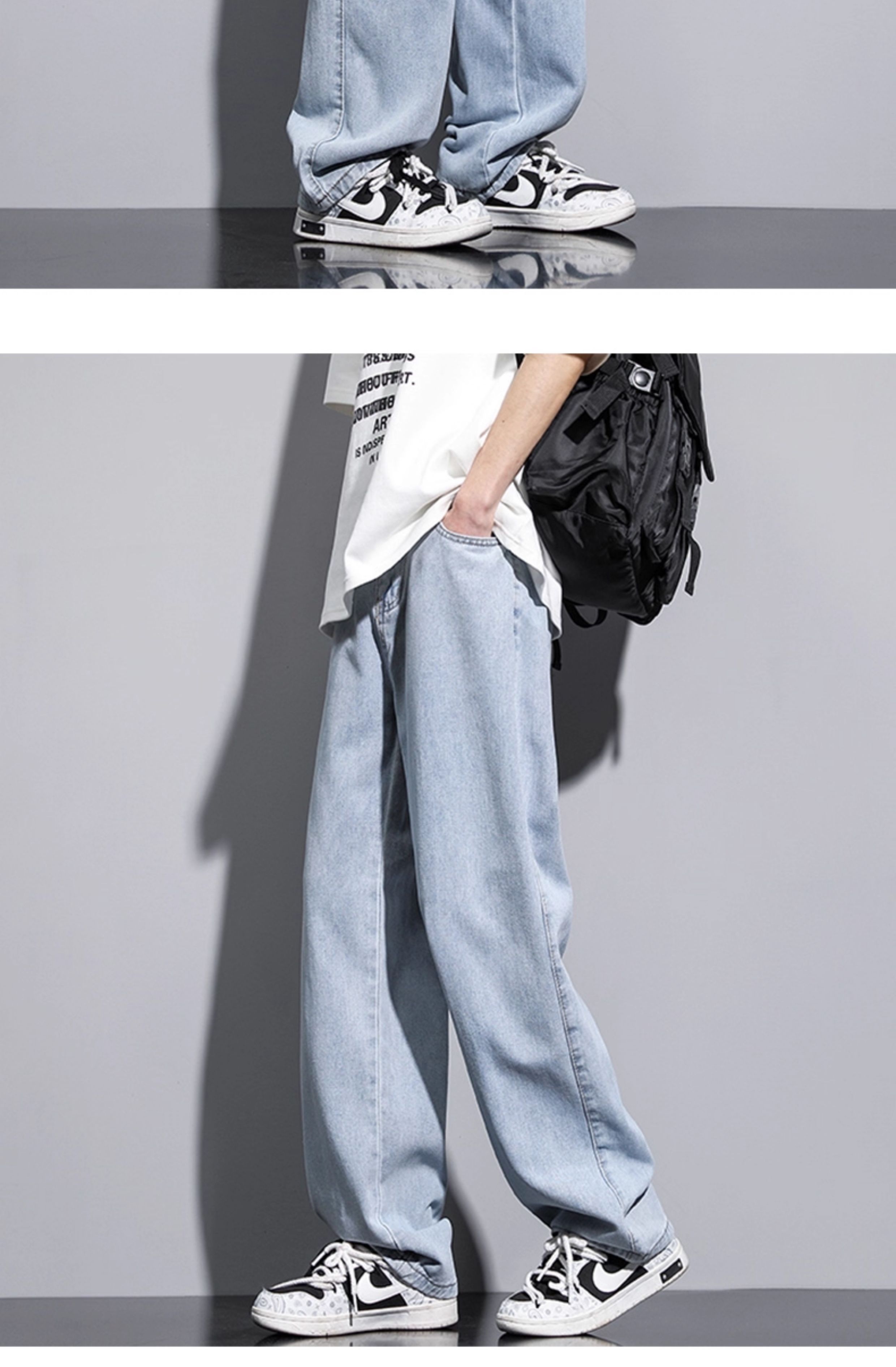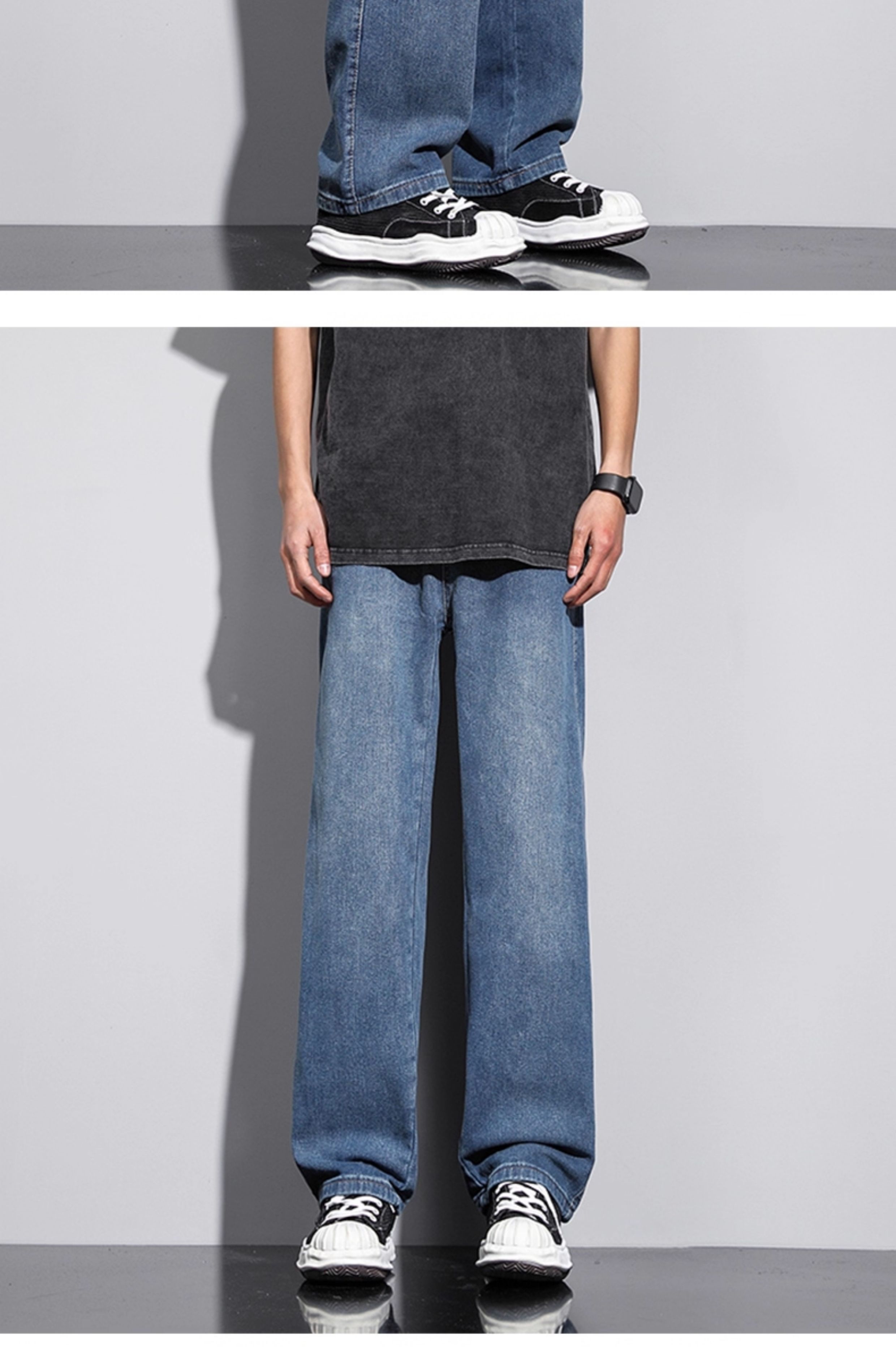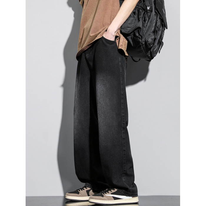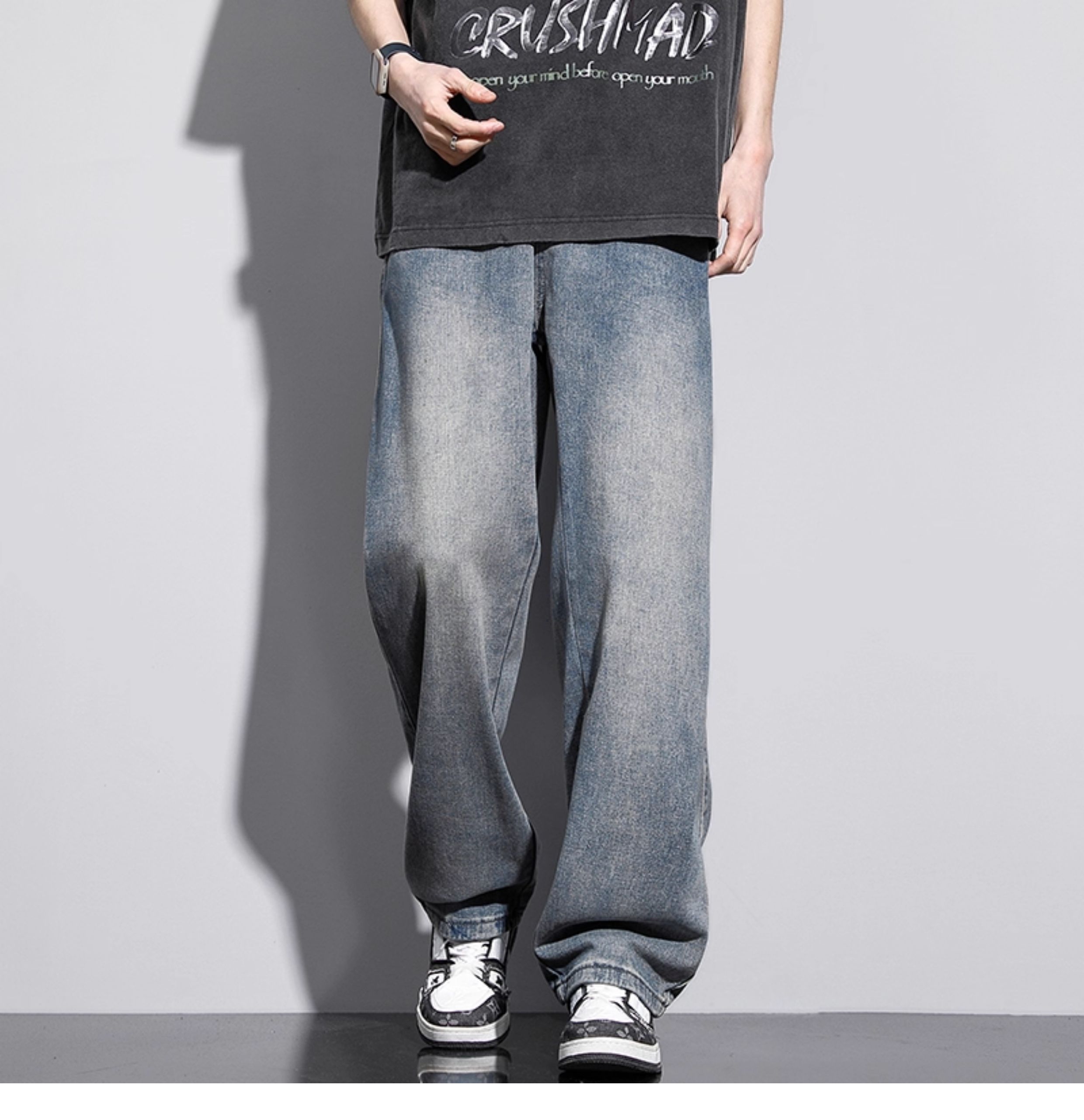 復古牛仔褲男冬季美式彎刀褲子男士寬松加絨男生工裝褲新款直筒褲