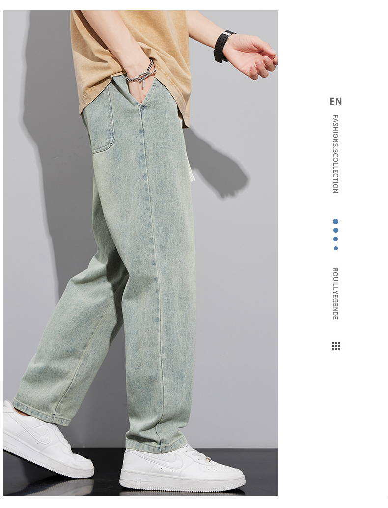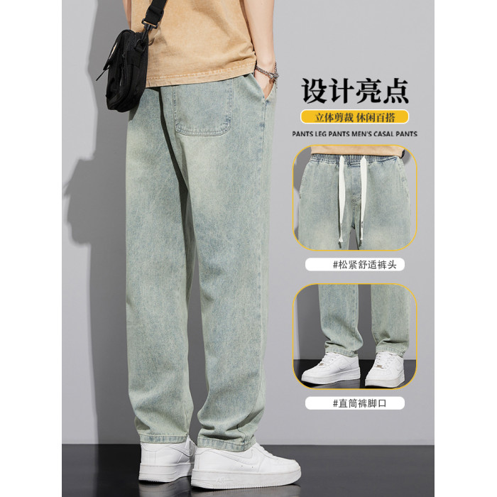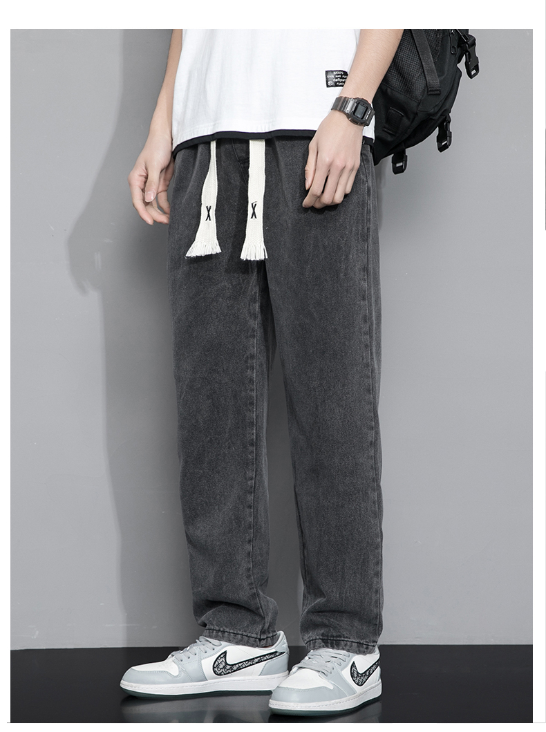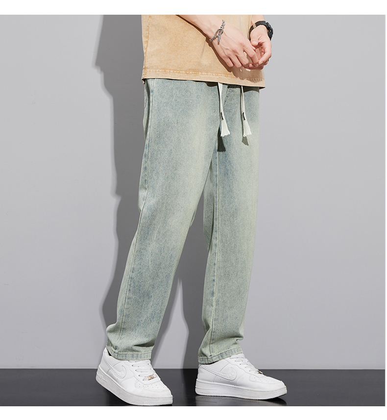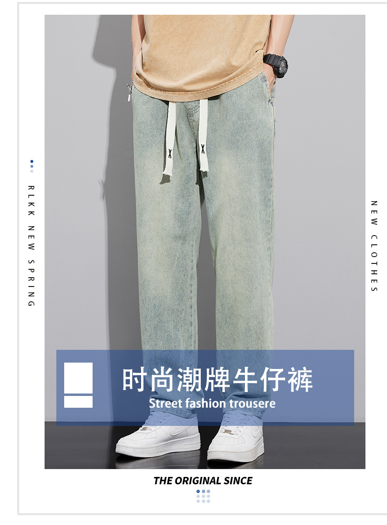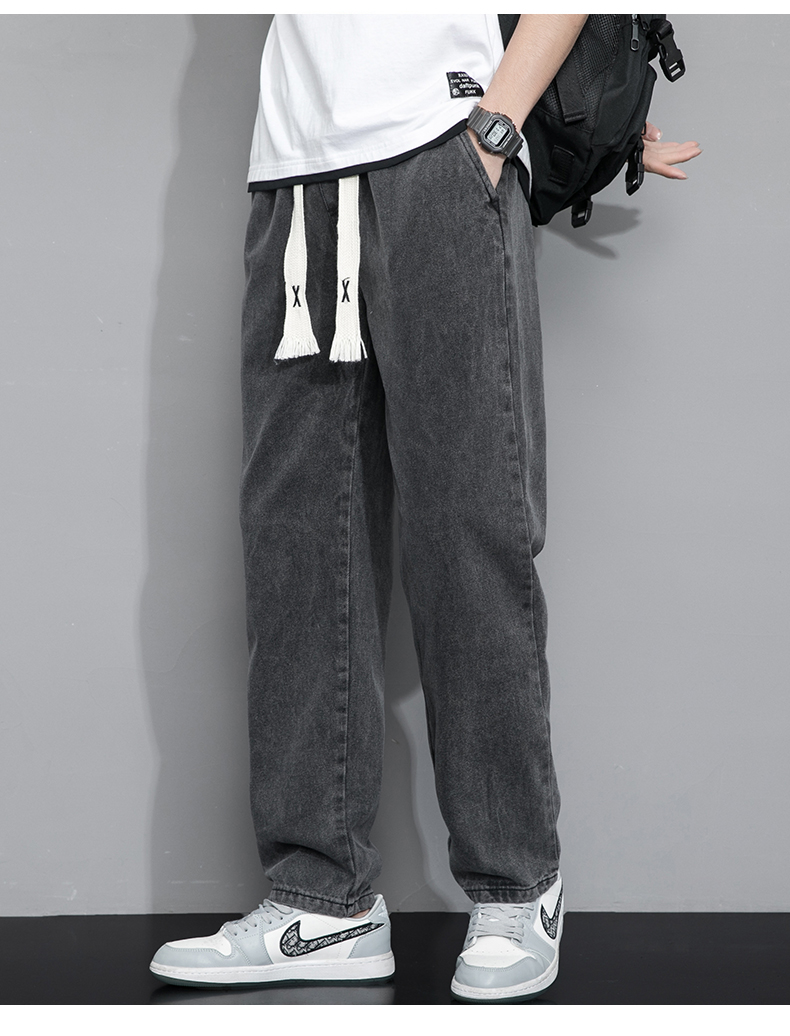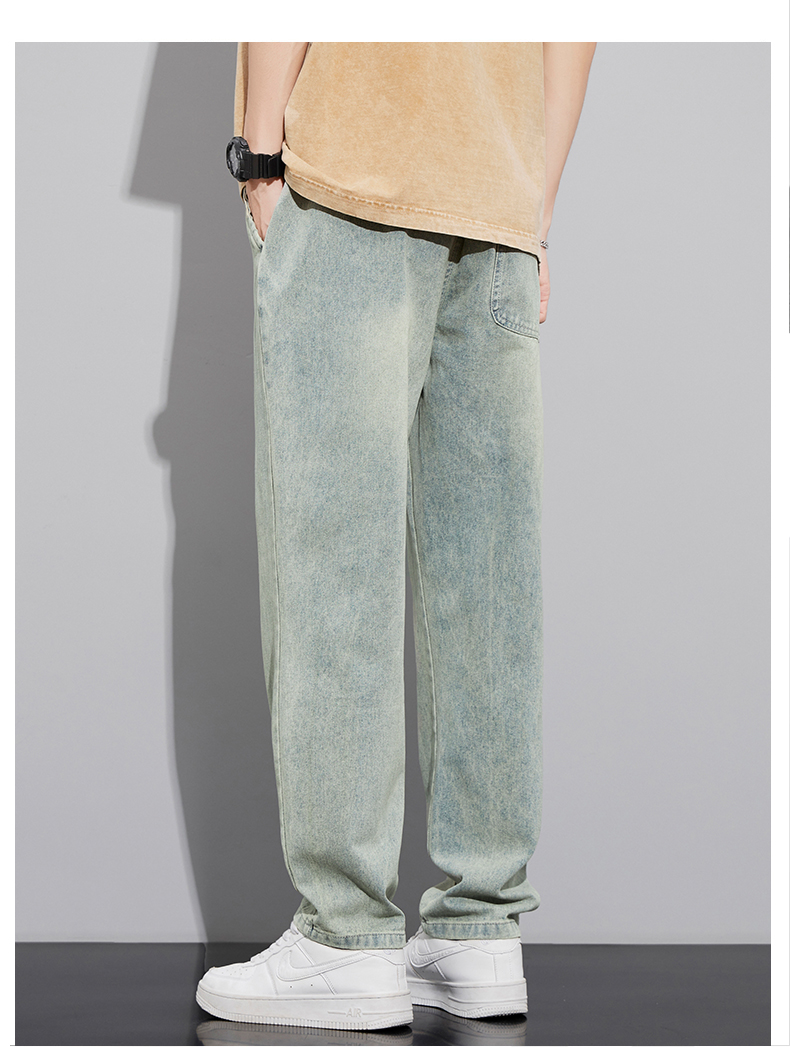 美式復古牛仔褲男秋冬加絨青少年寬松直筒濶腿褲潮牌2025新款長褲