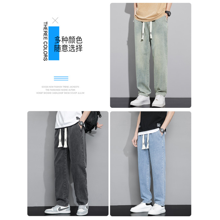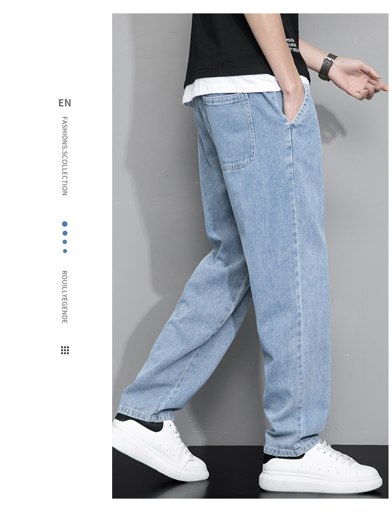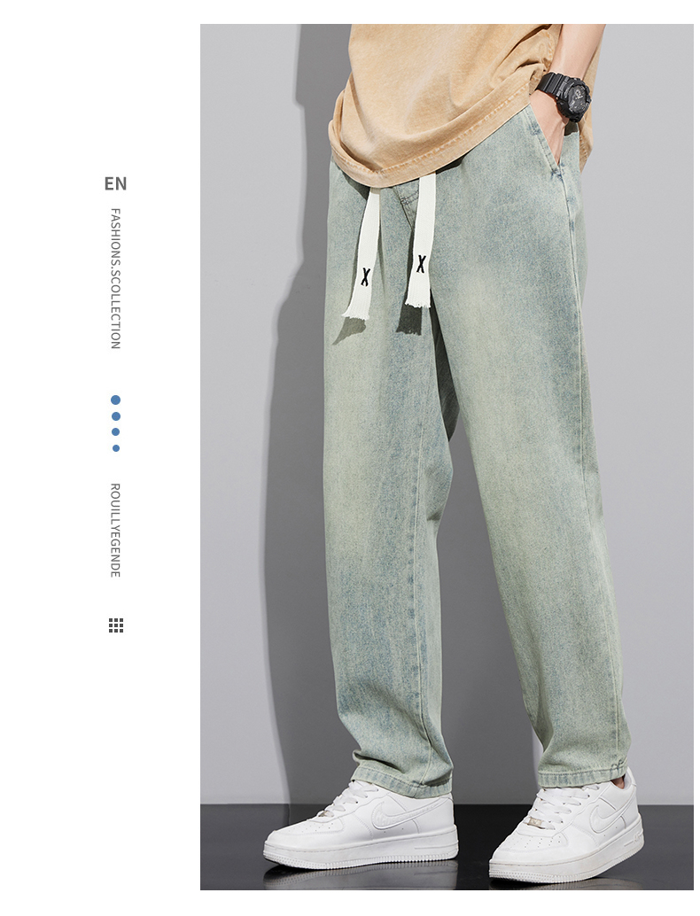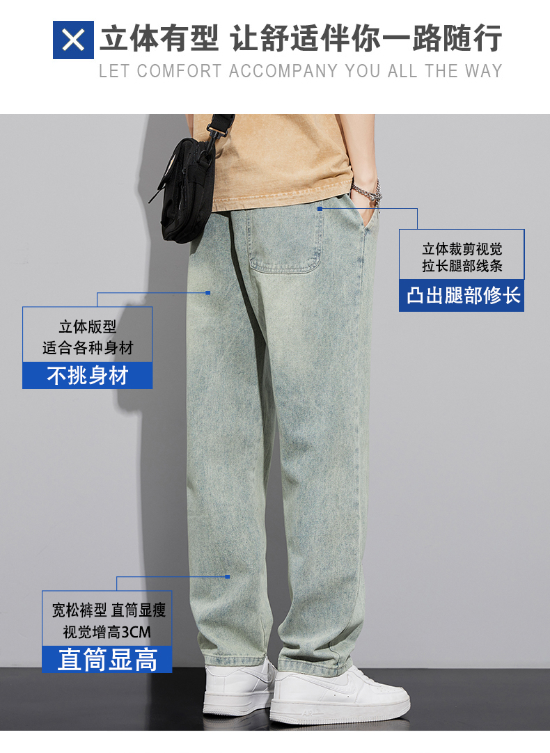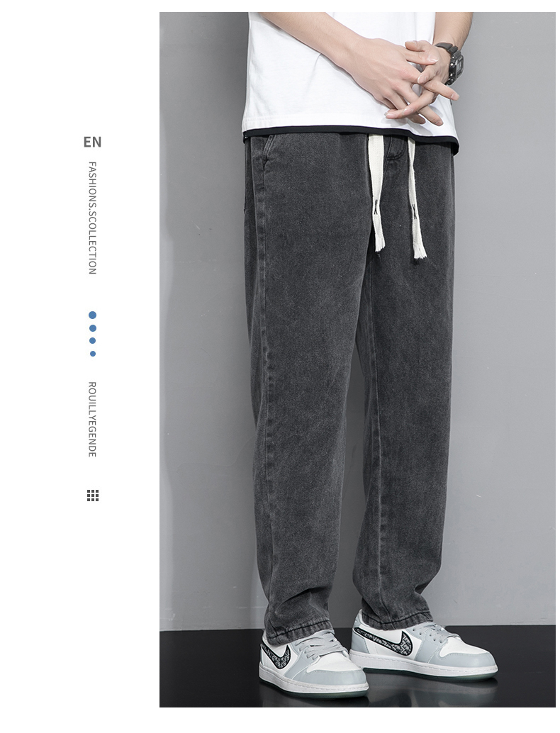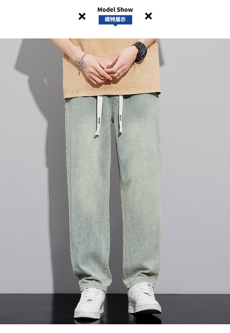 美式復古牛仔褲男秋冬加絨青少年寬松直筒濶腿褲潮牌2025新款長褲