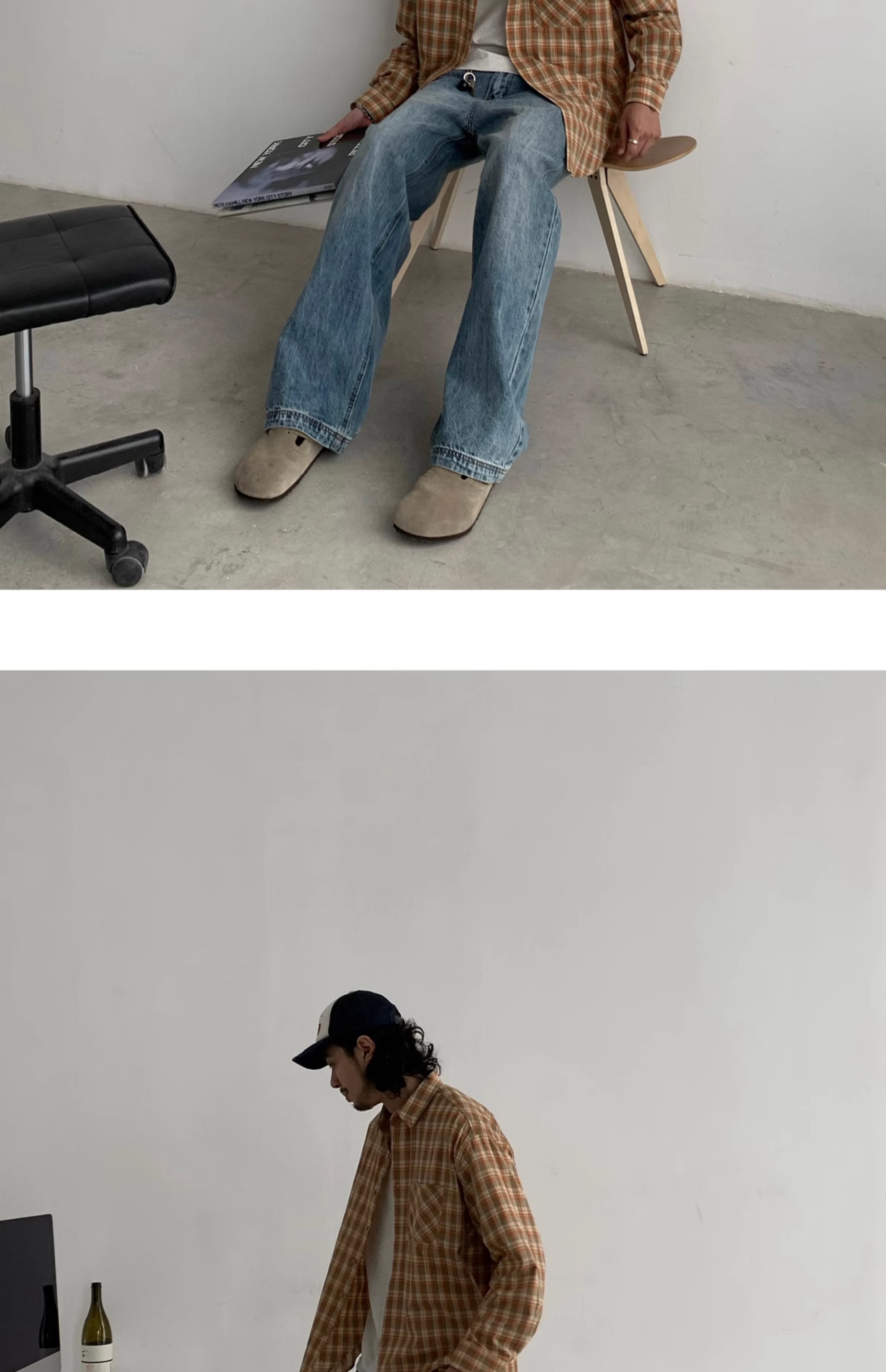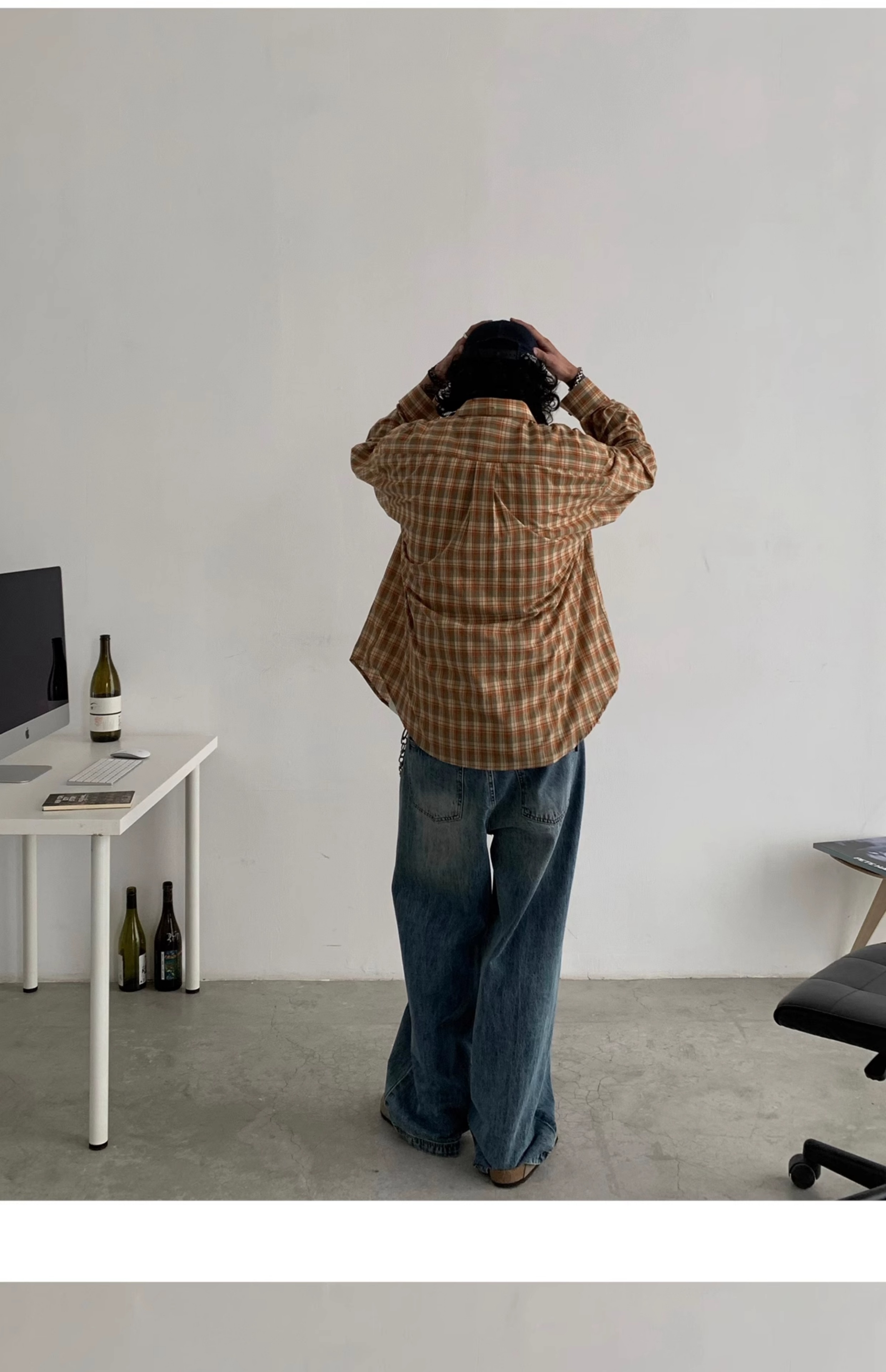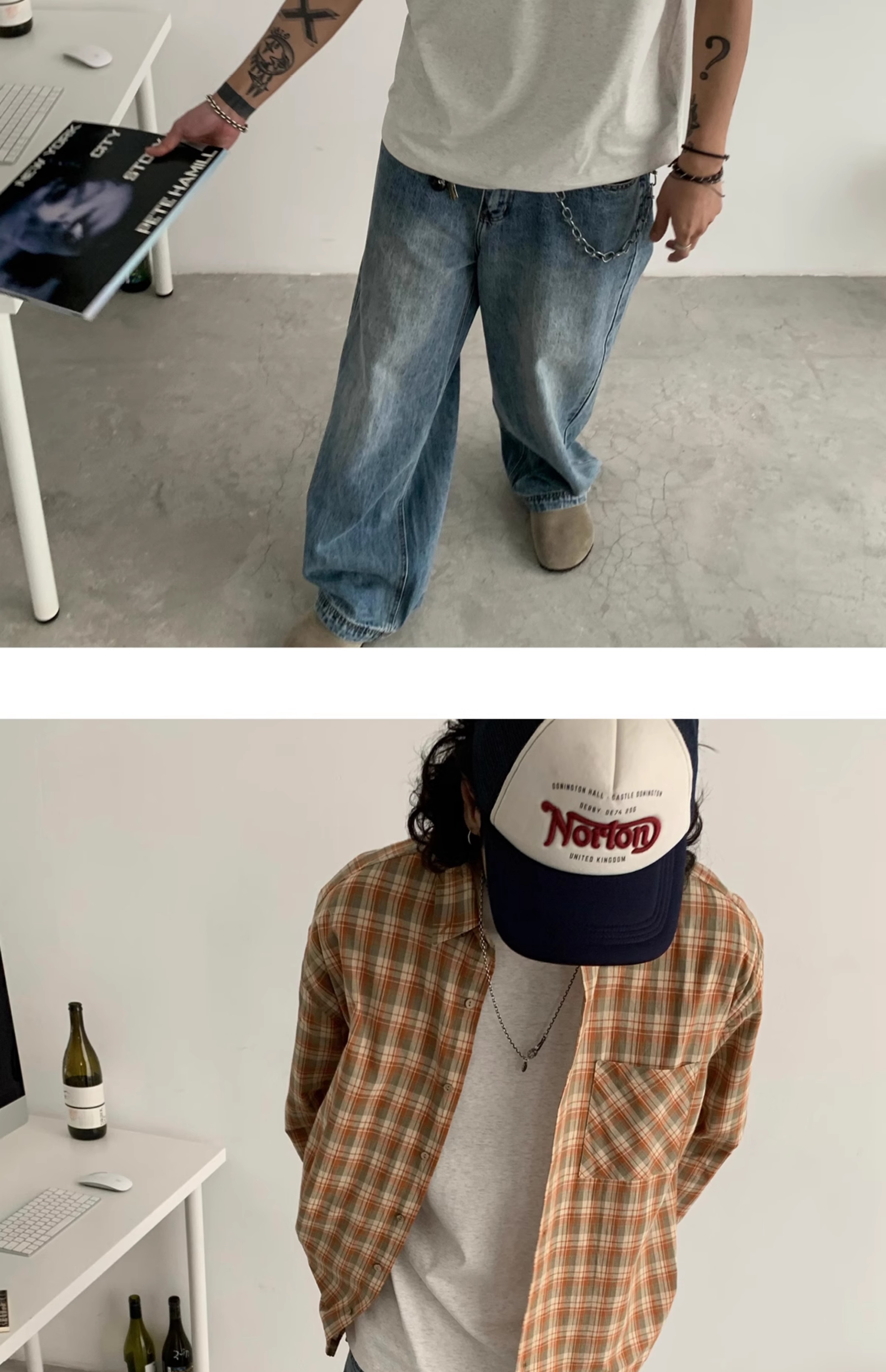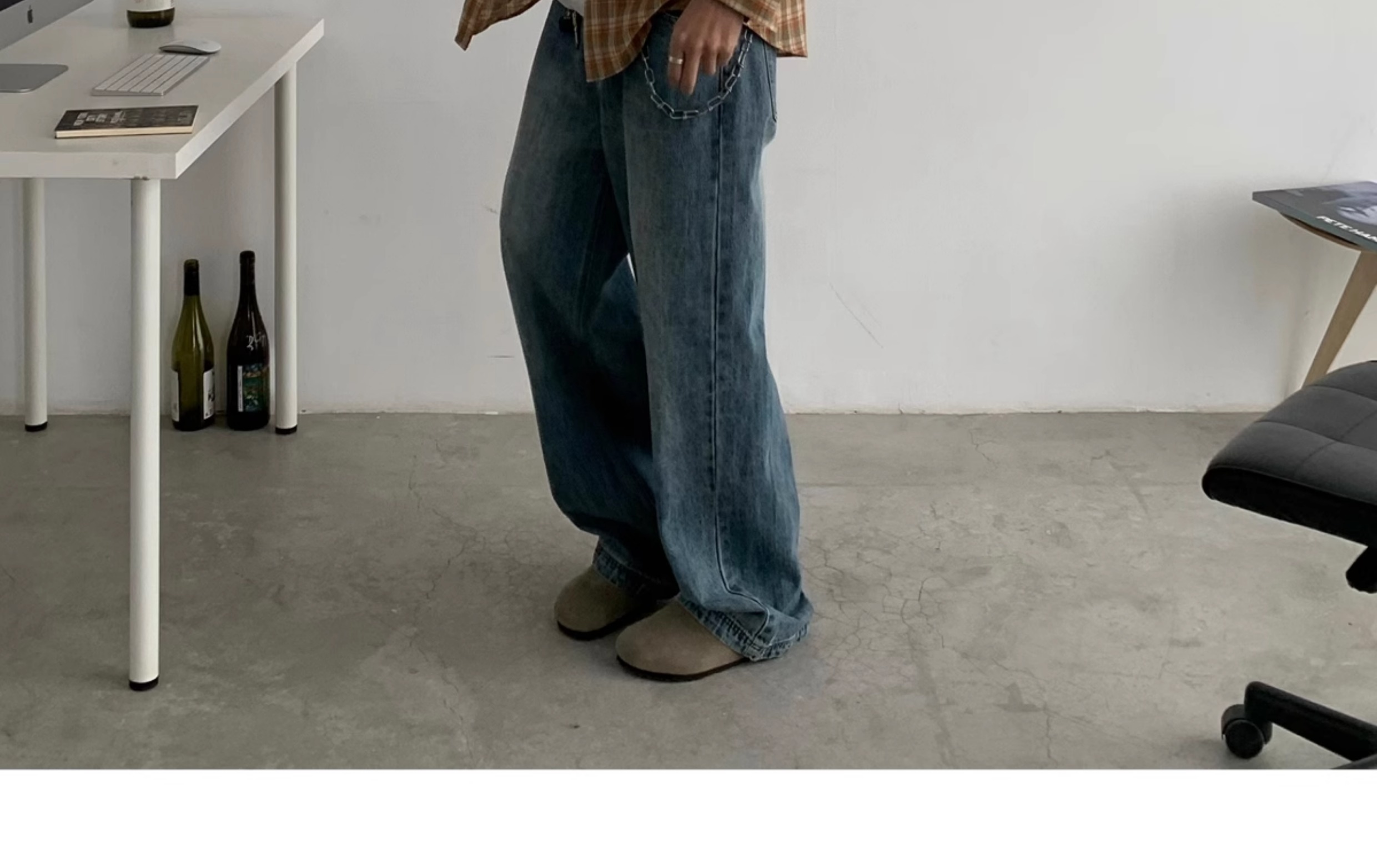 美式復古水洗爆裂紋藍色牛仔褲男vintage寬松濶腿堆堆感休閒長褲