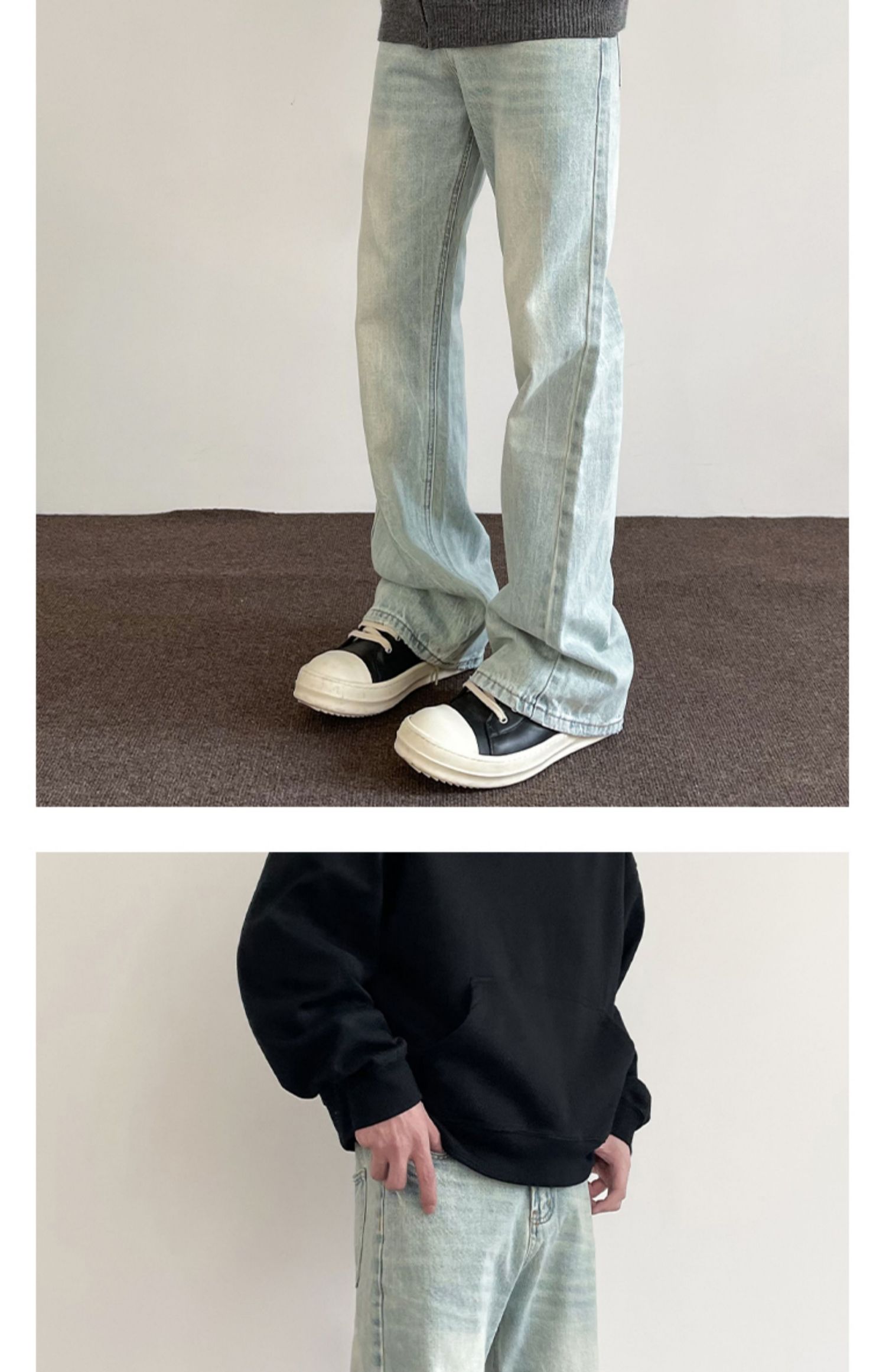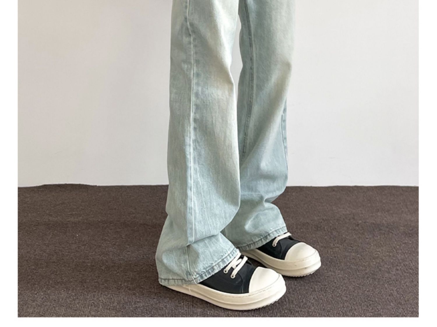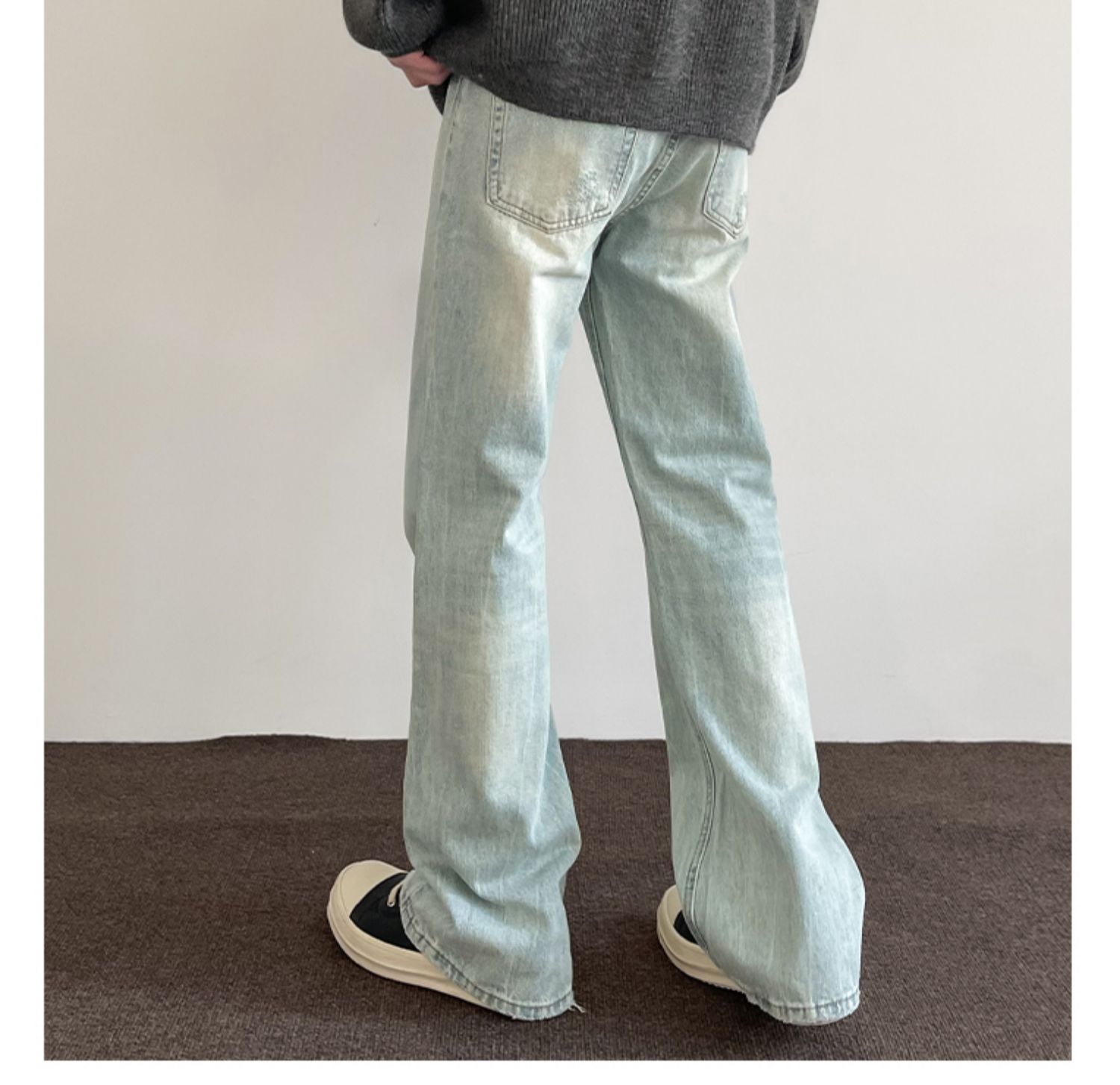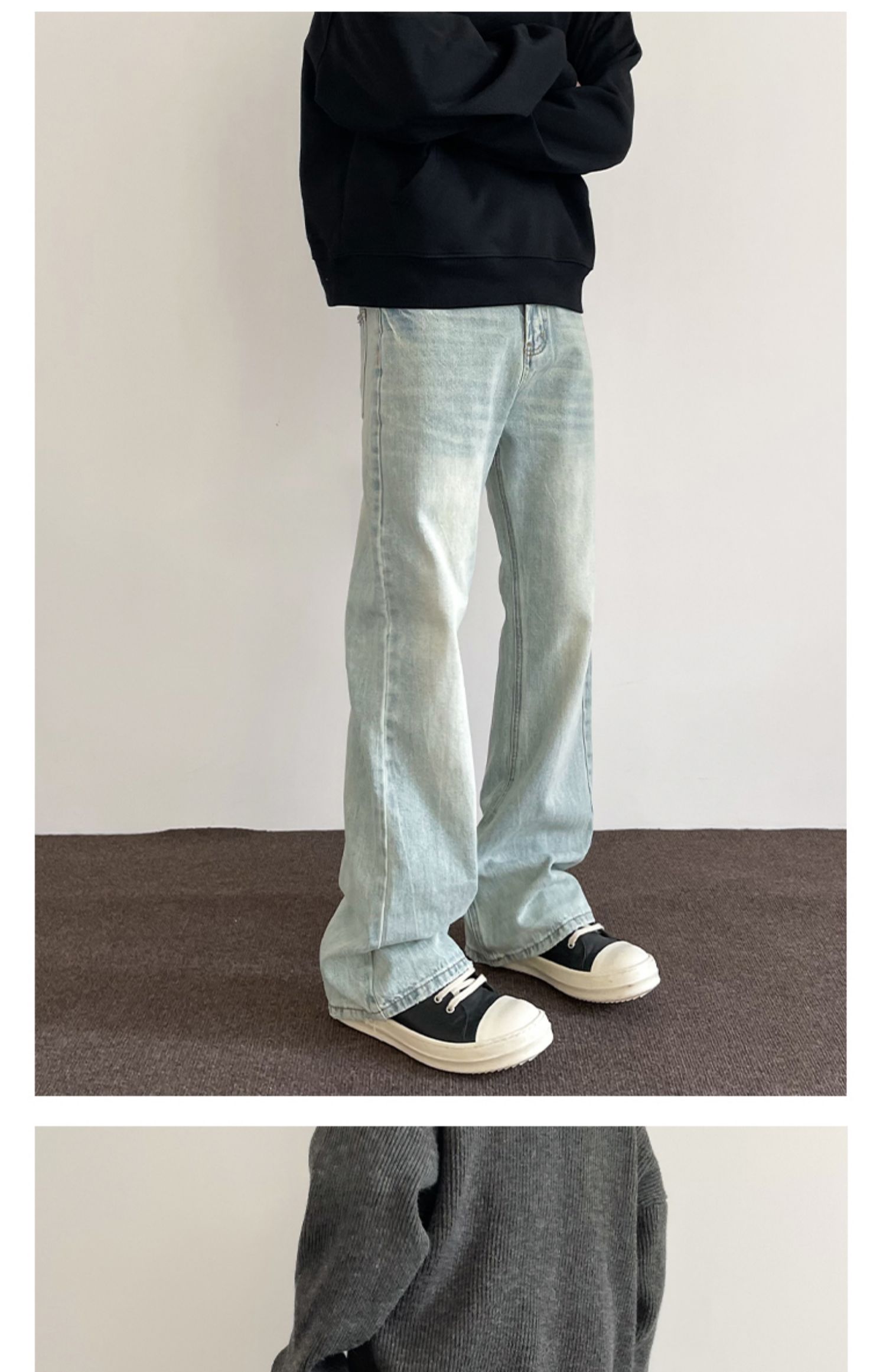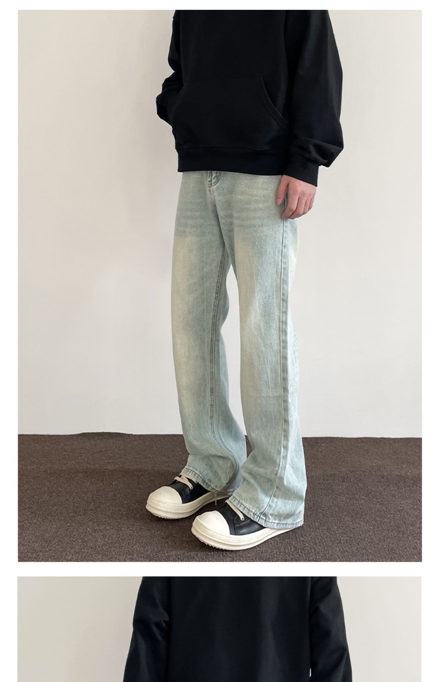 美式冰藍色水洗牛仔褲男潮牌新款高街直筒顯瘦cleanfit微喇長褲子